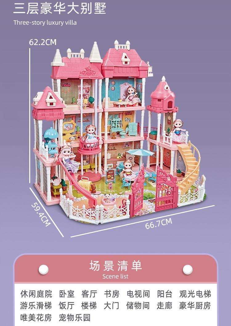 Juguetes para Niños Juego de Simulación Villa de Princesa Castillo Casa de Muñecas Regalo de Cumpleaños Mascota