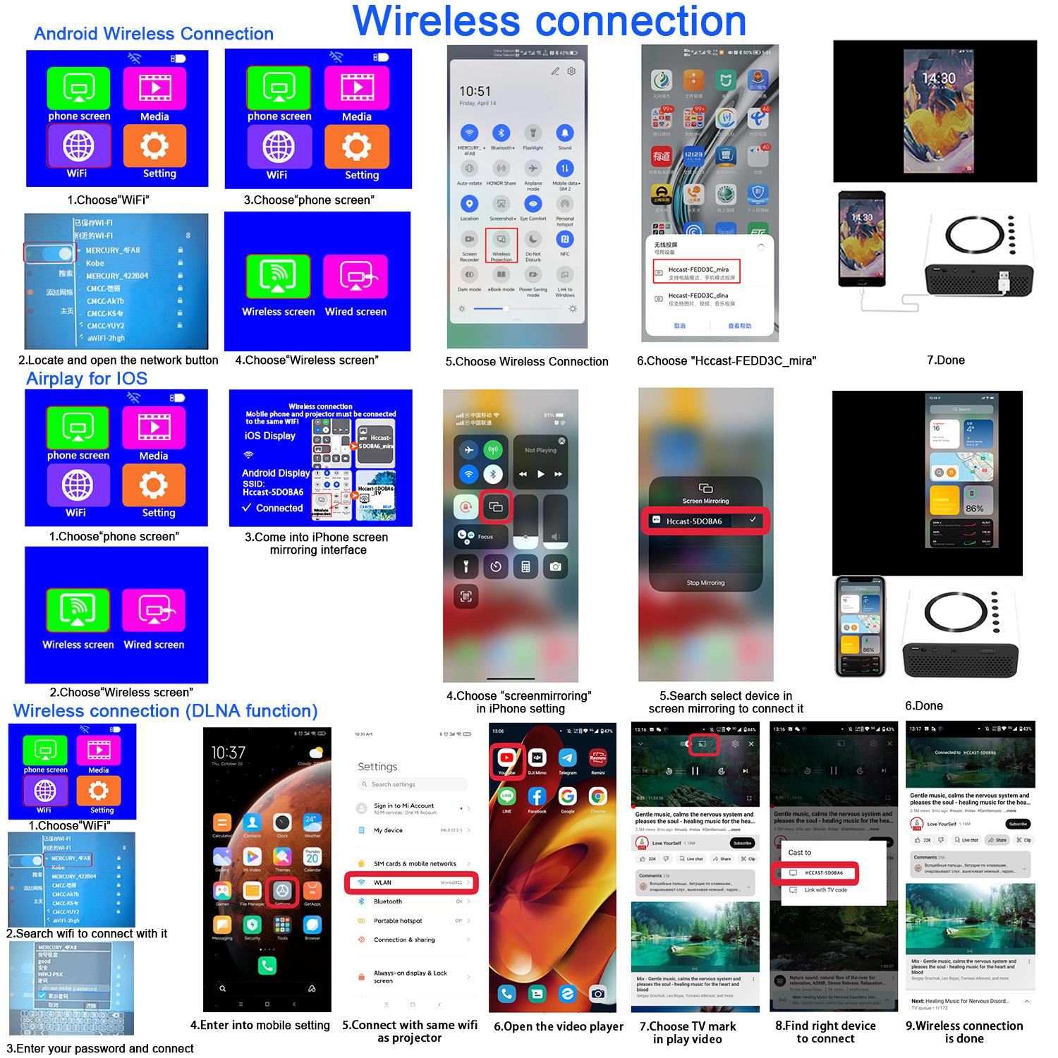 Proyector de pantalla para teléfono móvil inalámbrico y con cable YT300, miniproyector doméstico, portátil, LED, transfronterizo