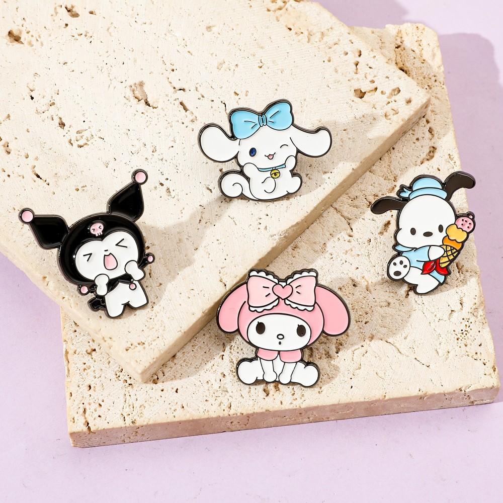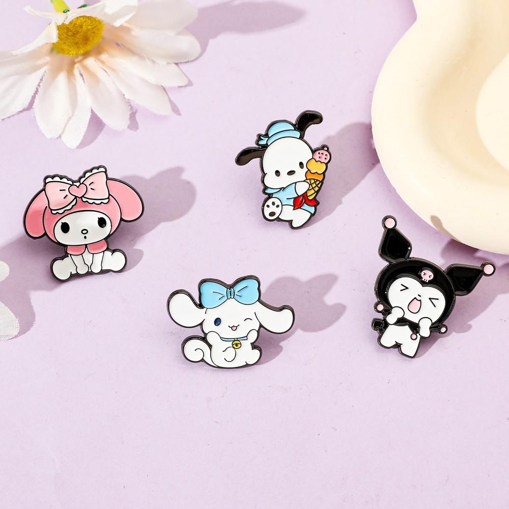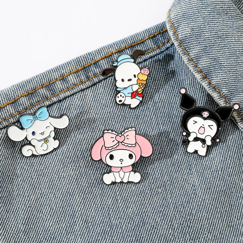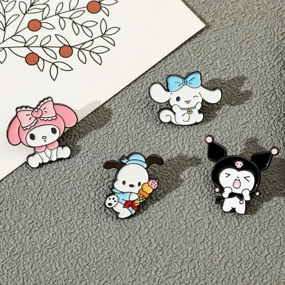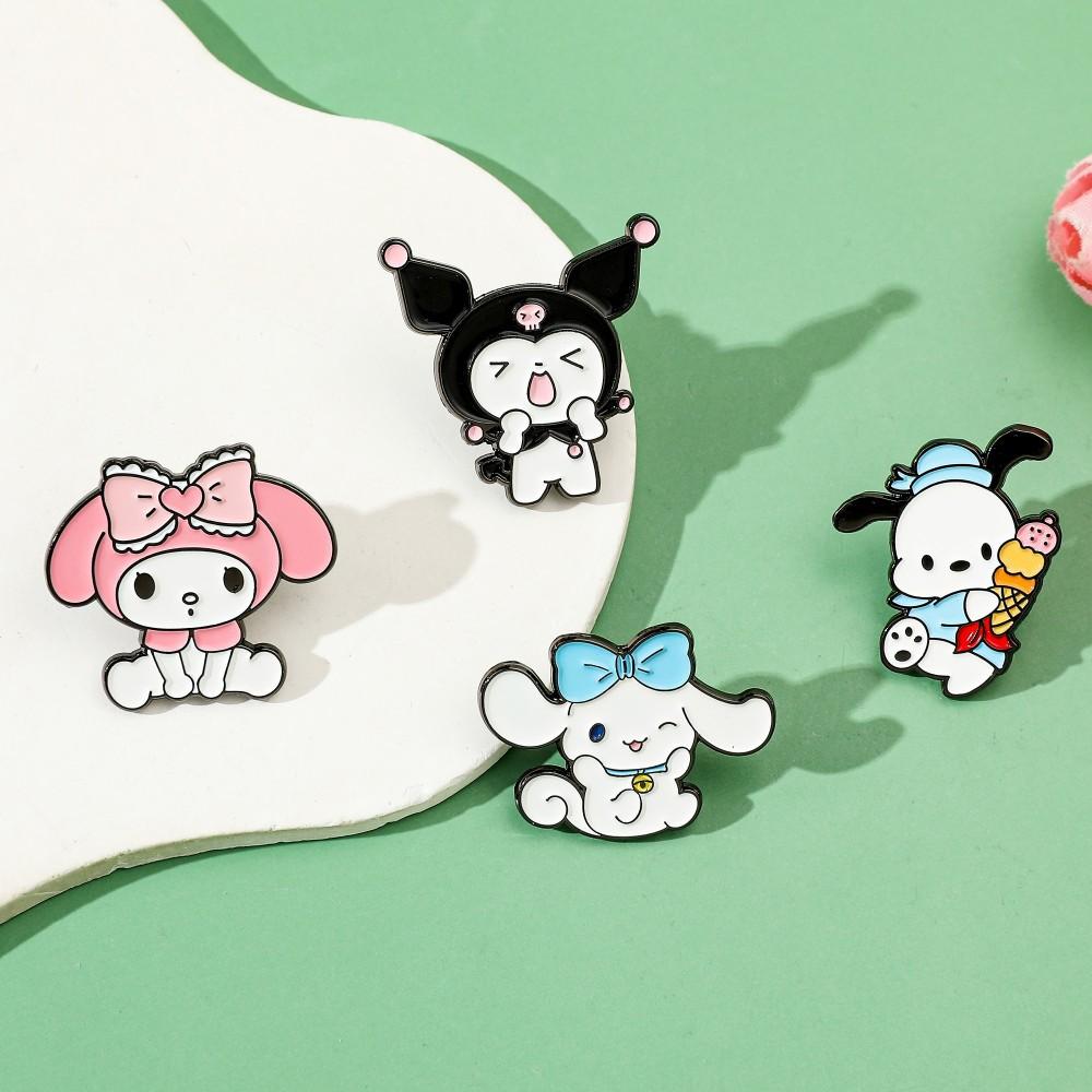 Lindo broche de metal de Sanrio con diseño de perro Merlot Kulomi con orejas grandes, accesorio de broche de perro
