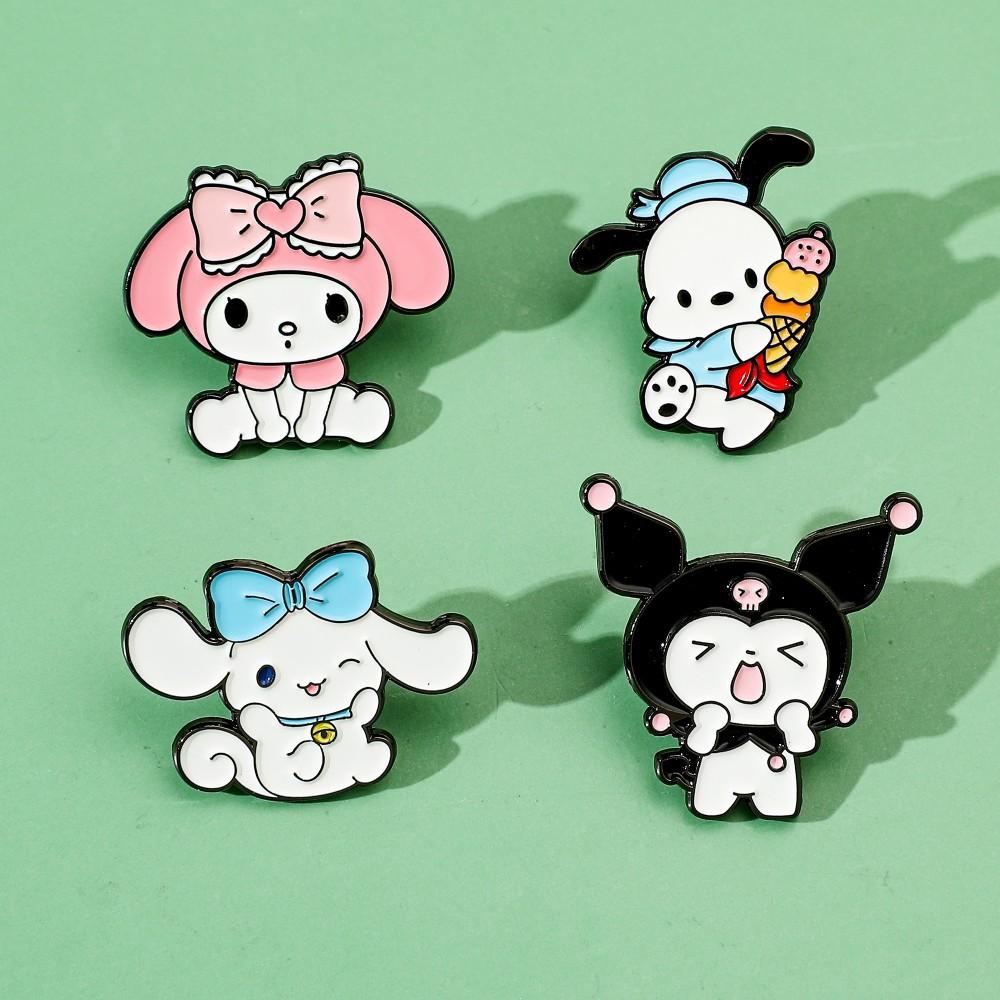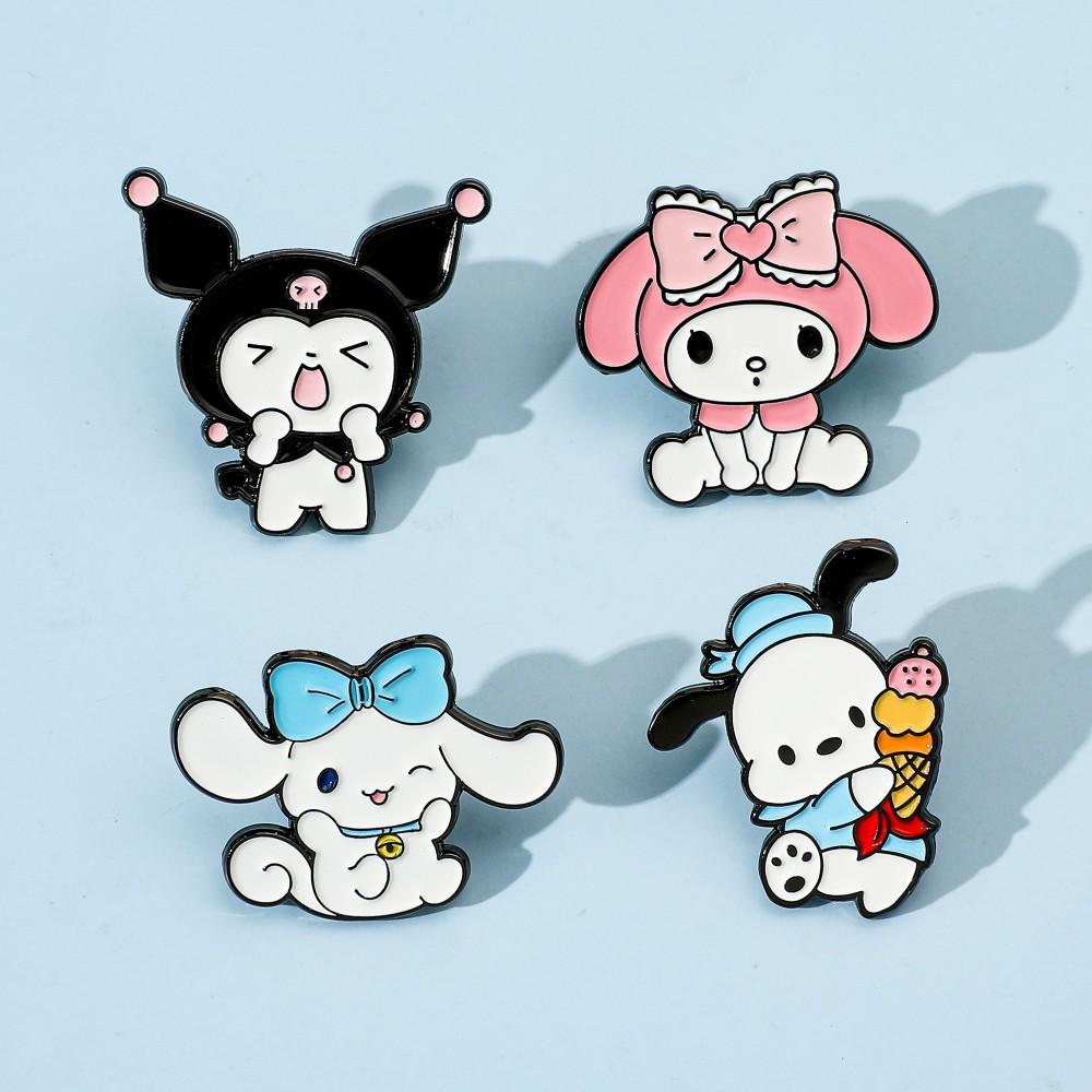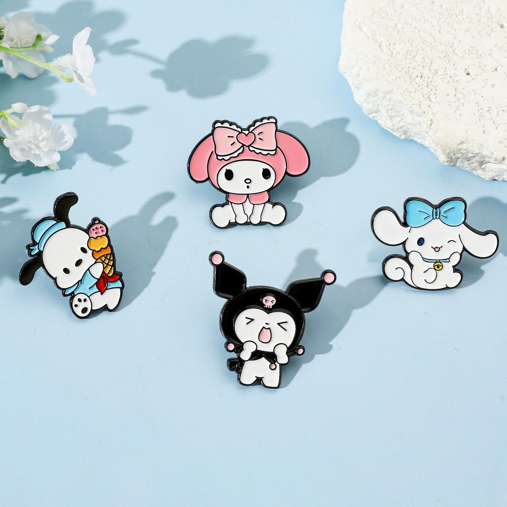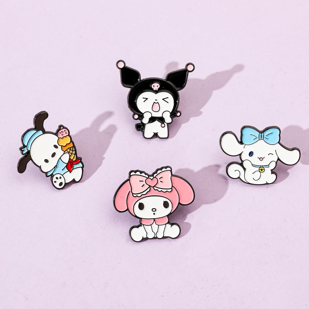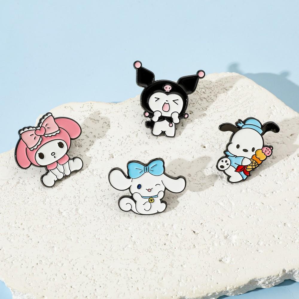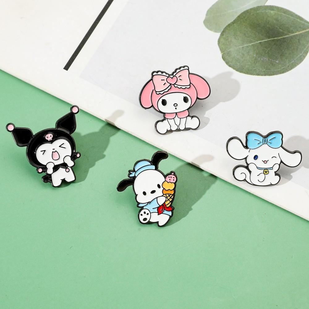 Lindo broche de metal de Sanrio con diseño de perro Merlot Kulomi con orejas grandes, accesorio de broche de perro