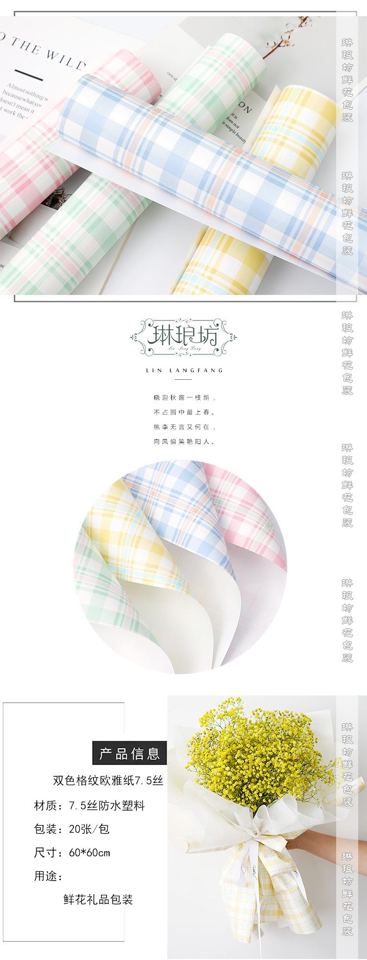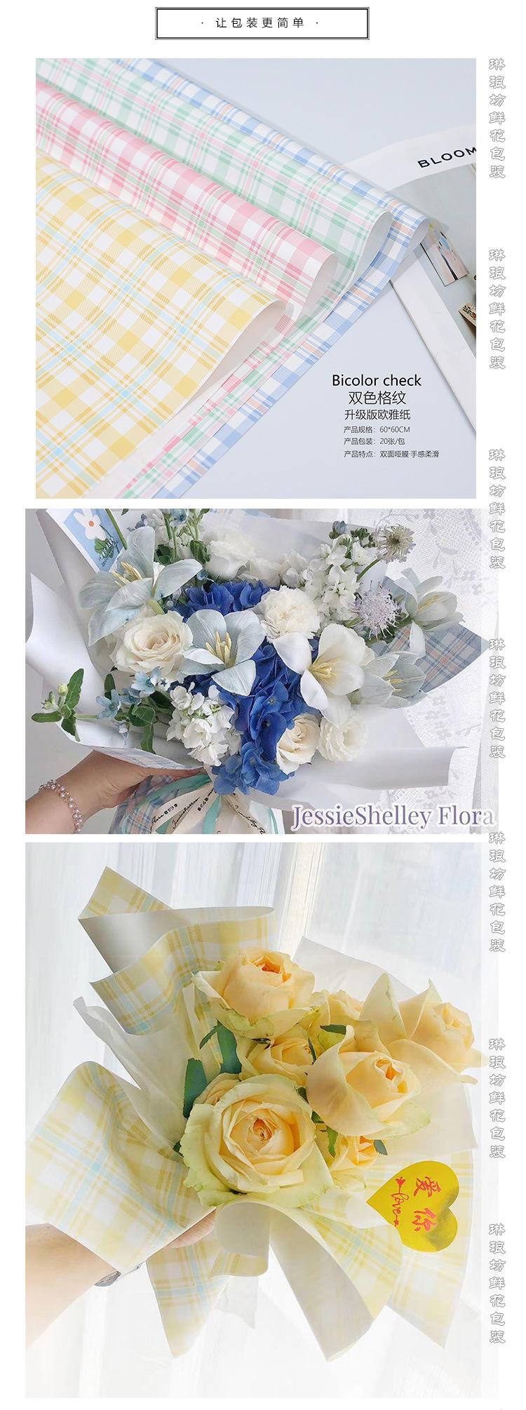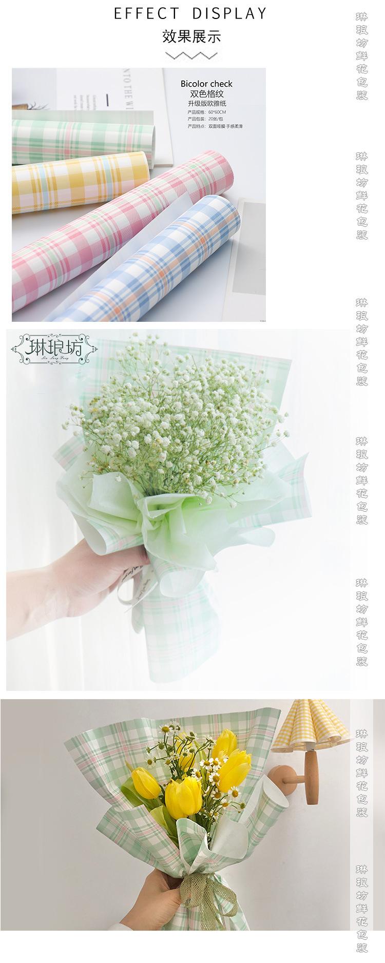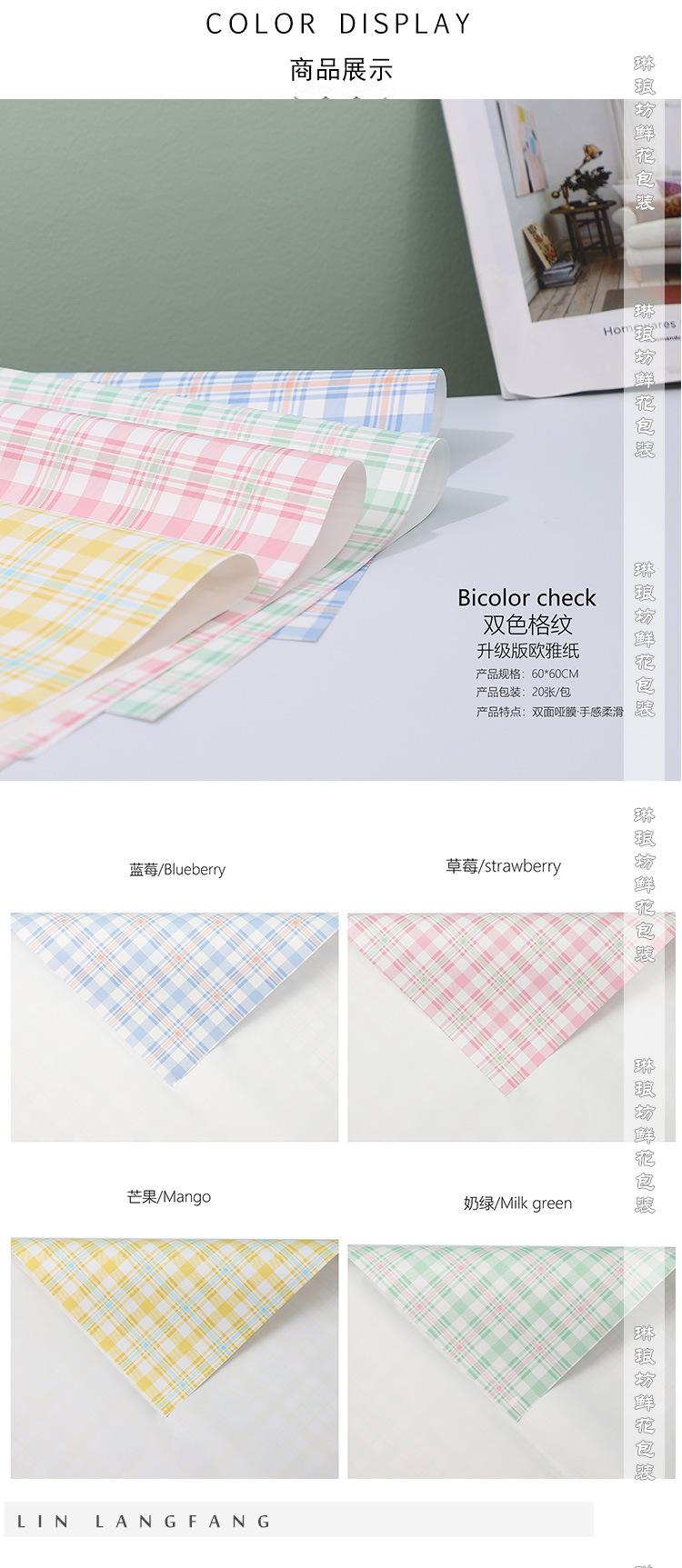 Papel Ouya de Seda Grueso de 7.5 Papel a Cuadros Bicolor Papel Impermeable para Envolver Flores Cuadros de Color a una Cara Ramo DIY