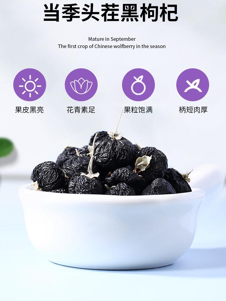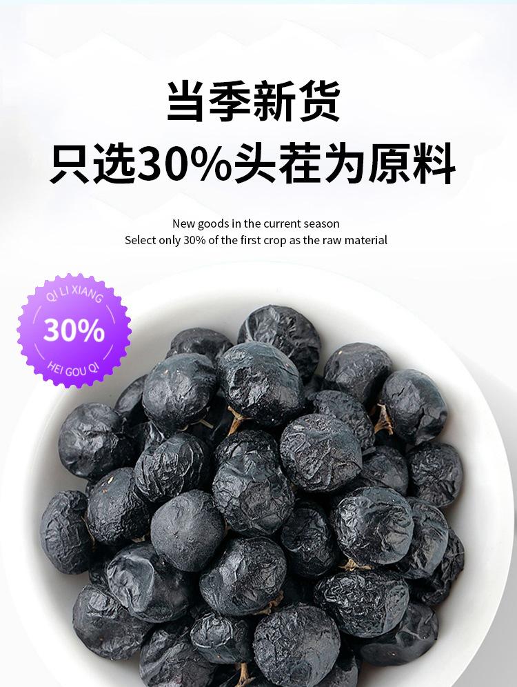 Caja de regalo de bayas de goji teñidas sin ahumar de Qinghai. Suministro al por mayor a granel. Productos secos de bayas de goji negras sin lavar. Bayas de goji negras silvestres.