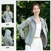 Abrigo con capucha de moda de verano 2023 para mujer, transpirable, protector solar, abrigo de piel fino para exteriores, casual, color sólido, abrigo protector solar