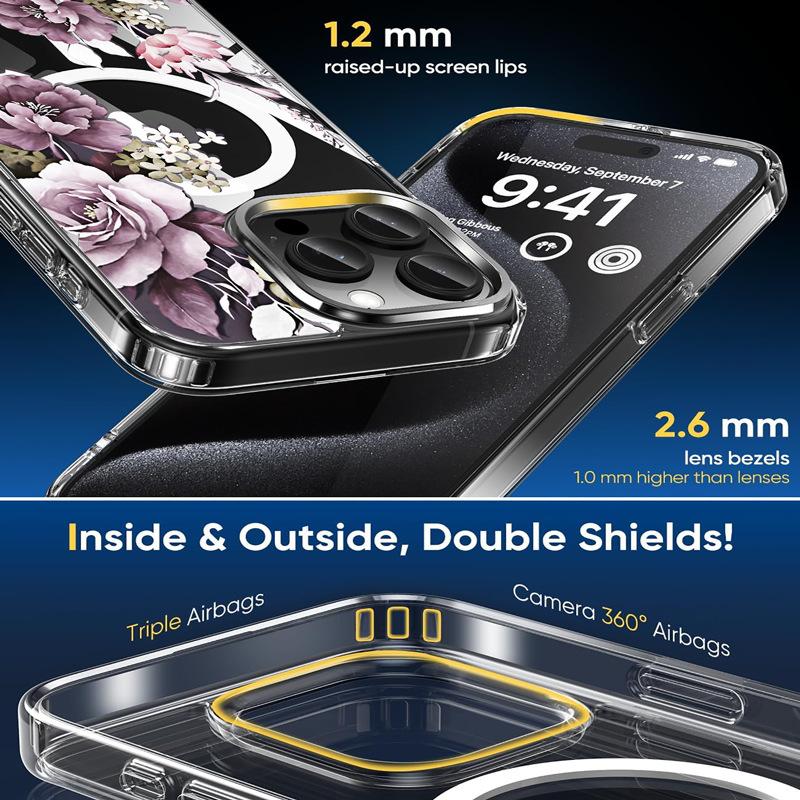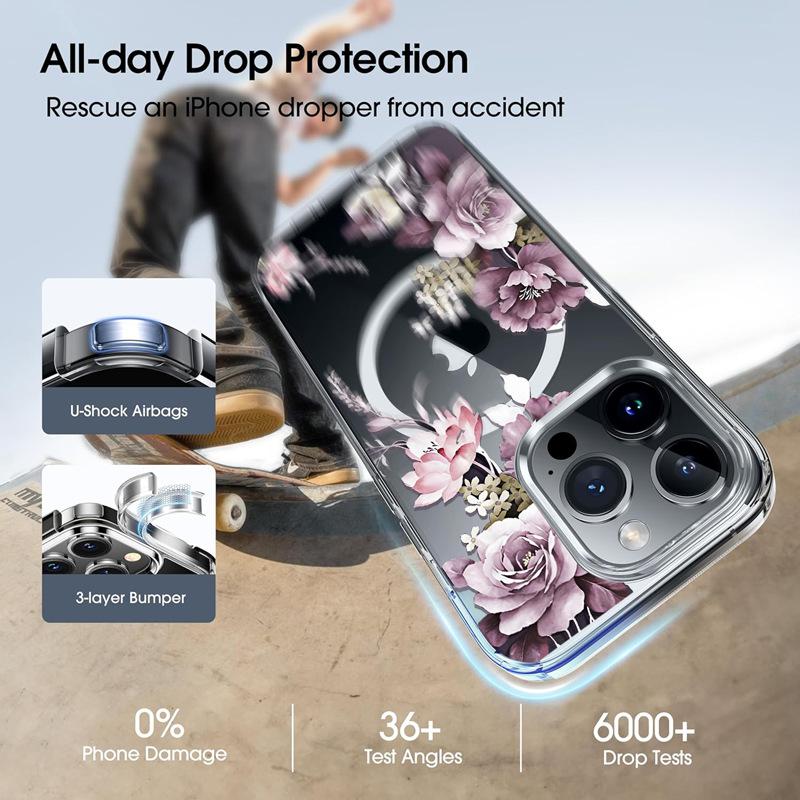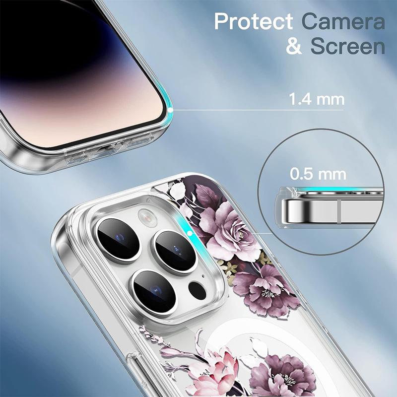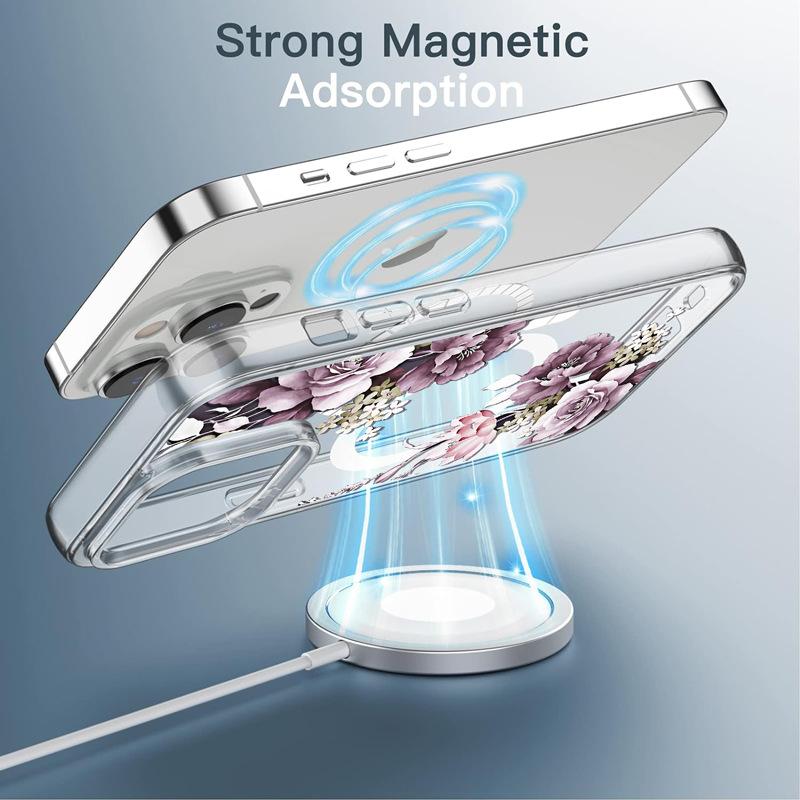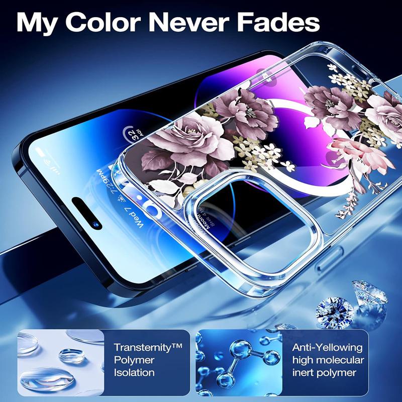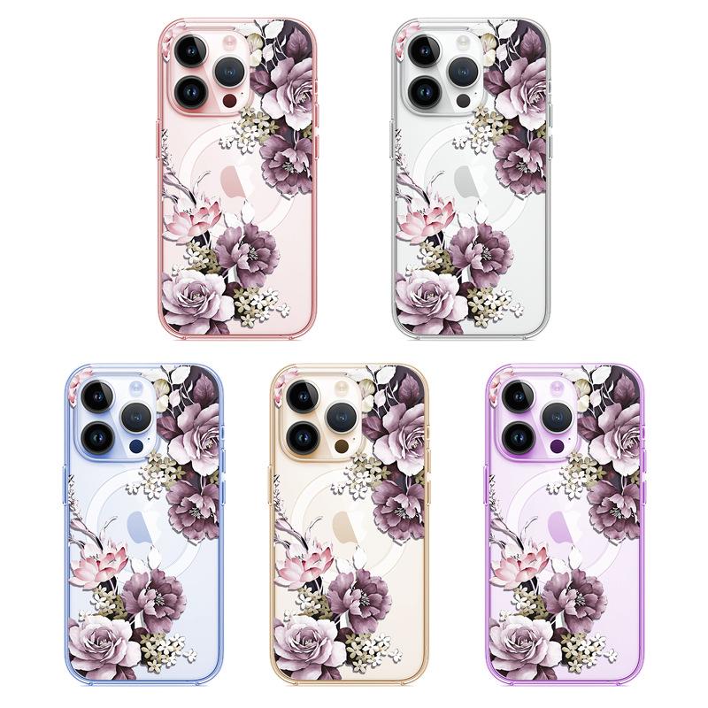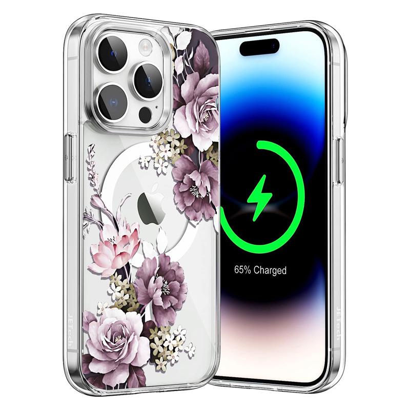 Funda magnética Magsafe Apple 16E para iphone14 flor morado oscuro 16promax funda protectora 13