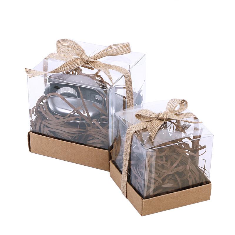 Caja transparente de PVC para regalo de boda, caja de embalaje de papel kraft para dulces, caja de regalo pequeña