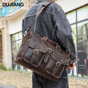 Nuevo bolso bandolera de piel auténtica para hombre, de gran capacidad, de primera capa, de piel de vaca, tipo mensajero, para viajes de negocios