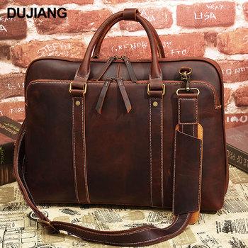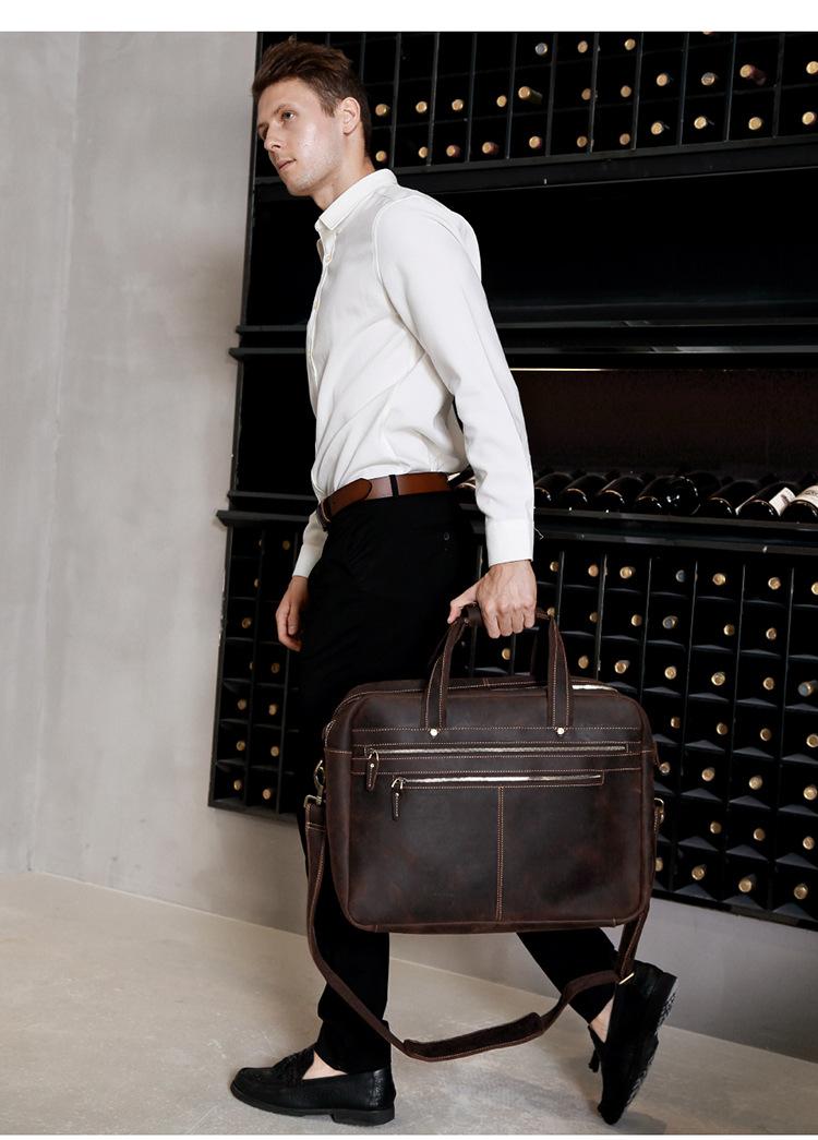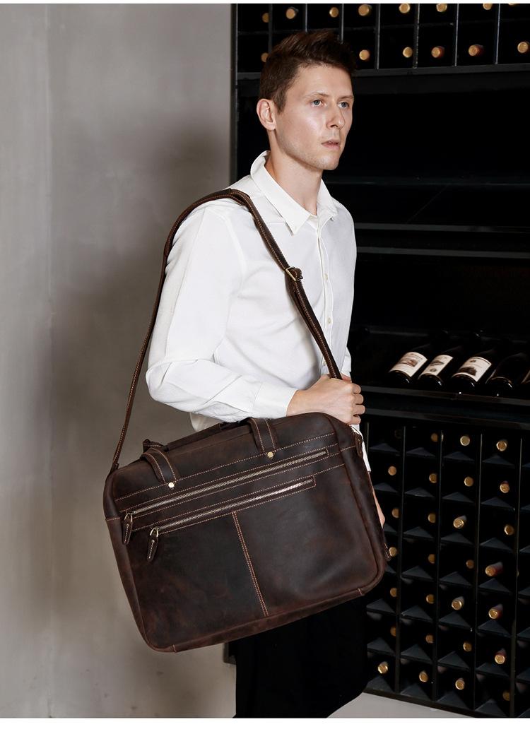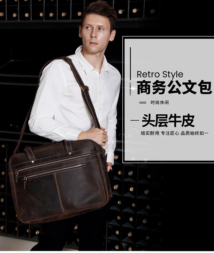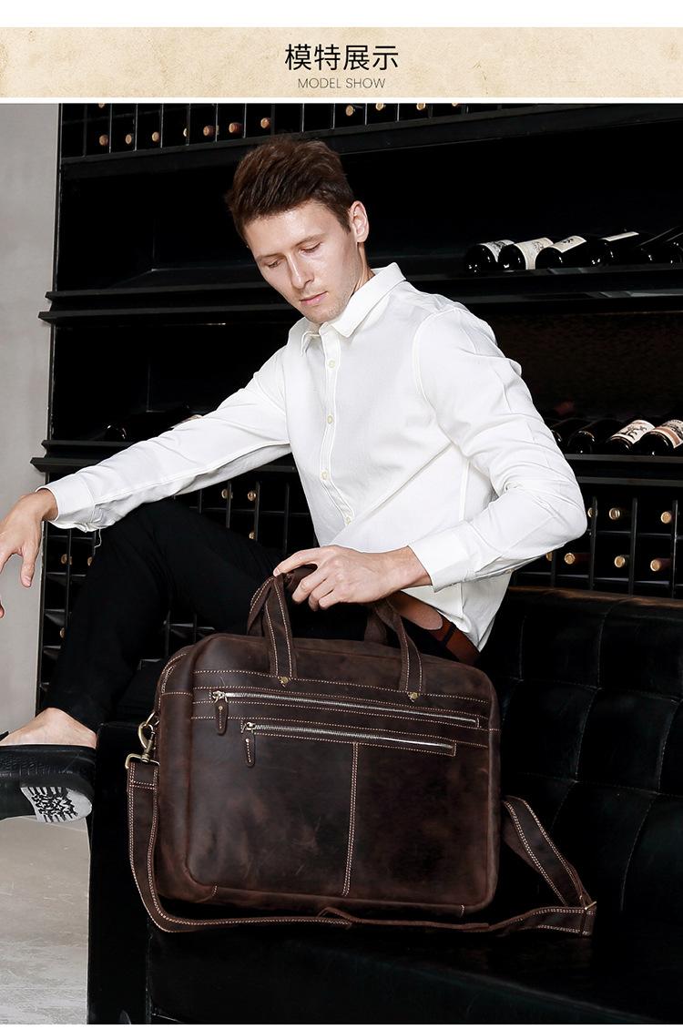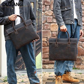 Bolso de mano de negocios de piel de vaca de primera capa para hombre, de gran capacidad, de piel de caballo loco, estilo vintage, maletín de viaje para hombre