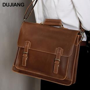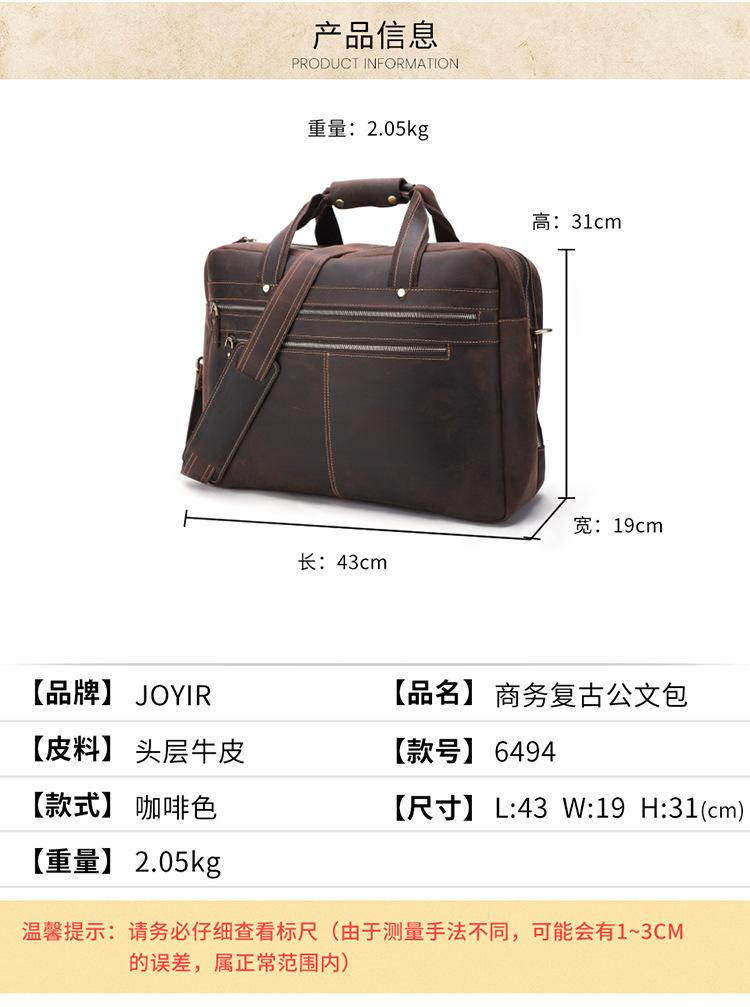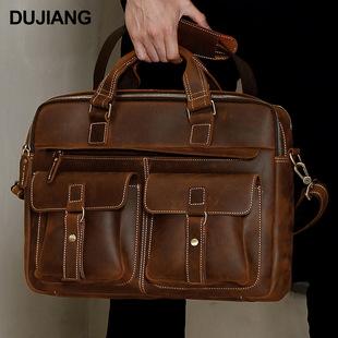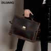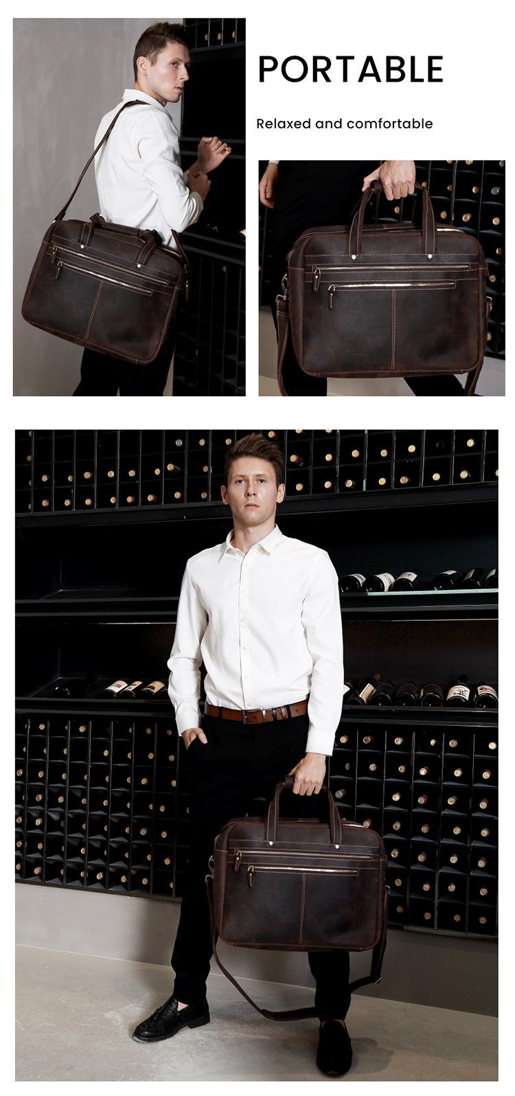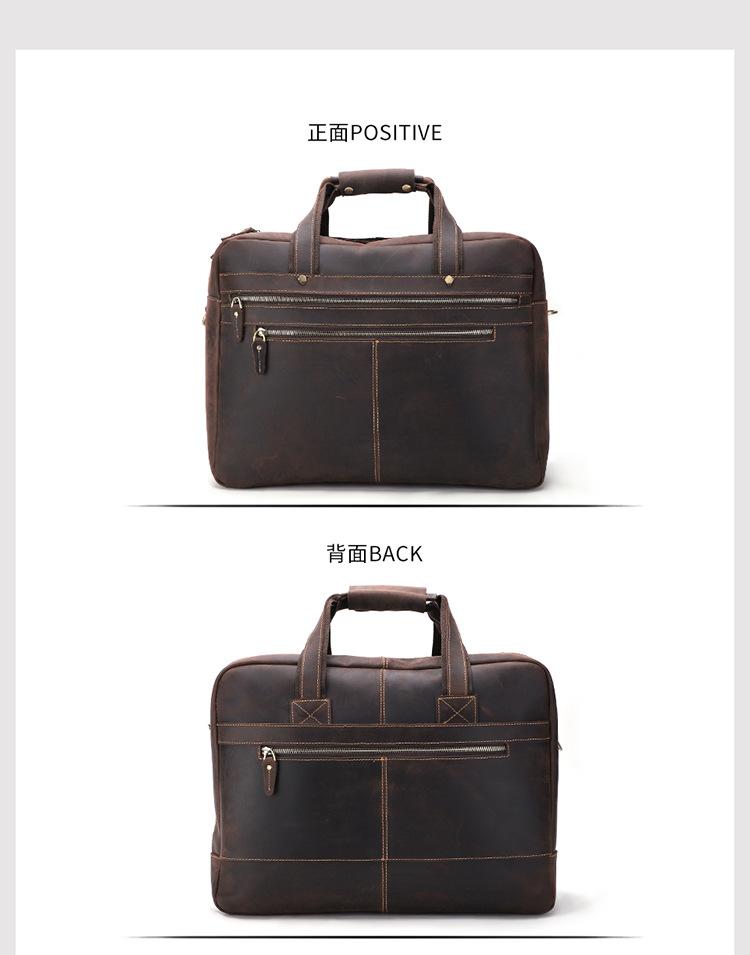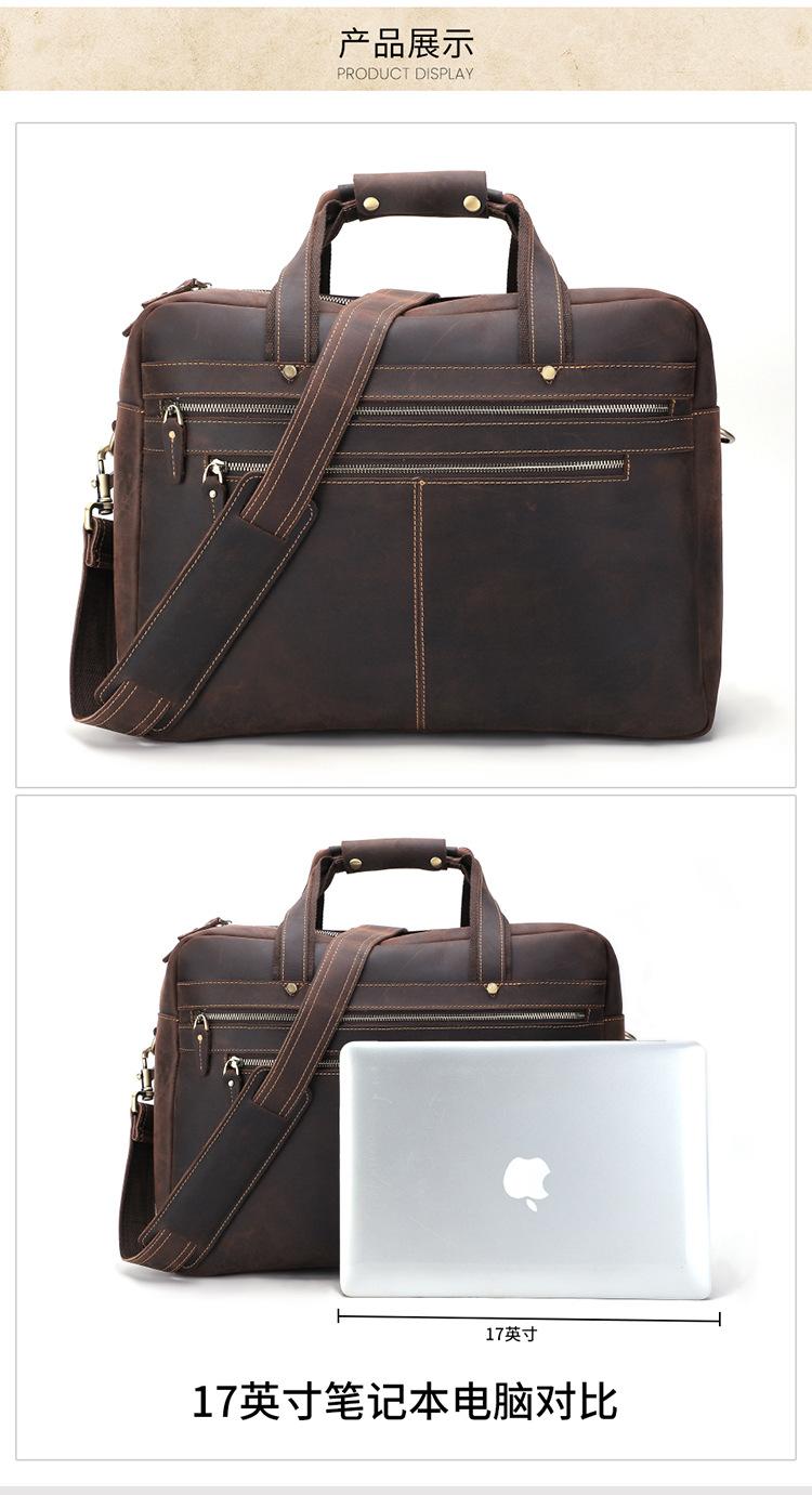 Bolso de mano de negocios de piel de vaca de primera capa para hombre, de gran capacidad, de piel de caballo loco, estilo vintage, maletín de viaje para hombre