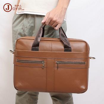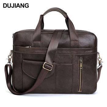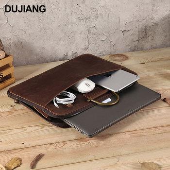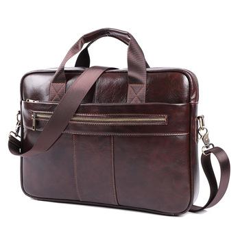 Bolso bandolera portátil de piel de vaca para hombre, estilo retro, para ordenador, de viaje, de cuero genuino, para negocios