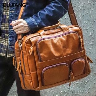 Bolso de hombro de cuero para hombre, nuevo, transfronterizo, bolso de mensajero multifuncional de gran capacidad, bolso de mano retro de piel de vaca para hombre