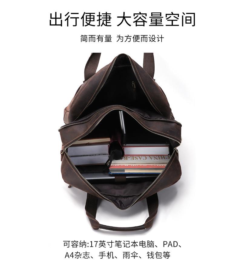 Mochila de alta gama de cuero genuino retro transfronterizo para hombres y mujeres Mochila para computadora de 15.6 pulgadas de gran capacidad de cuero de caballo loco