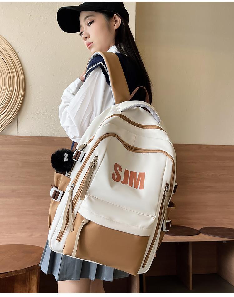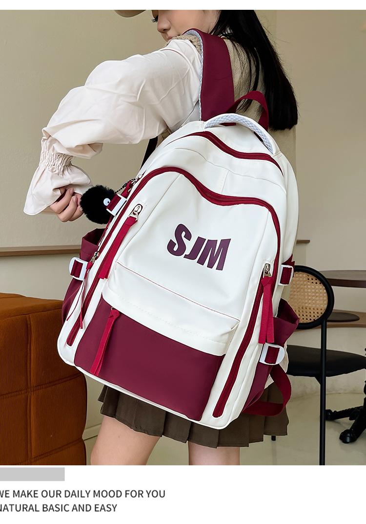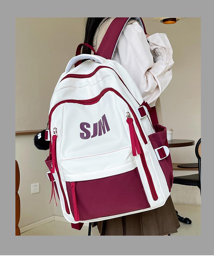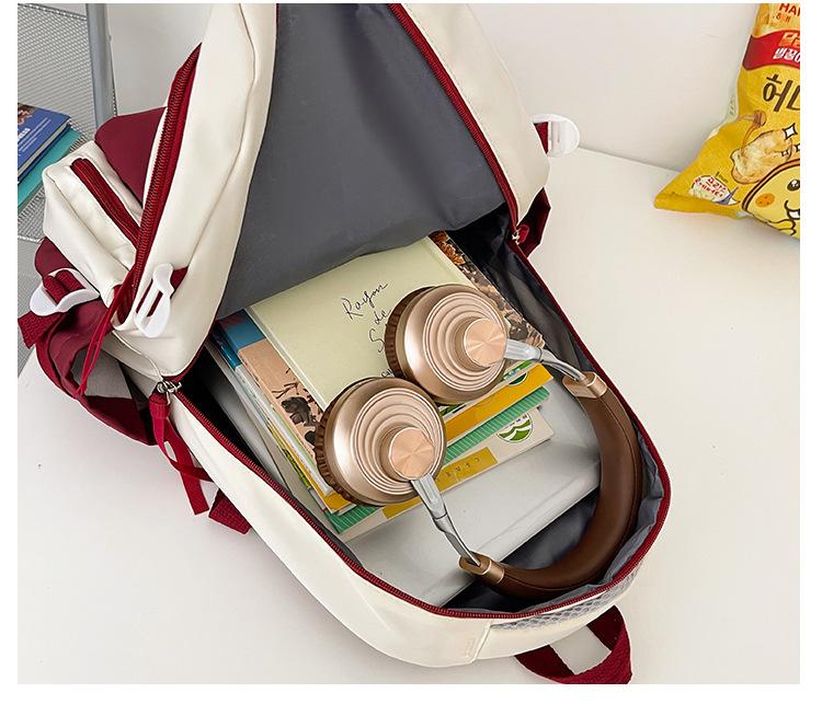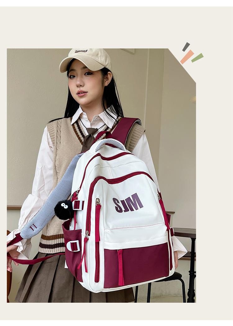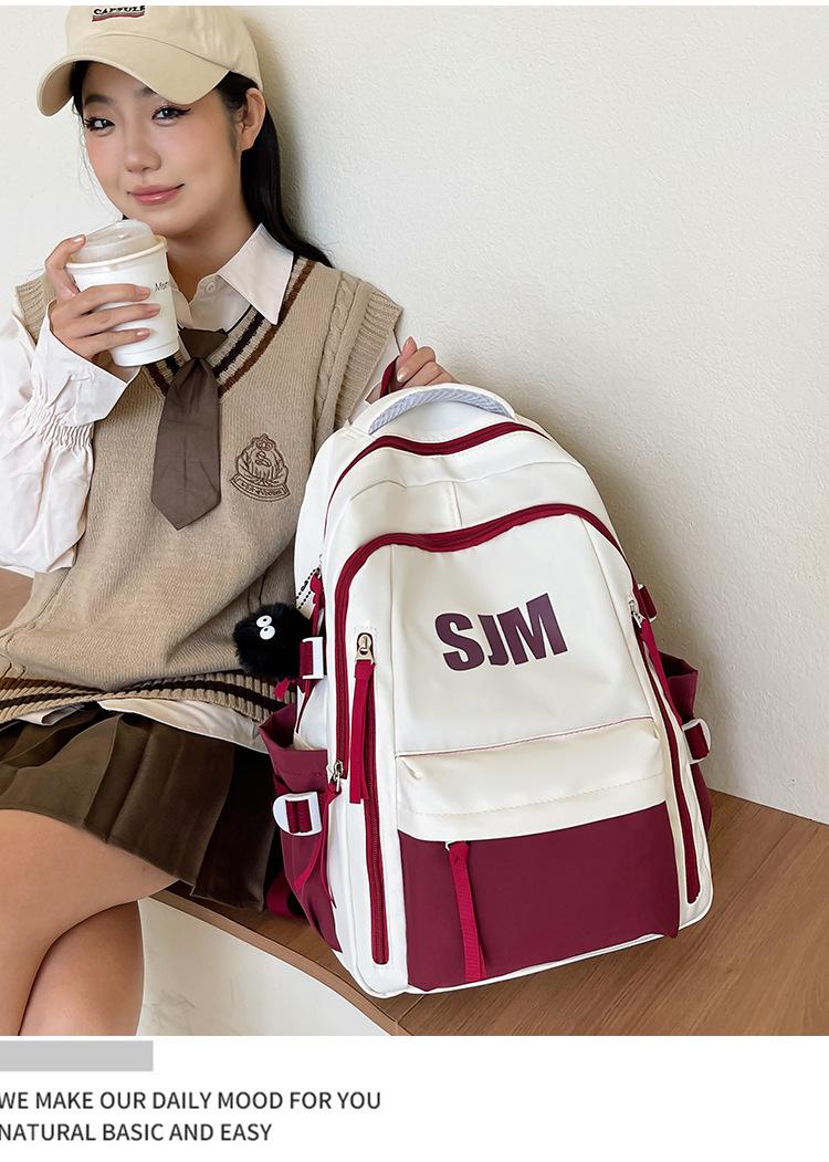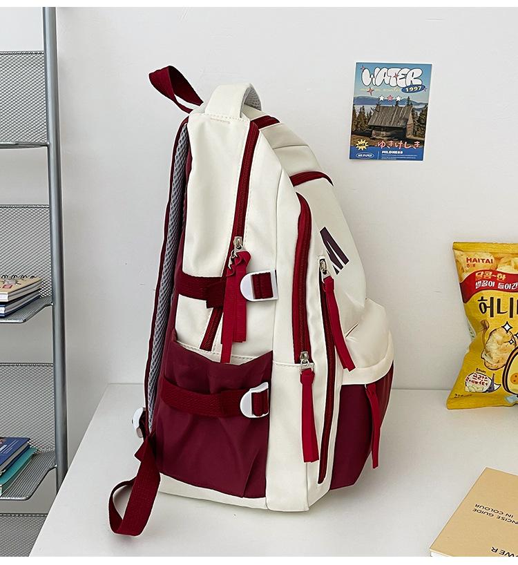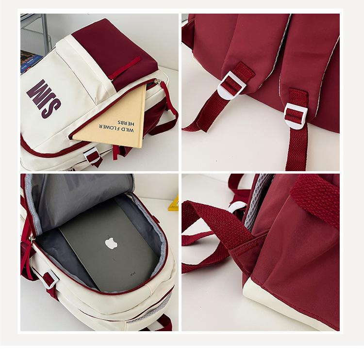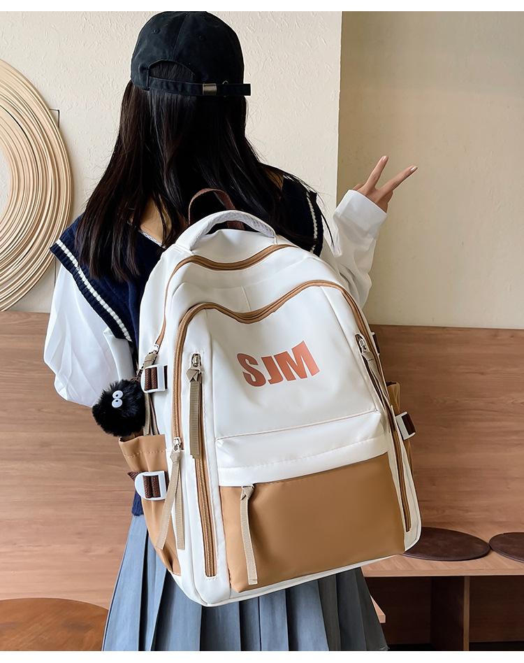 Mochila Nueva Gran Capacidad Color Contraste Retro Mochila Escolar para Estudiante Universitario Femenina Gran Capacidad Estudiante de Preparatoria Estudiante de Secundaria Mochila