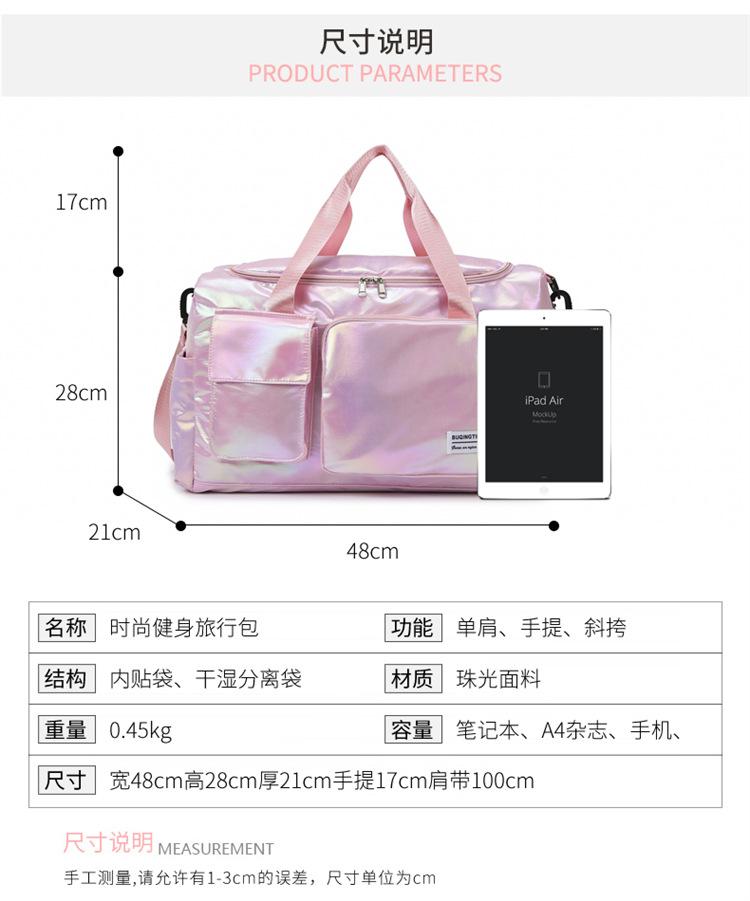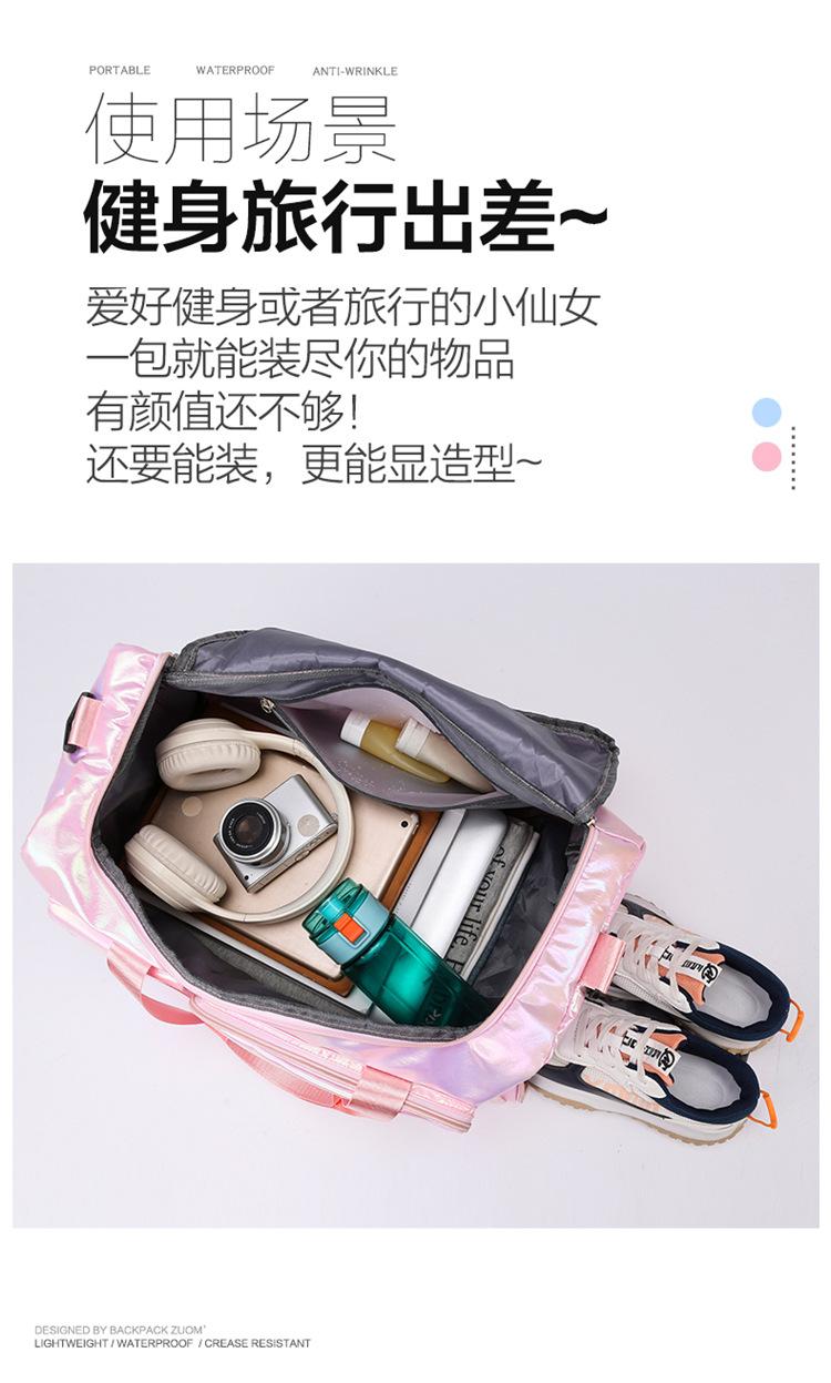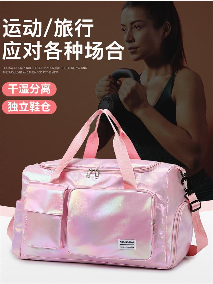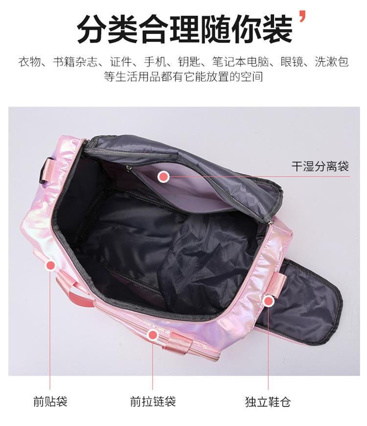 Bolsa de viaje de corta distancia para mujer, de gran capacidad, con compartimentos separados para artículos secos y húmedos, portátil, ligera, para viajes, deportes y fitness, bolsa de almacenamiento.