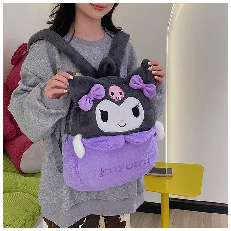 Nueva mochila de dibujos animados Kulomi, linda mochila de peluche Sanrio, mochila escolar de gran capacidad para estudiantes, mochila para niñas