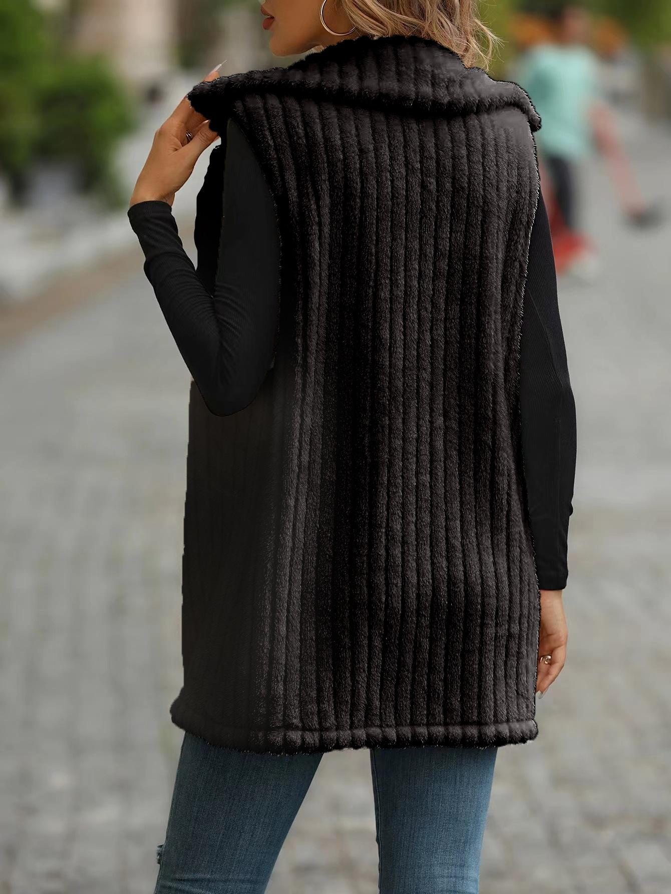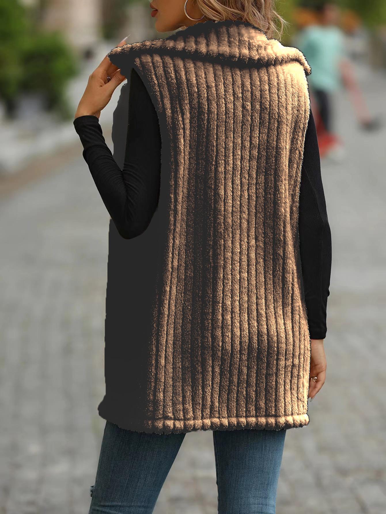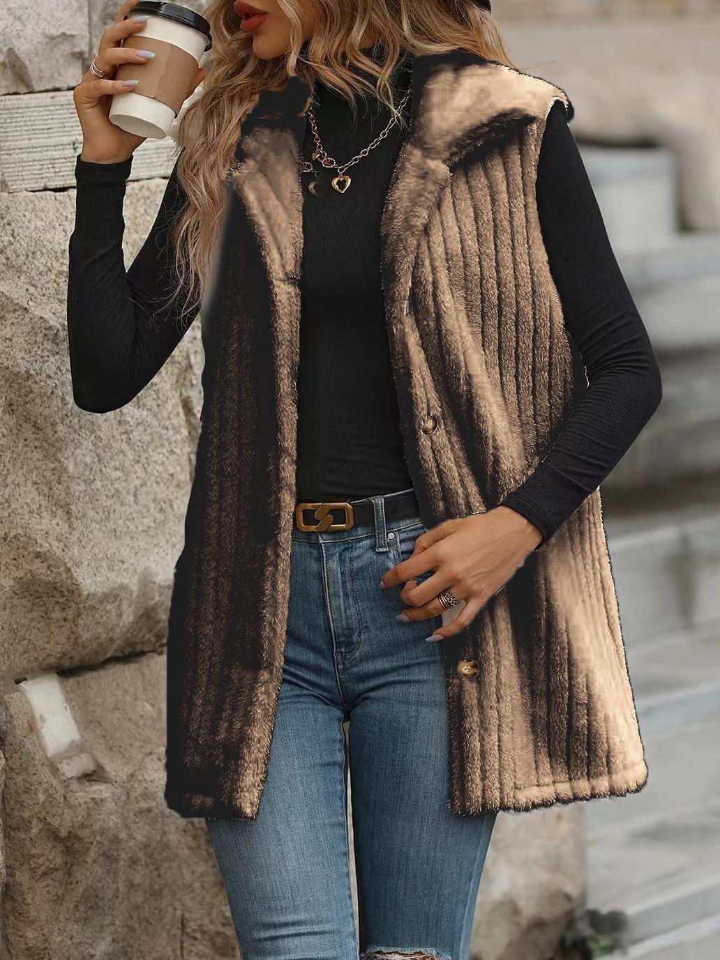 Abrigo chaleco de lana para mujer europeo y americano moda transfronteriza otoño e invierno exterior largo de felpa chaleco chaleco con cuello de traje