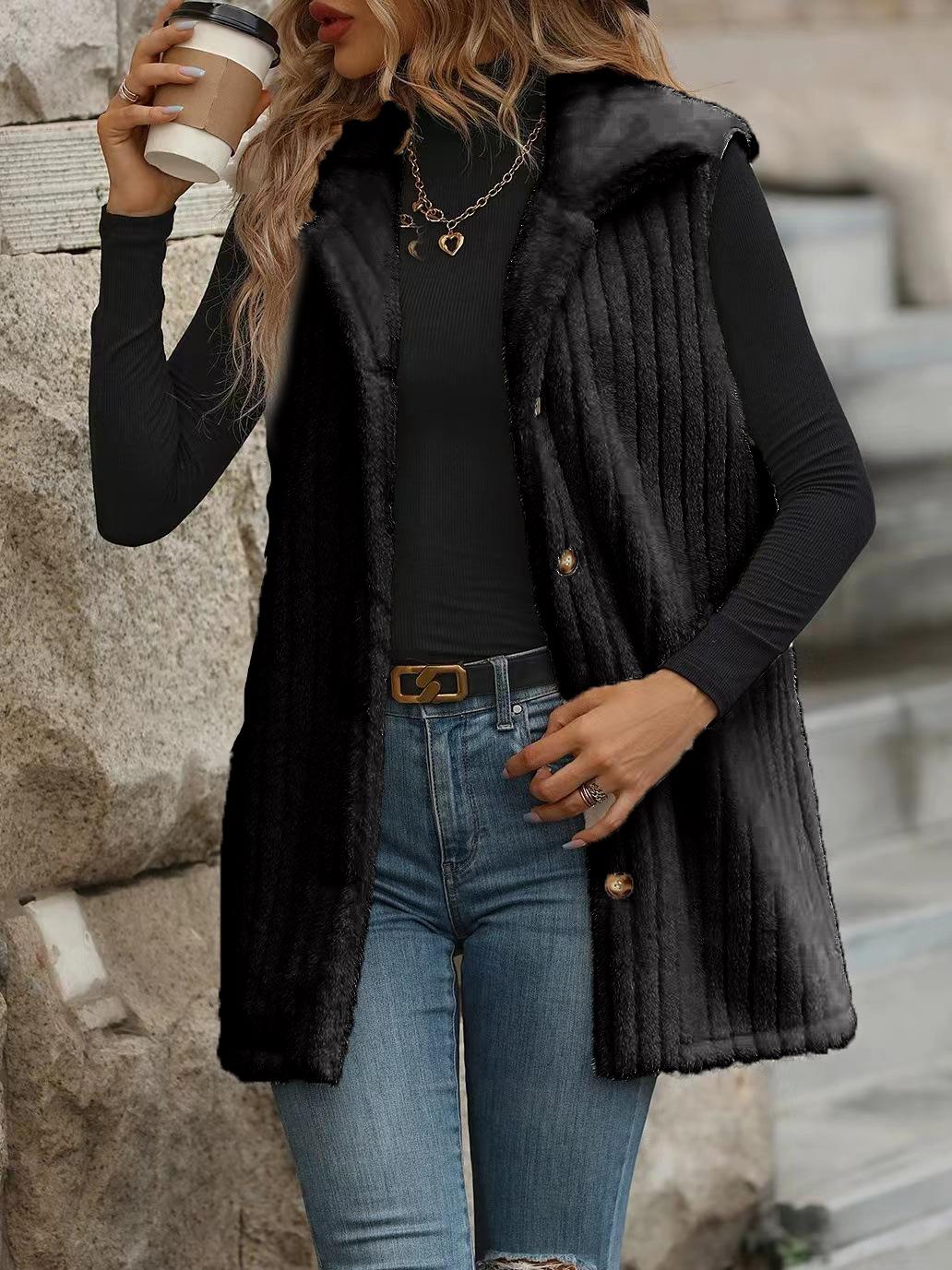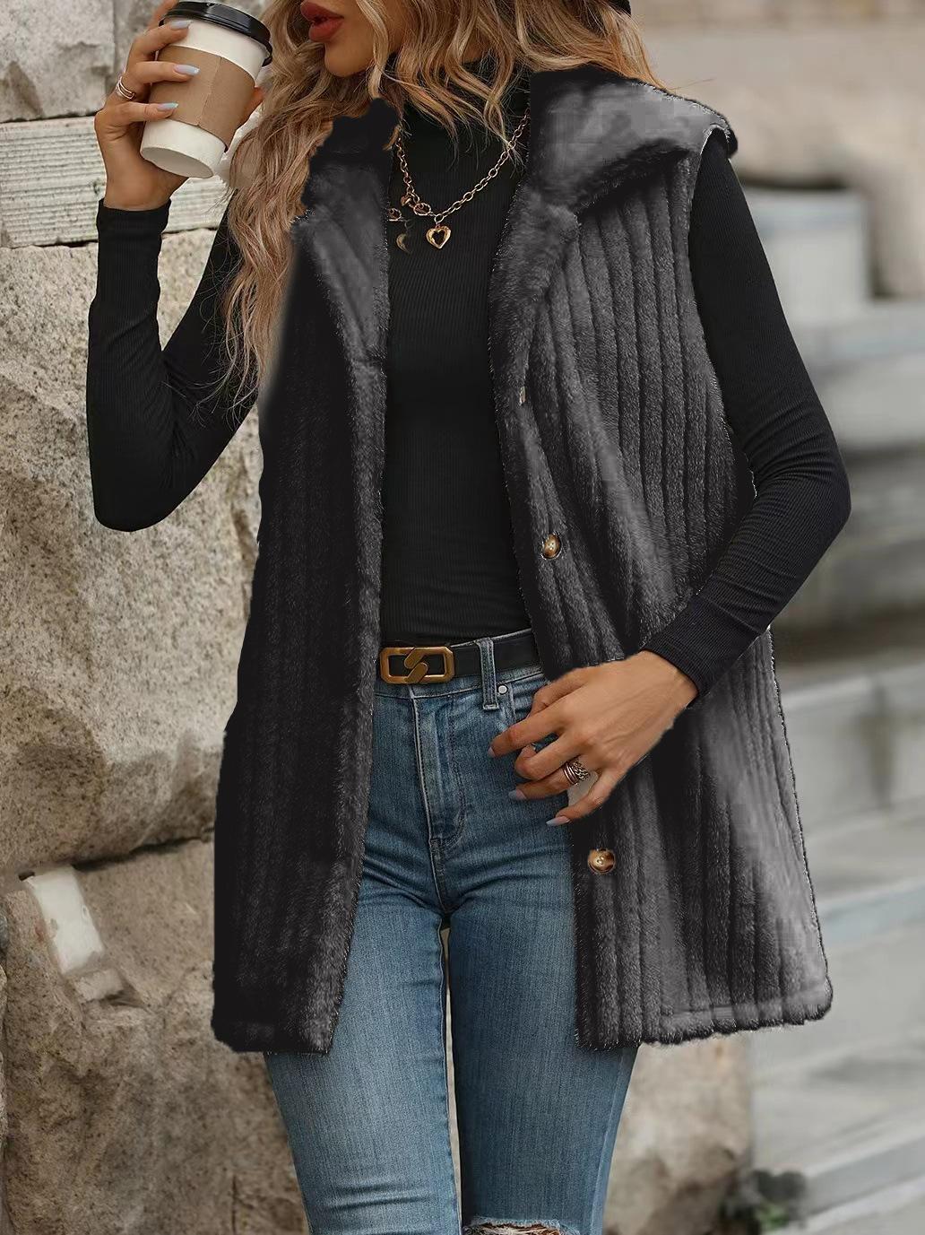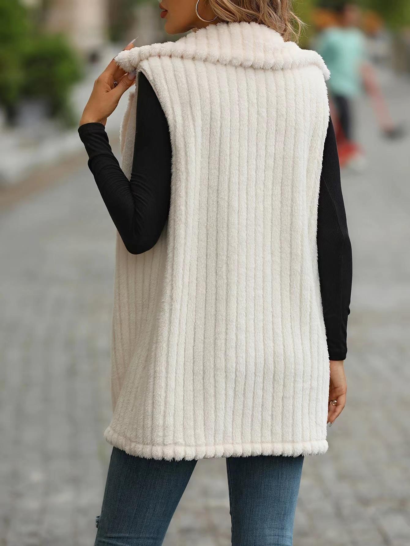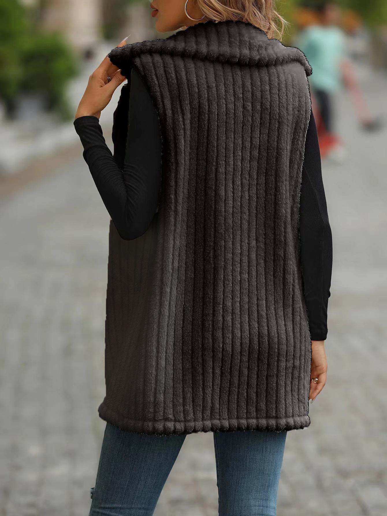 Abrigo chaleco de lana para mujer europeo y americano moda transfronteriza otoño e invierno exterior largo de felpa chaleco chaleco con cuello de traje