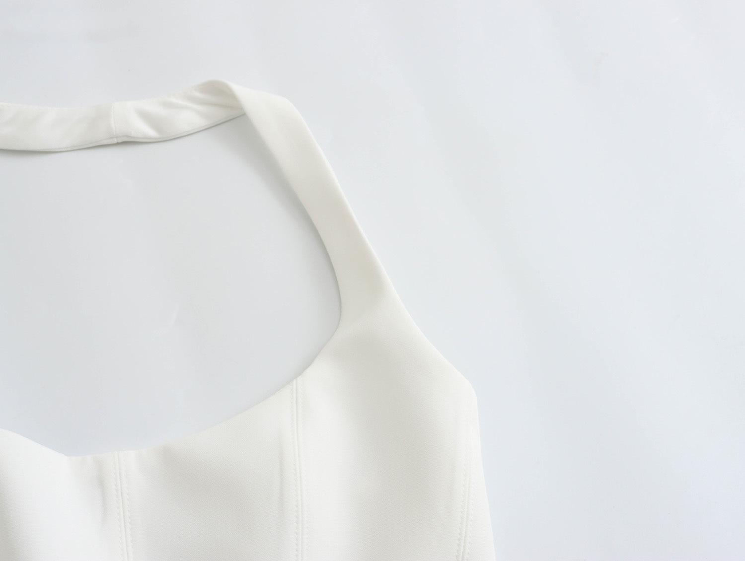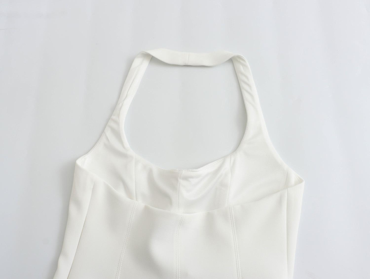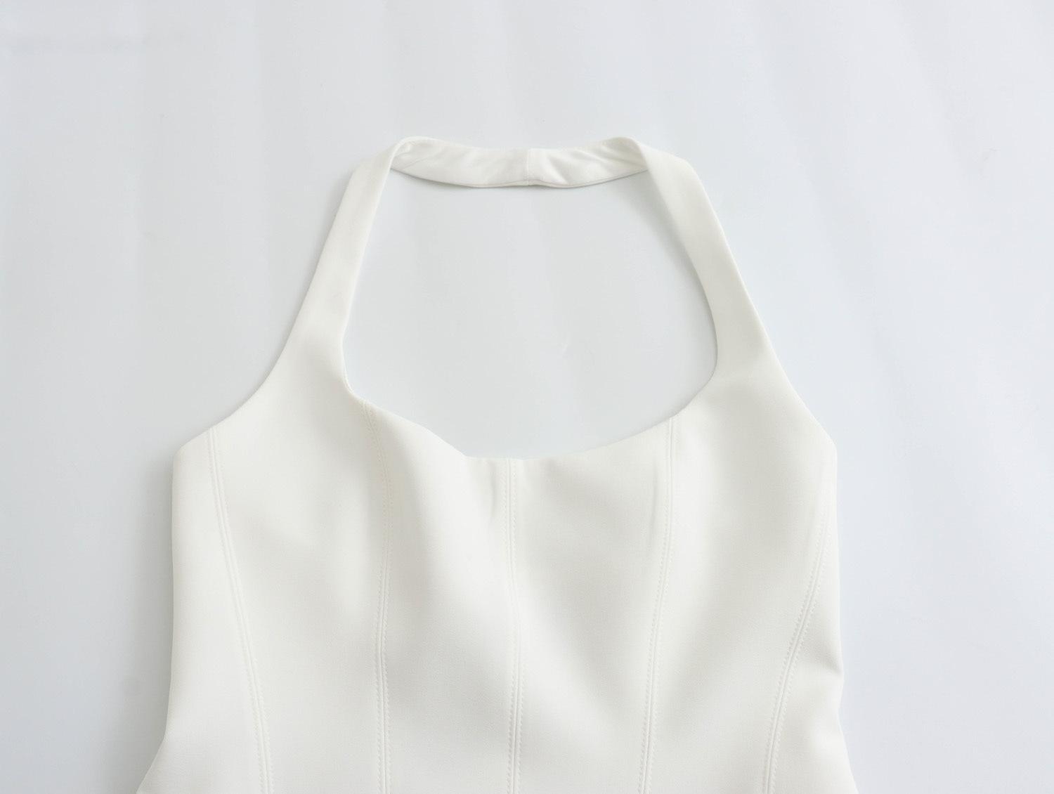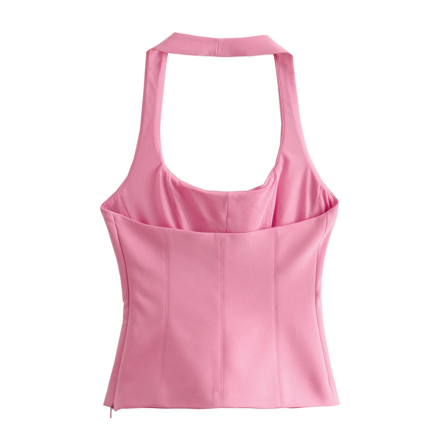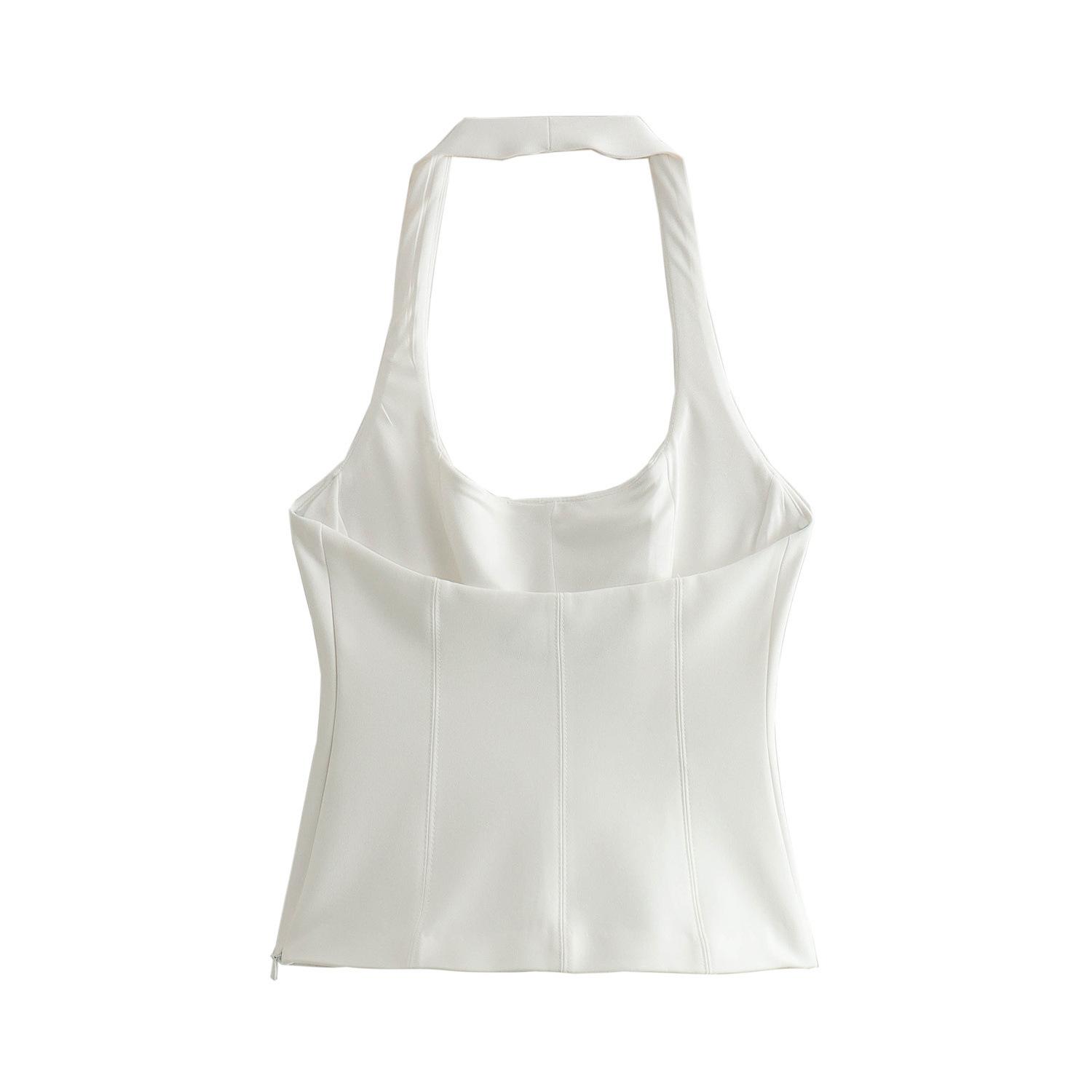 Top exterior de verano estilo europeo y americano transfronterizo para mujer, sin mangas, con cuello halter, ajustado, bicolor