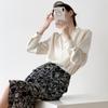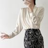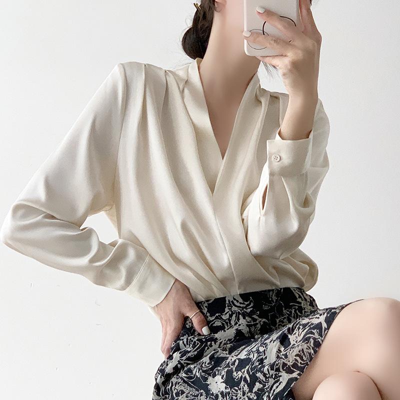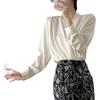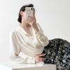Celebrity 2025 Primavera y Verano Nueva Camisa Beige de Cuello Mao Pura de Manga Larga Camisa de Satén Camisa Hermosa de Cintura Delgada con Aroma Femenino