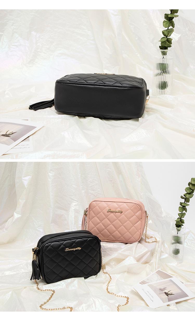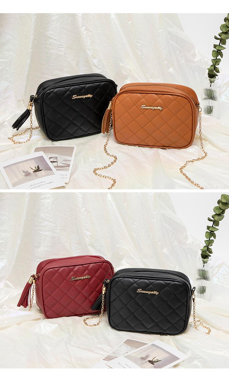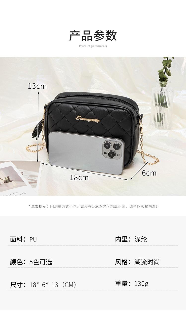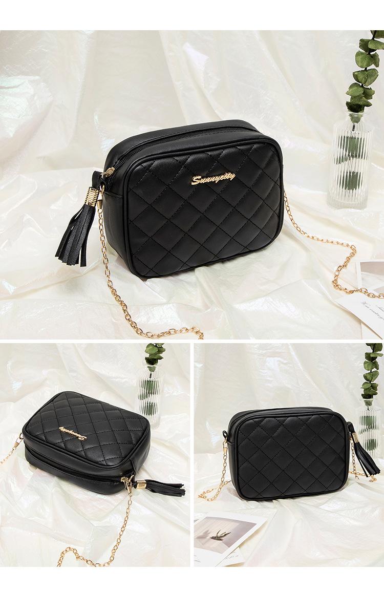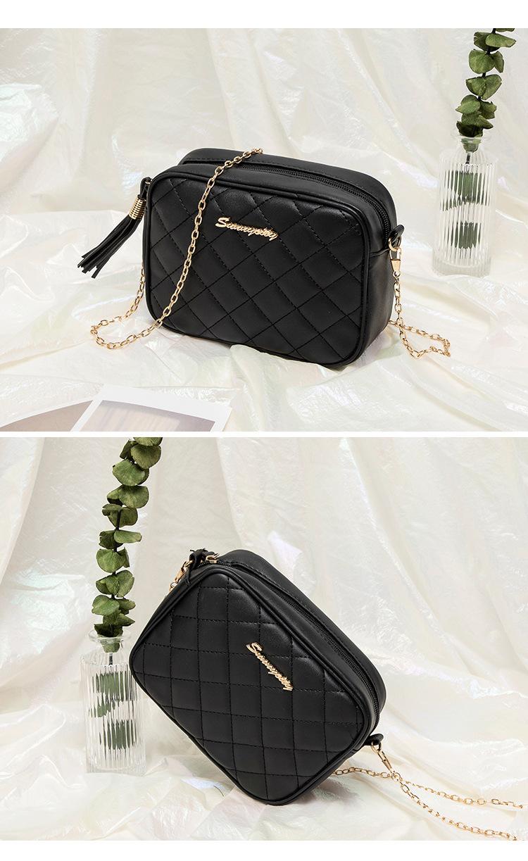 Bolso de Dama Sencillo Casual Bolso Cuadrado Pequeño Clásico Bordado Diamante A Cuadros Bolso para Teléfono Móvil Moda Borla Cremallera Bolso Cruzado