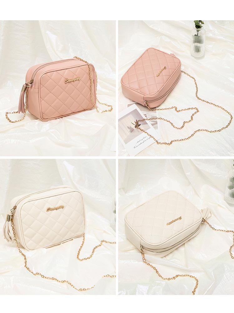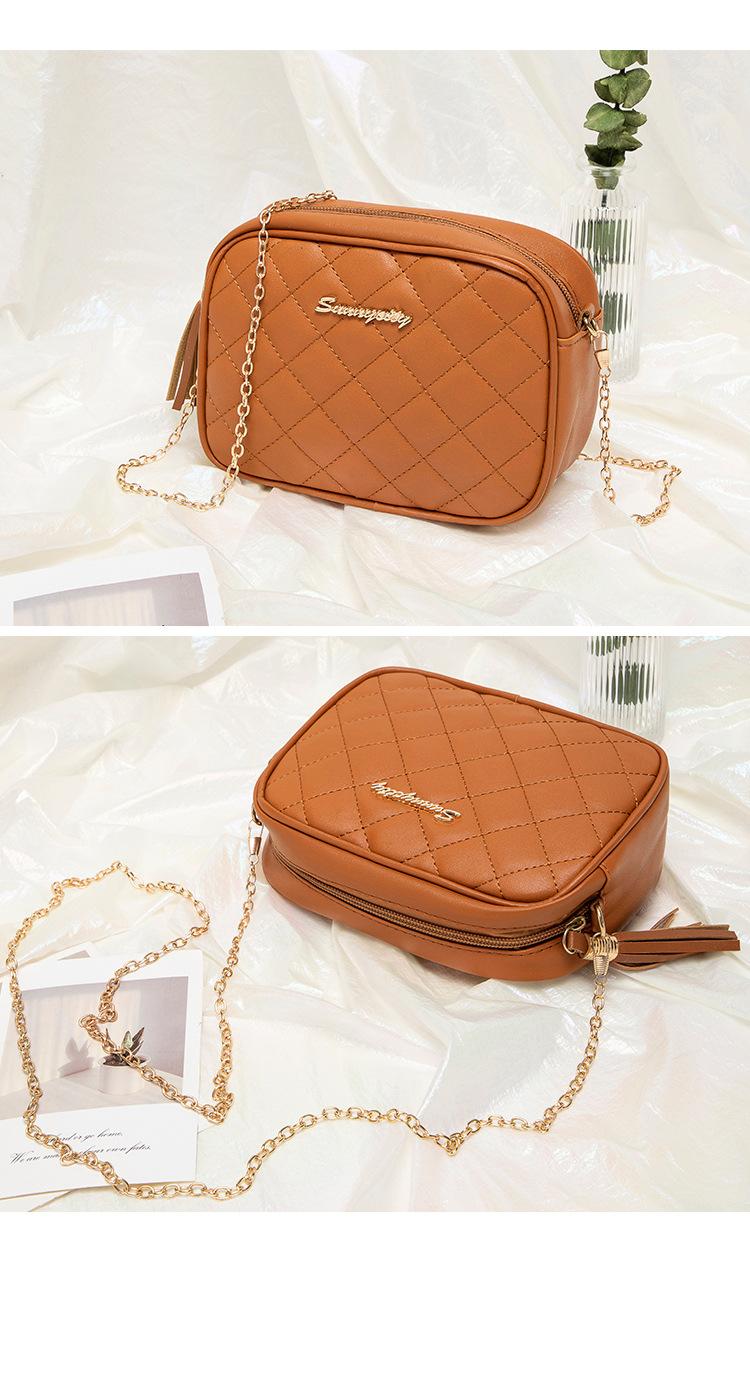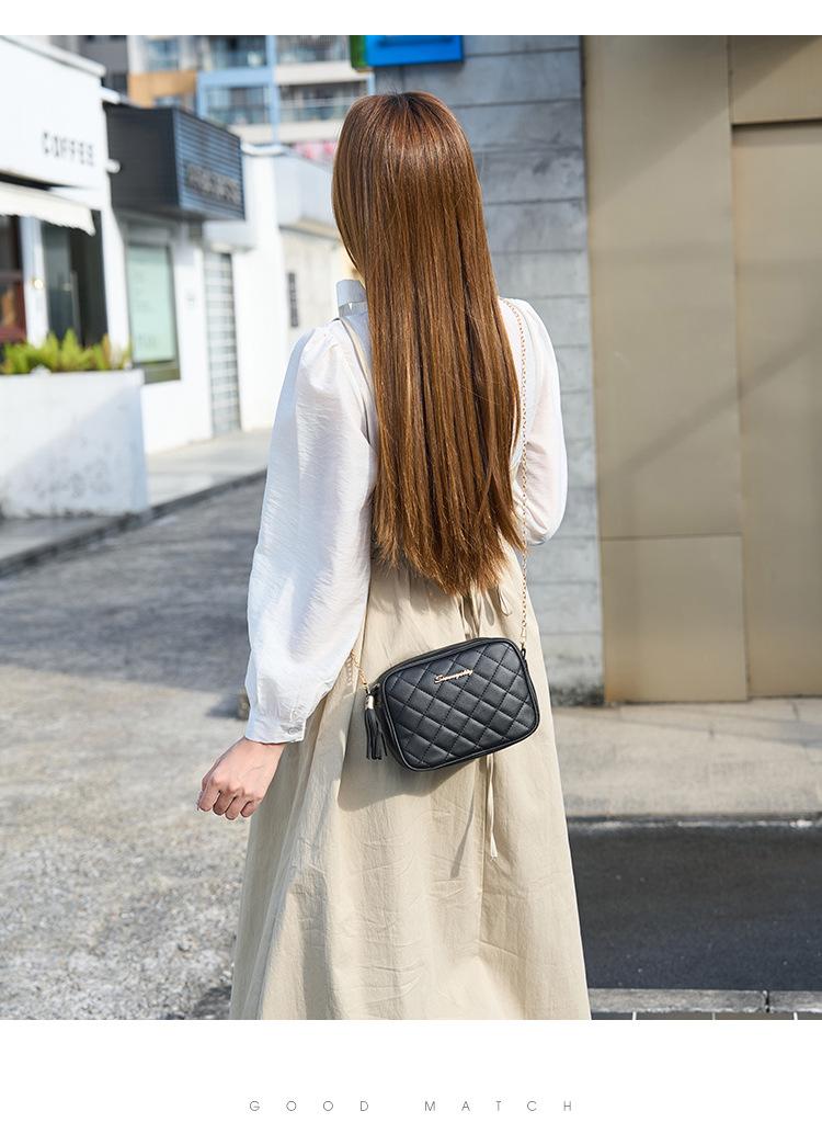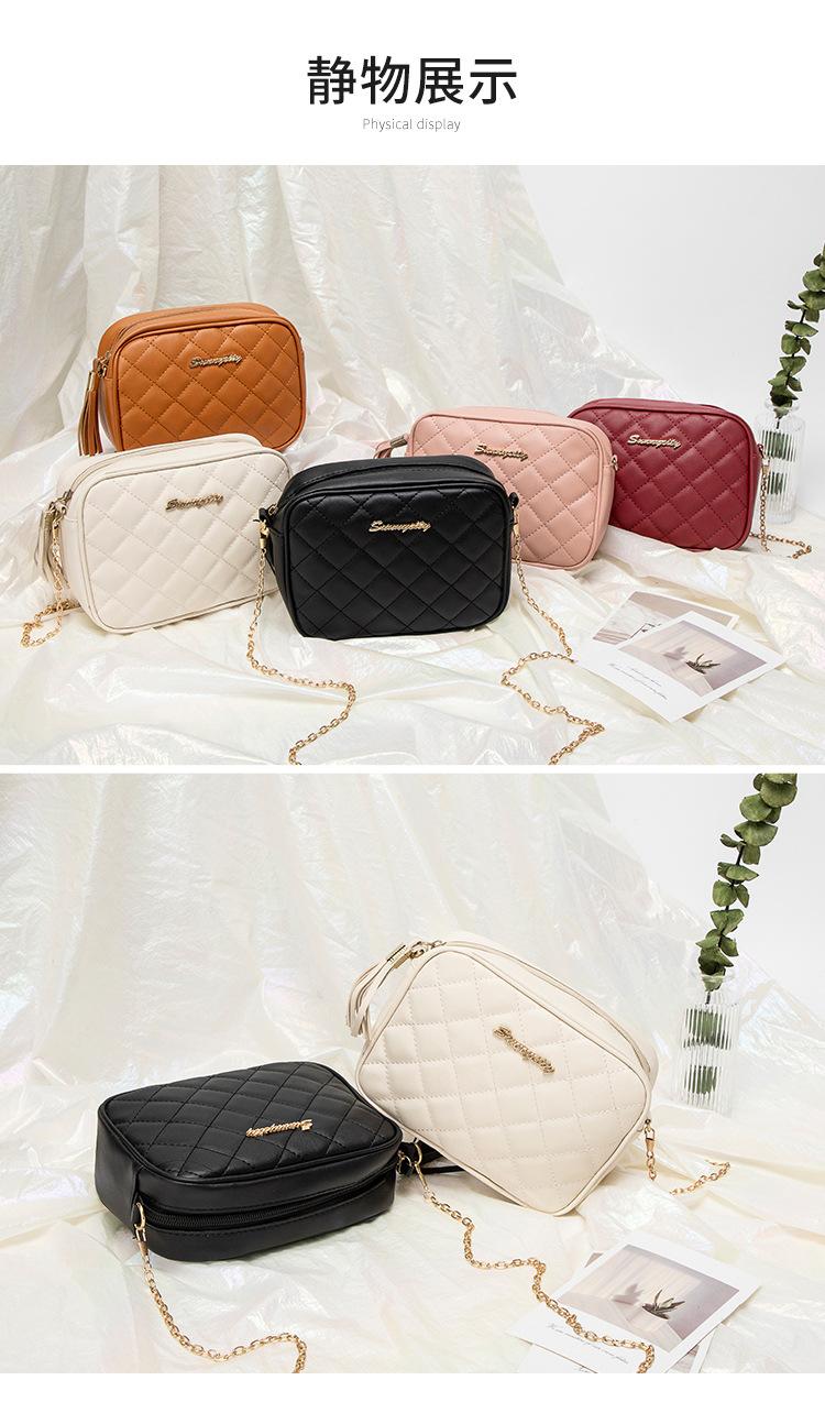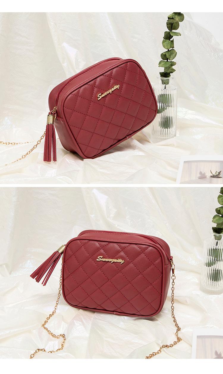 Bolso de Dama Sencillo Casual Bolso Cuadrado Pequeño Clásico Bordado Diamante A Cuadros Bolso para Teléfono Móvil Moda Borla Cremallera Bolso Cruzado