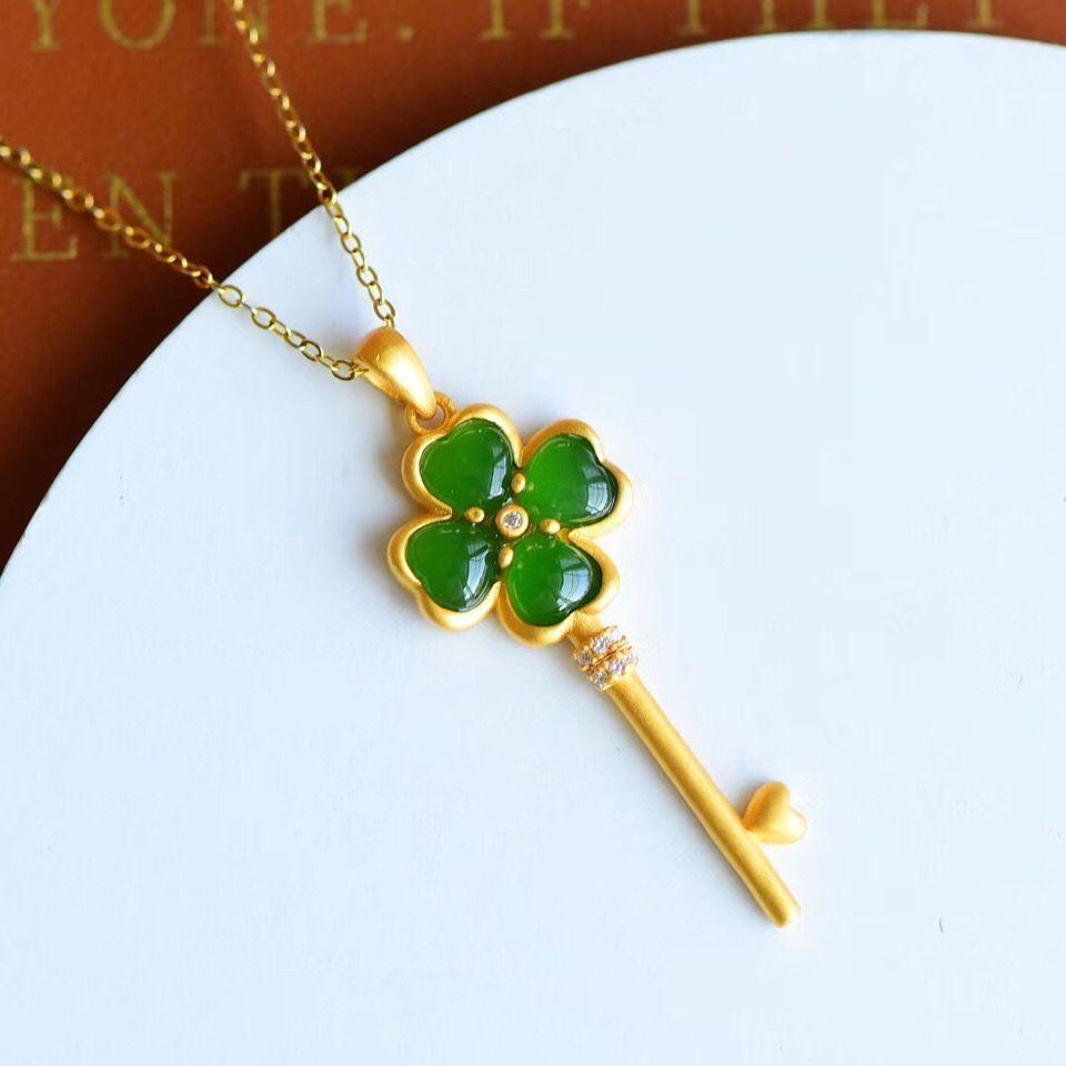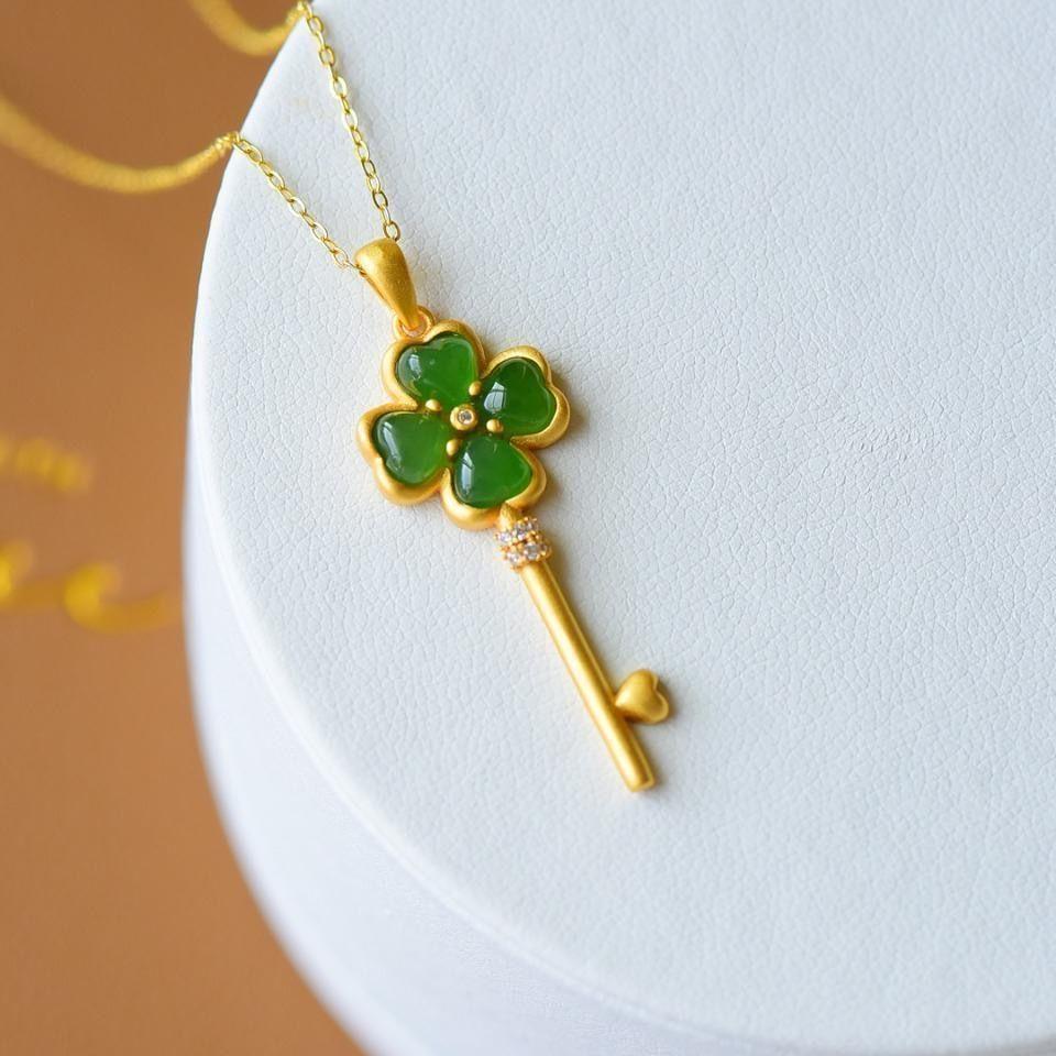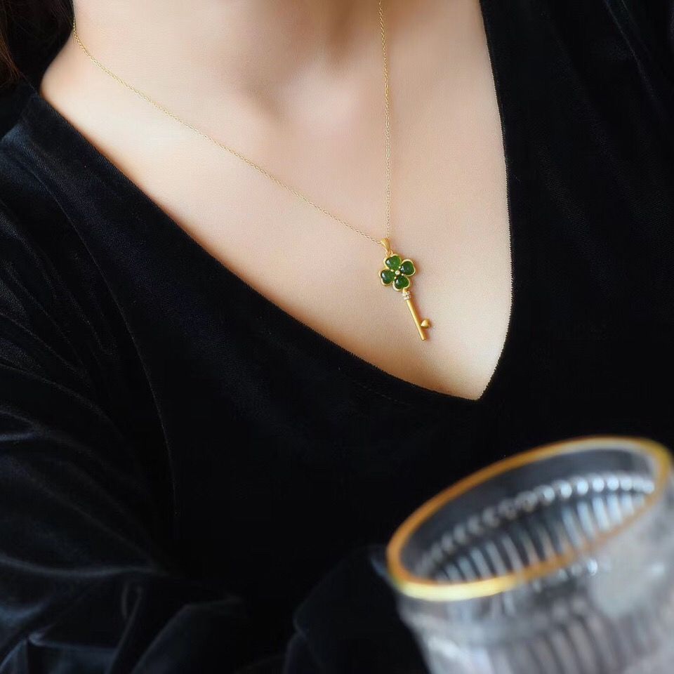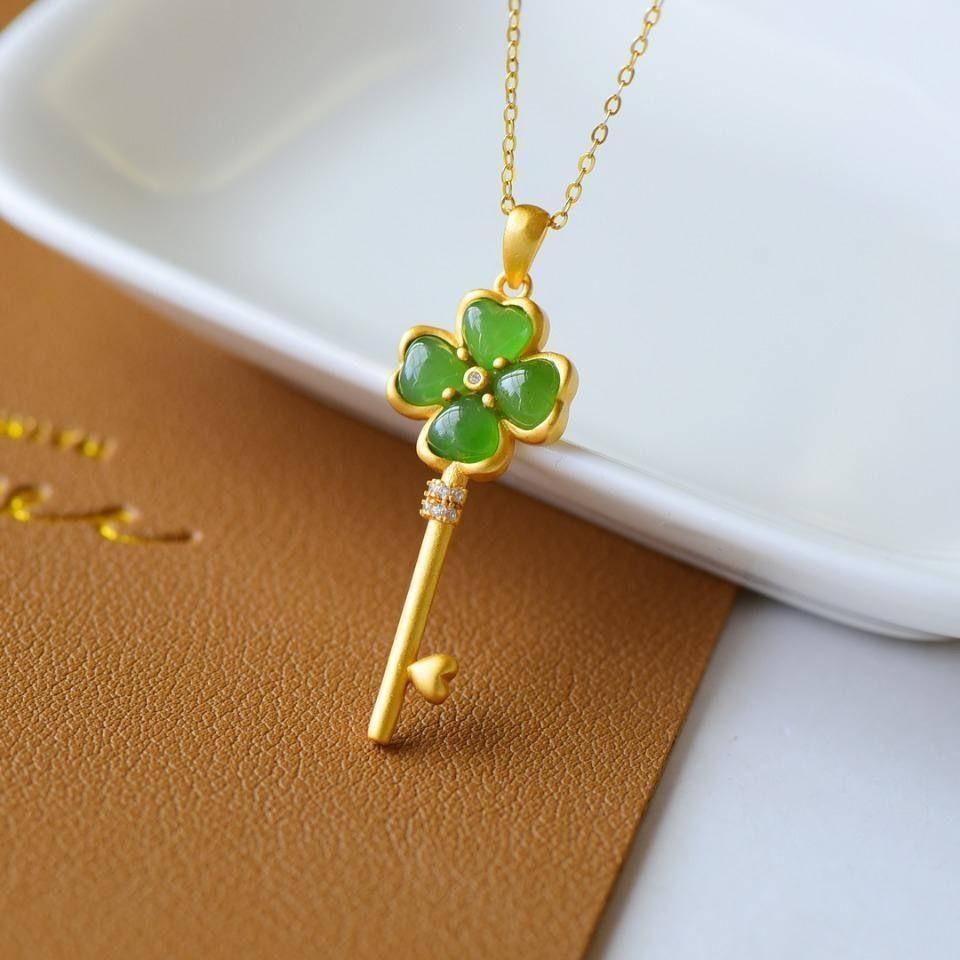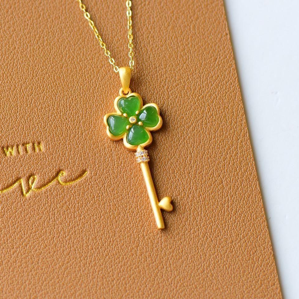 Four-Leaf Clover key pendant (single pendant), Love key pendant with cross chain