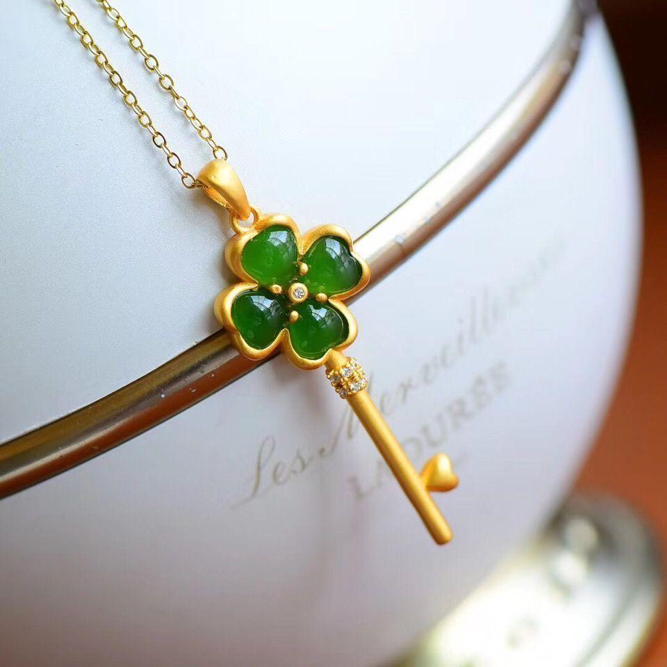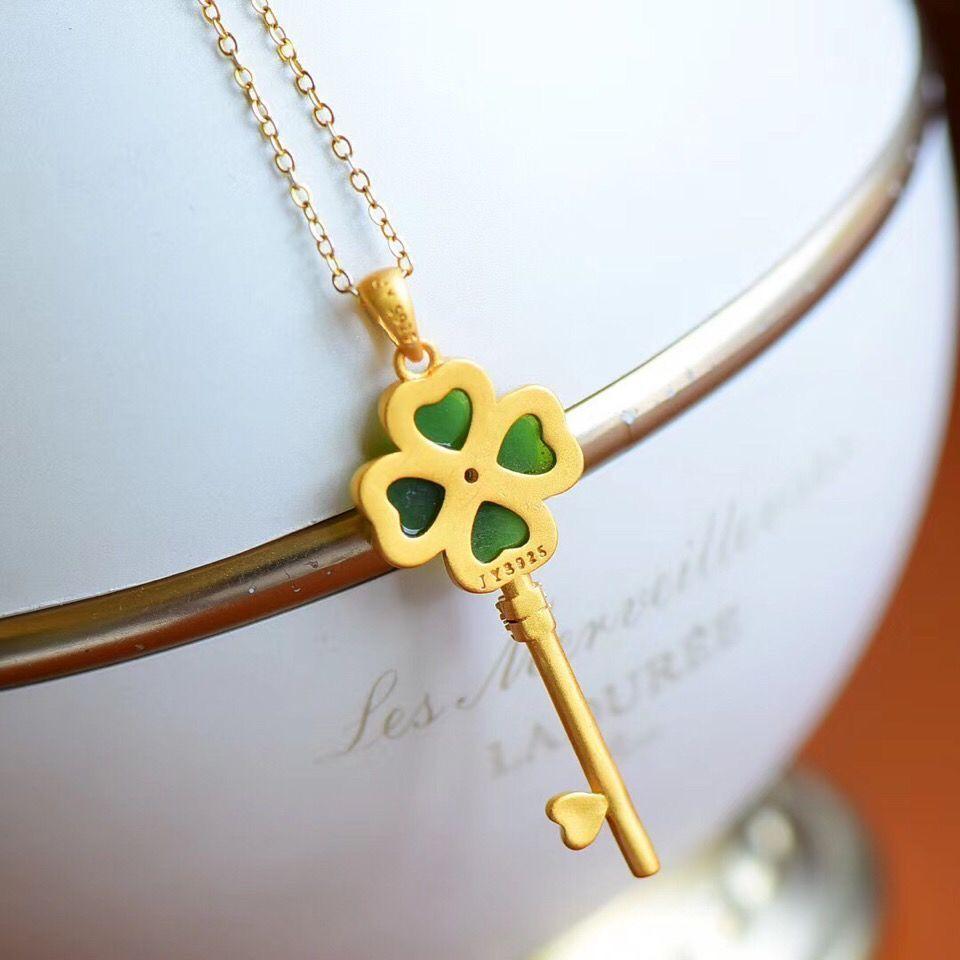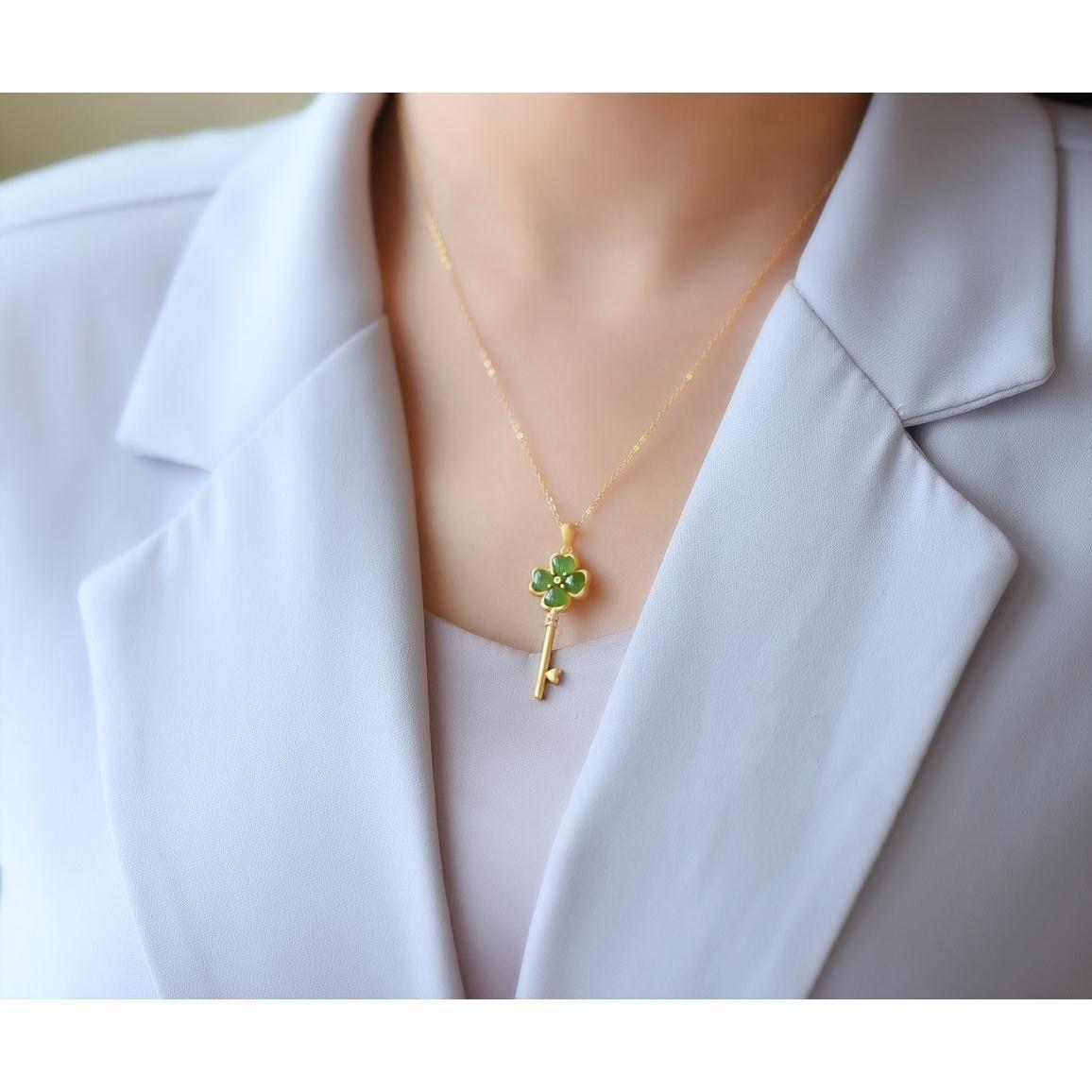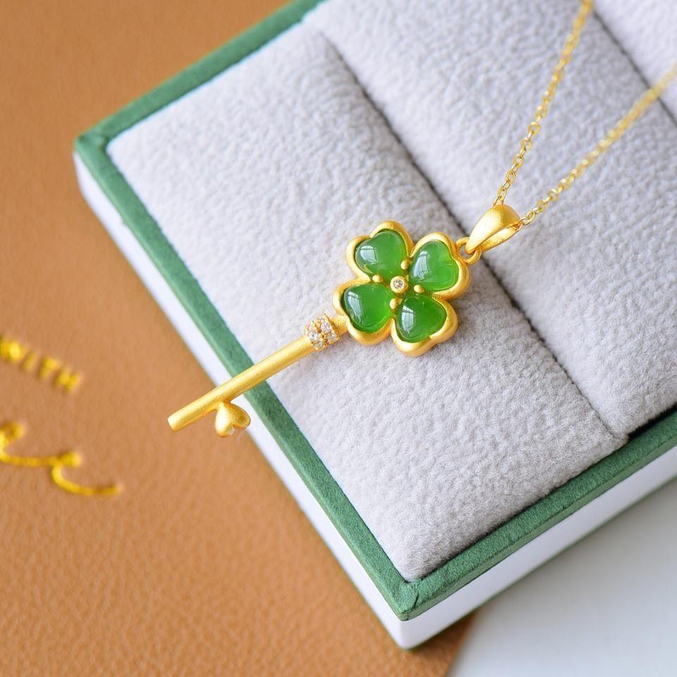 Four-Leaf Clover key pendant (single pendant), Love key pendant with cross chain