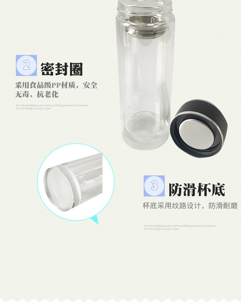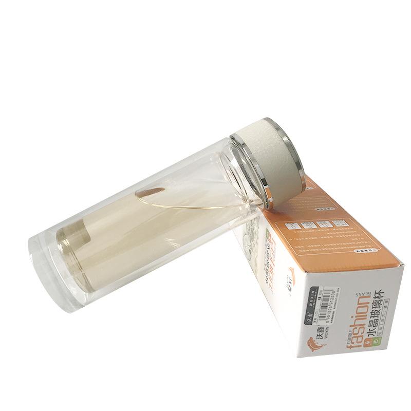 Nombre del producto: Vaso de agua de doble capa de vidrio Woxin con fondo de cristal