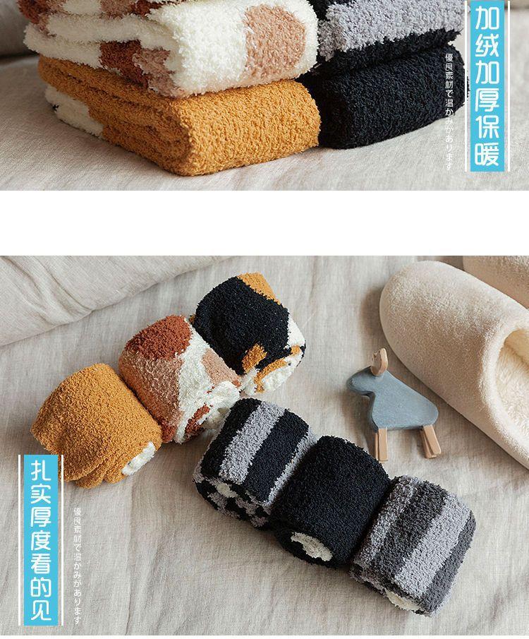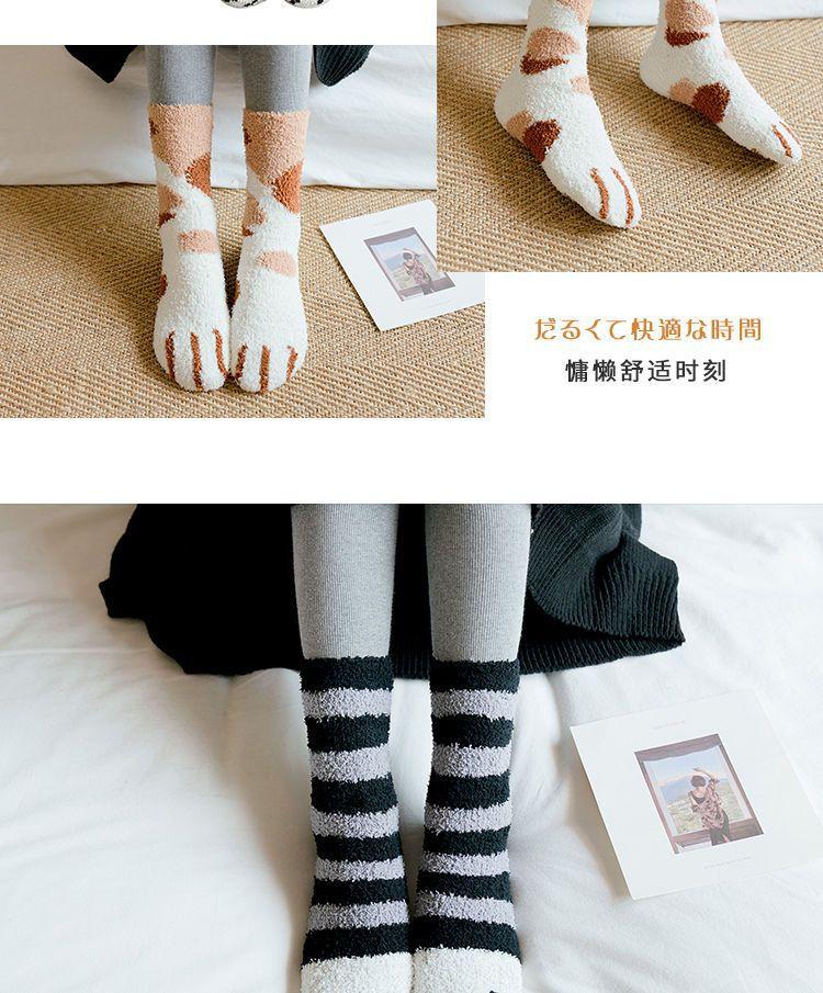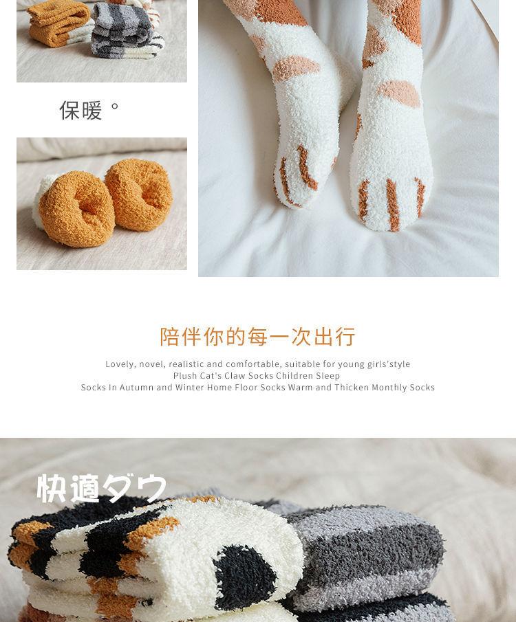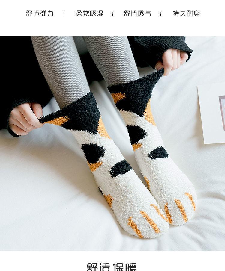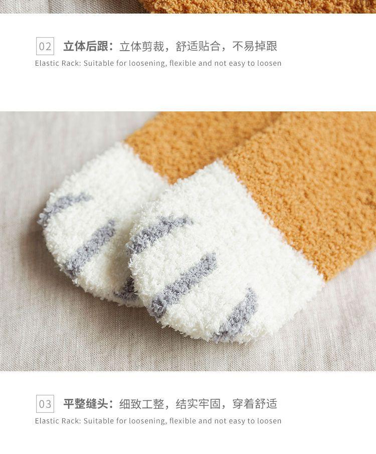 Calcetines de forro polar coral para mujer versión coreana ins lindos garra de gato japonés toalla gruesos cálidos otoño e invierno calcetines de piso calcetines para dormir