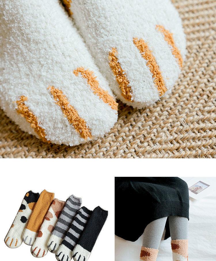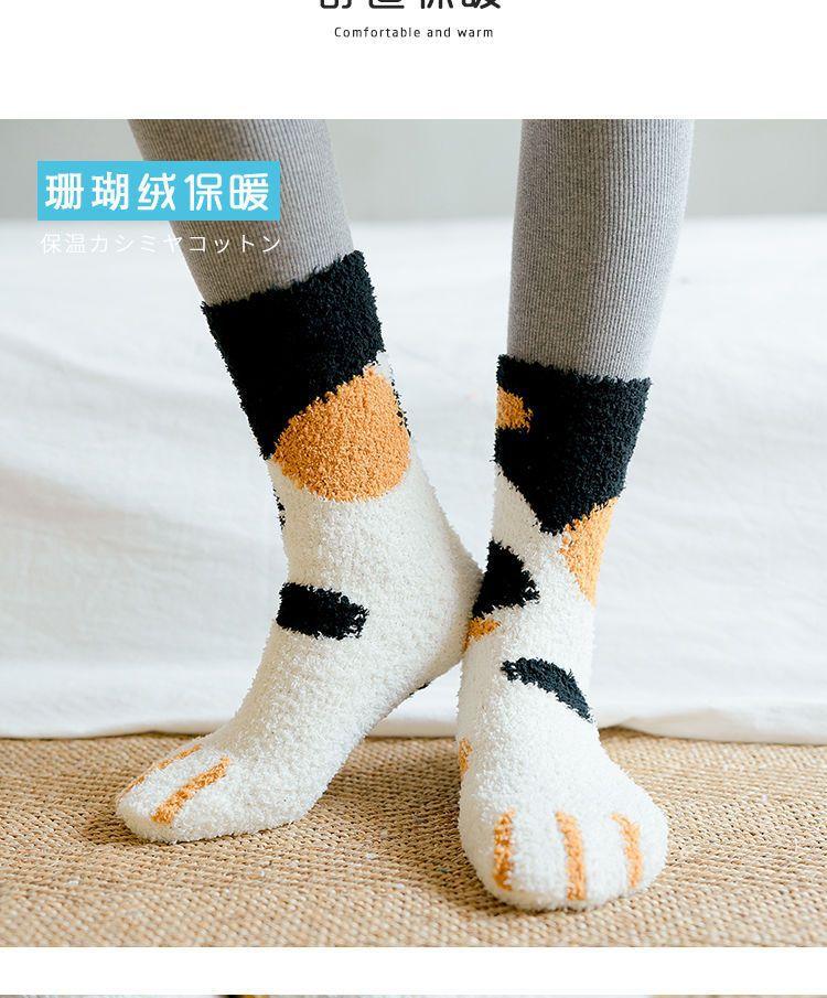 Calcetines de terciopelo coral invierno garra de gato cálidos para dormir calcetines de piso