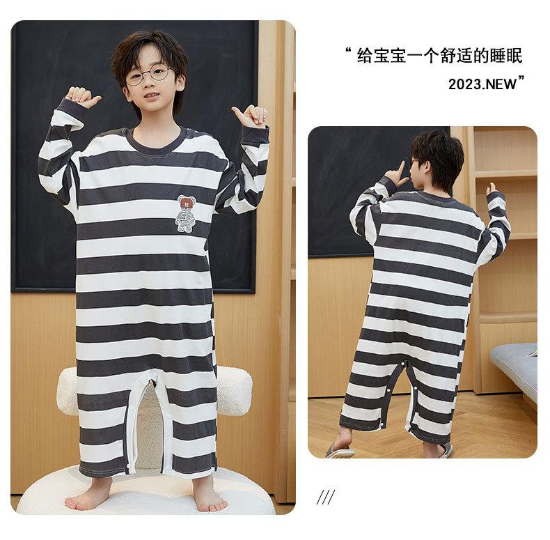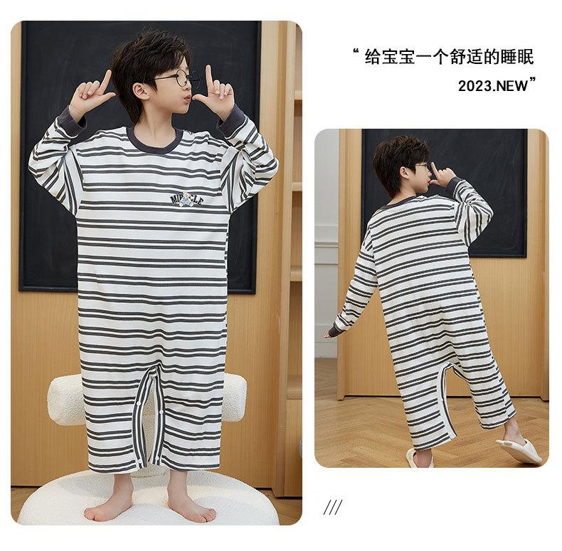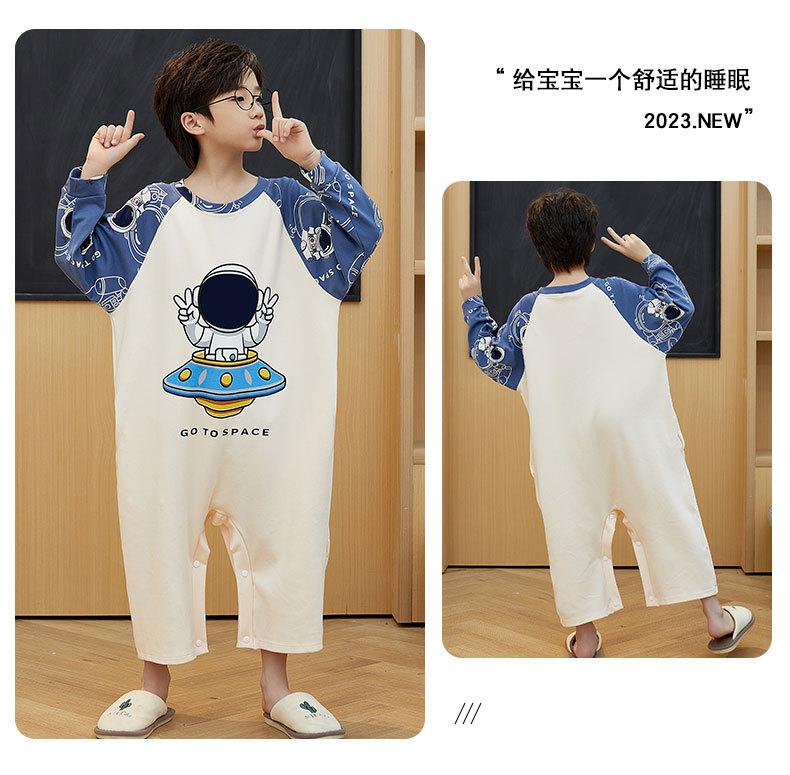 Pijamas de un solo cuerpo para niños, primavera y otoño, algodón, manga larga, otoño, fino, saco de dormir para bebé, ropa de casa