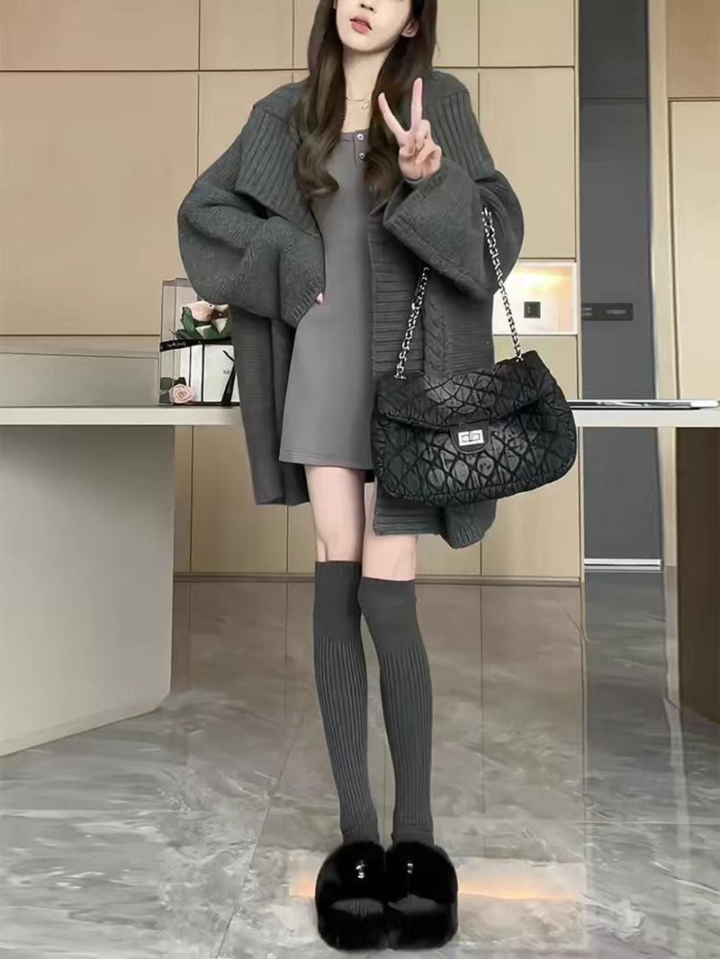 Abrigo suéter holgado de largo medio estilo francés para mujer, nuevo cárdigan de punto suelto para otoño e invierno 2025 para ropa exterior