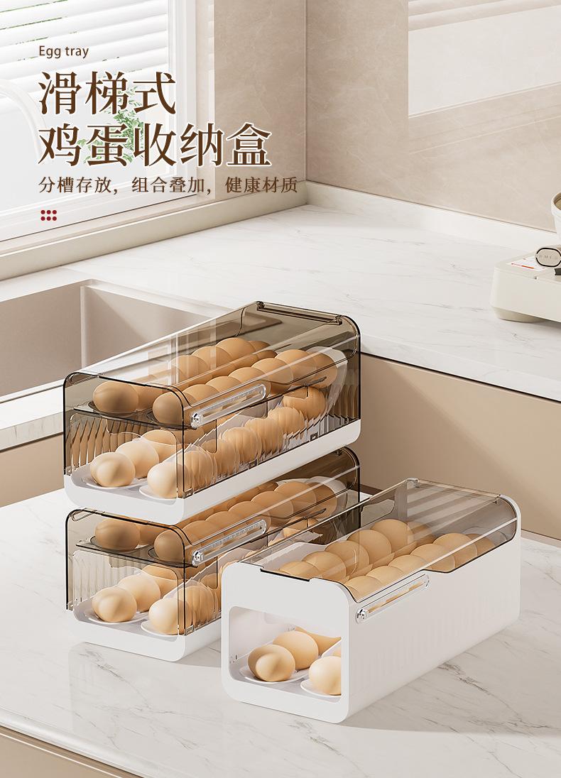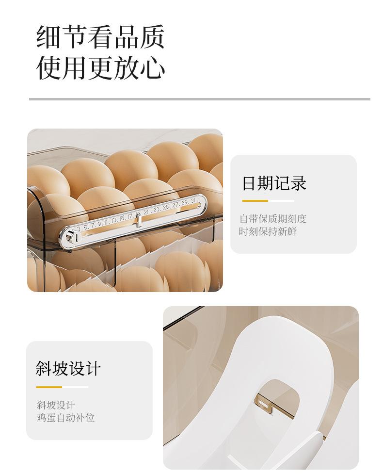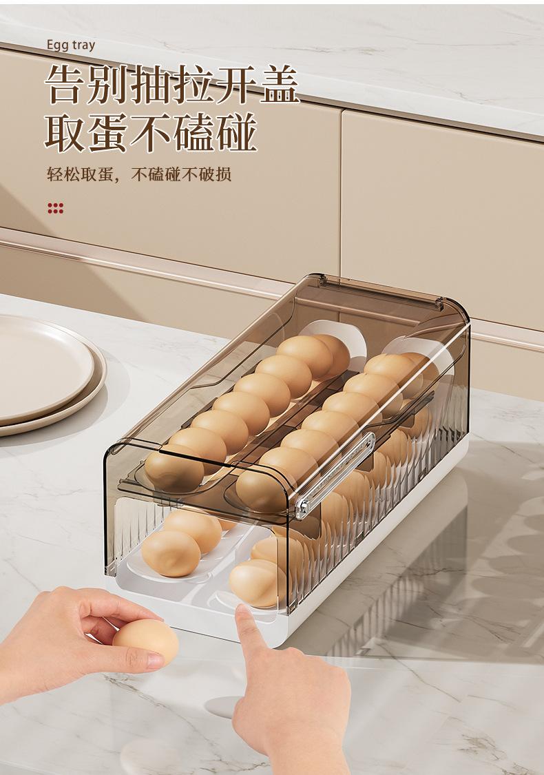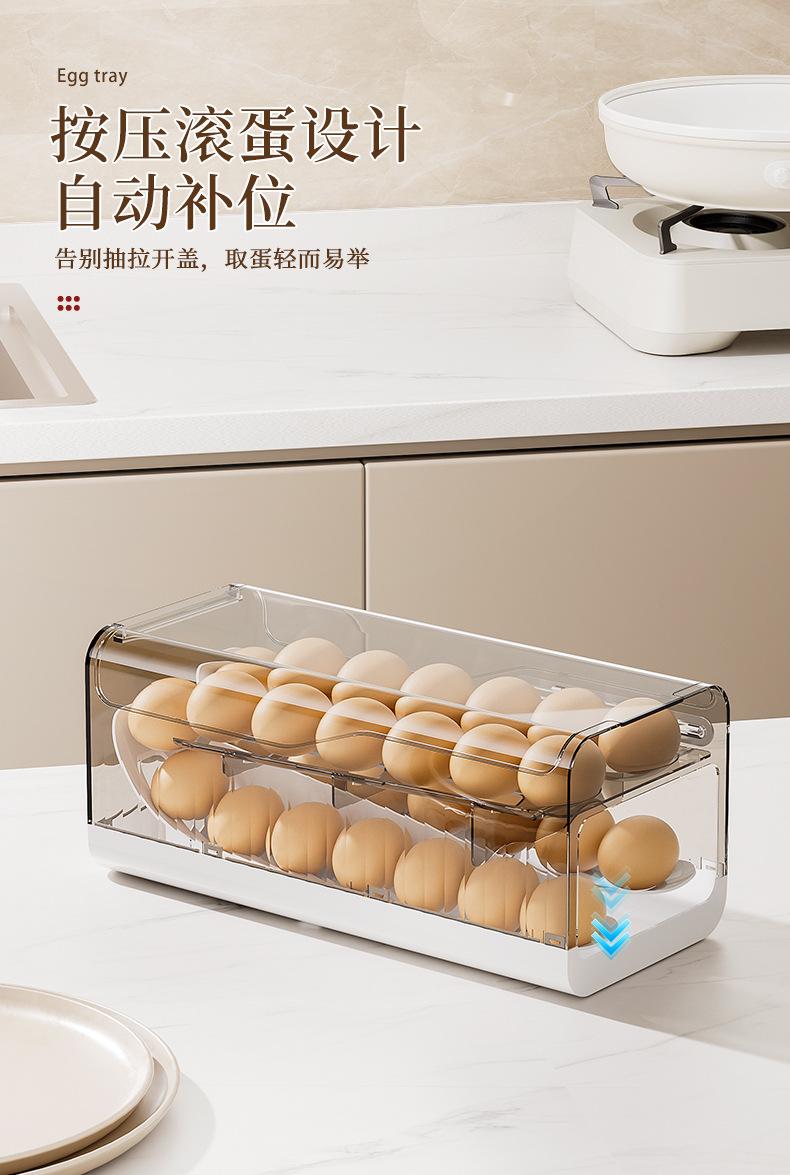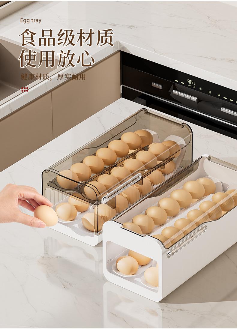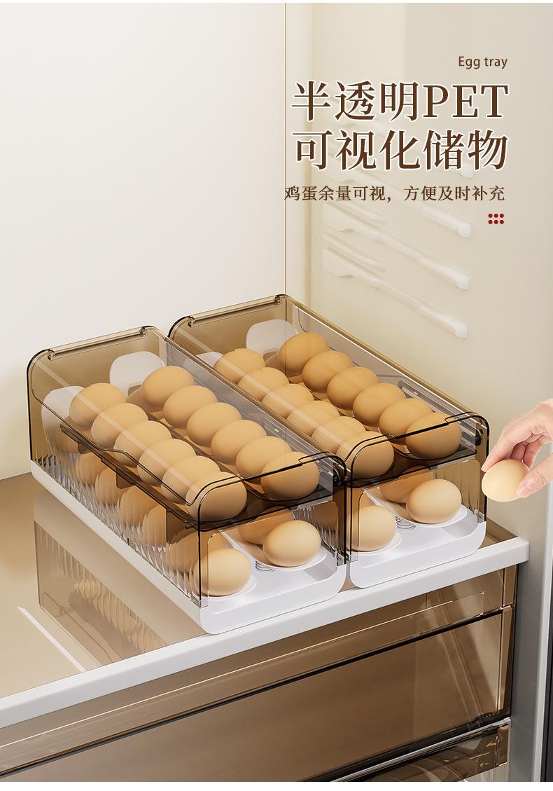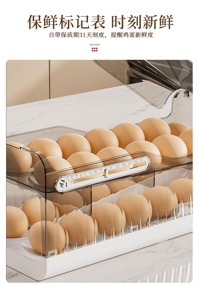 Almacenamiento de Cartón de Huevos para Refrigerador, Congelador de Grado Alimenticio, Rejilla Rodante para Huevos de Cocina, Caja de Almacenamiento Transparente con Tapa para Conservación Fresca