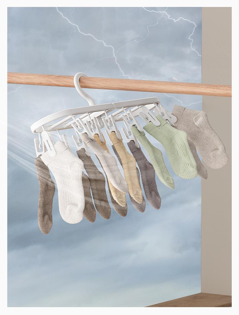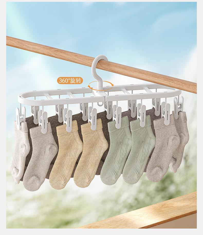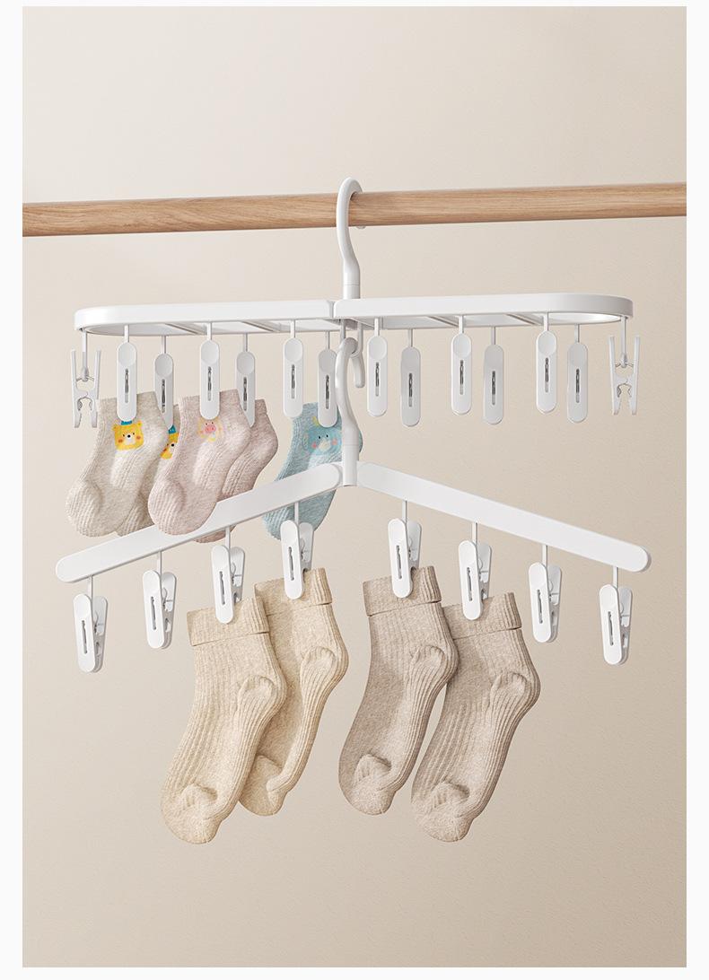 Tendedero plegable para calcetines domésticos, artefacto para secar calcetines, resistente al viento, con clip, percha multifuncional para ropa interior, tendedero para balcón