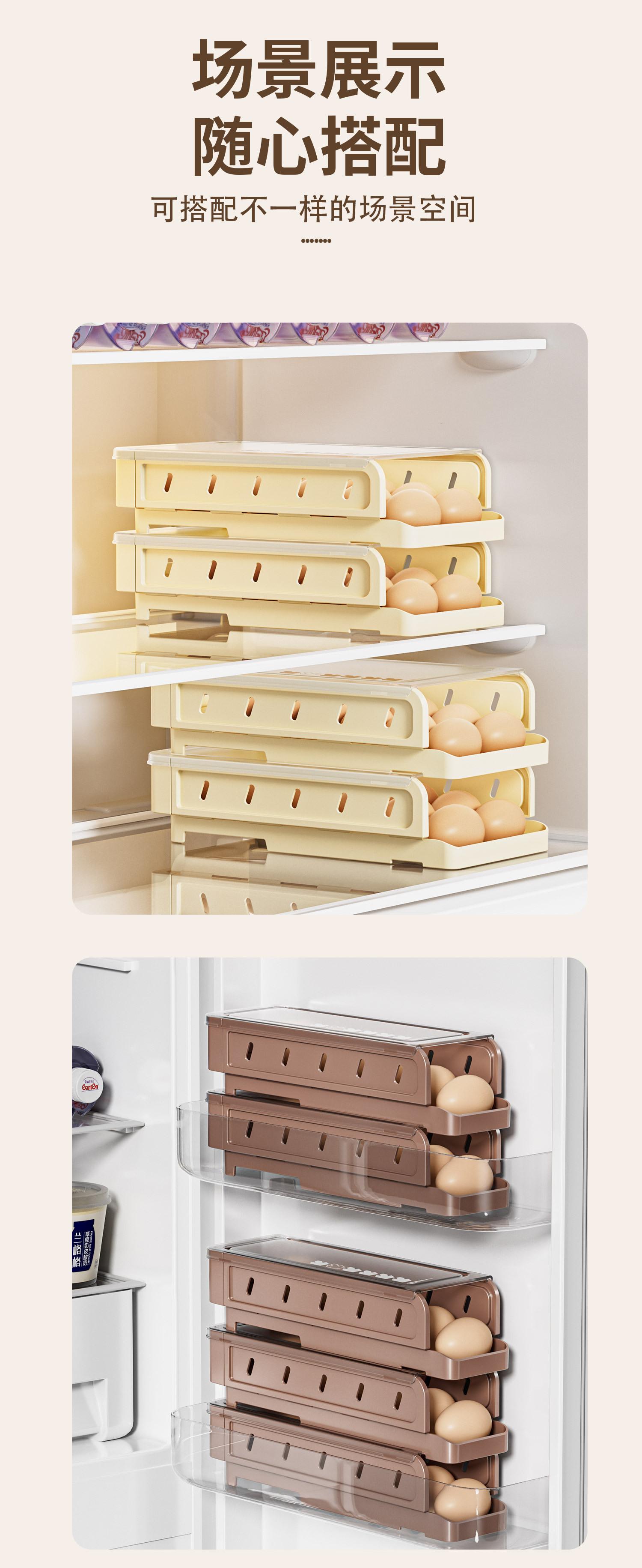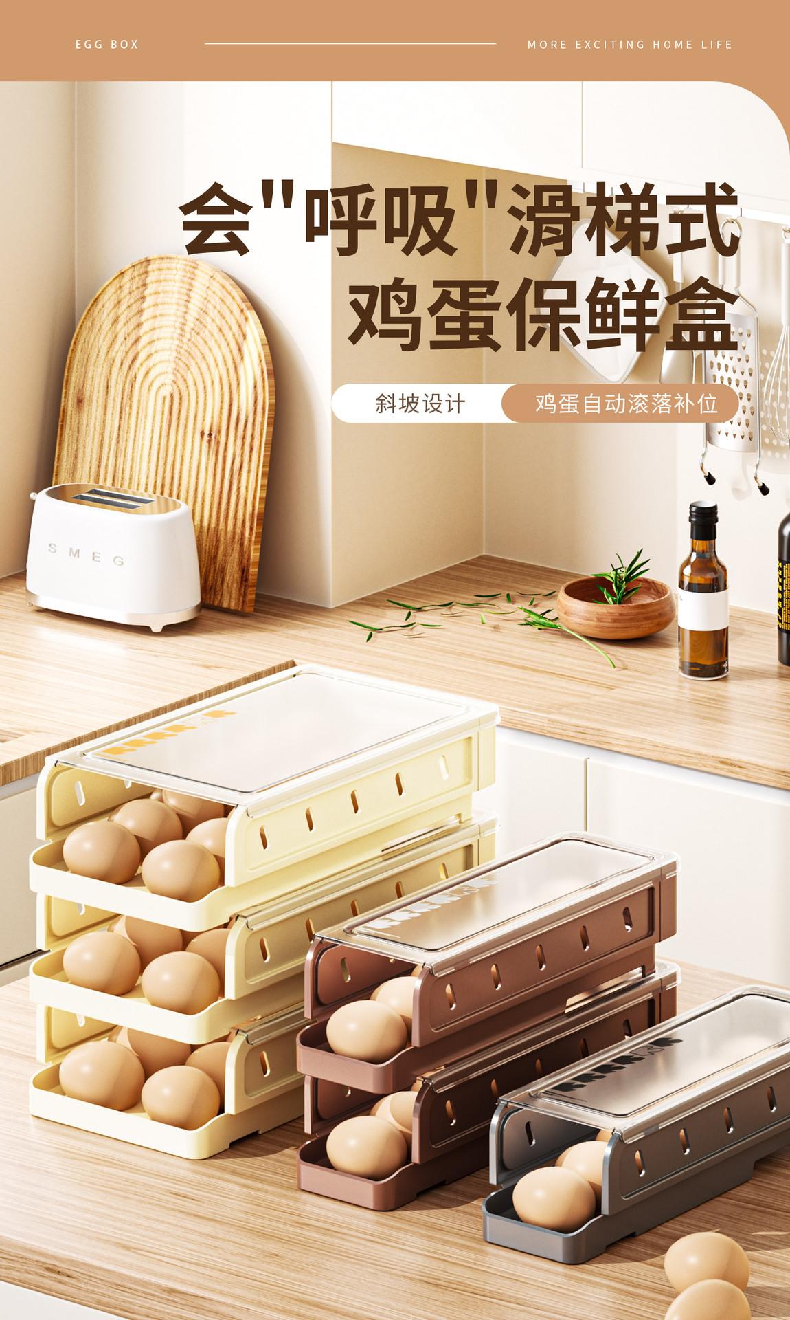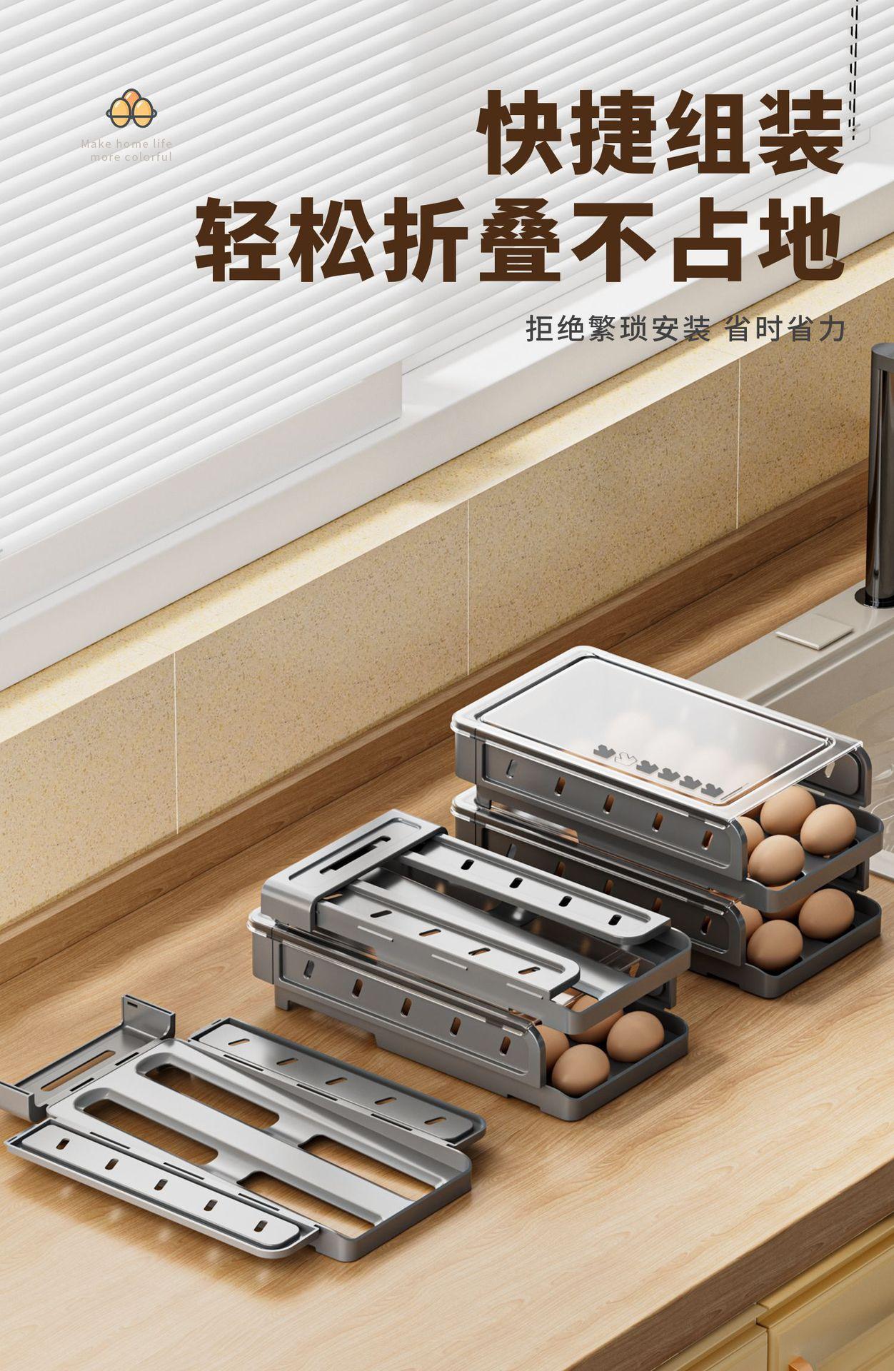 Caja de almacenamiento de huevos con ruedas para refrigerador, puerta lateral, rejilla para huevos, especial, de múltiples capas, deslizante, automática, abatible, para huevos frescos