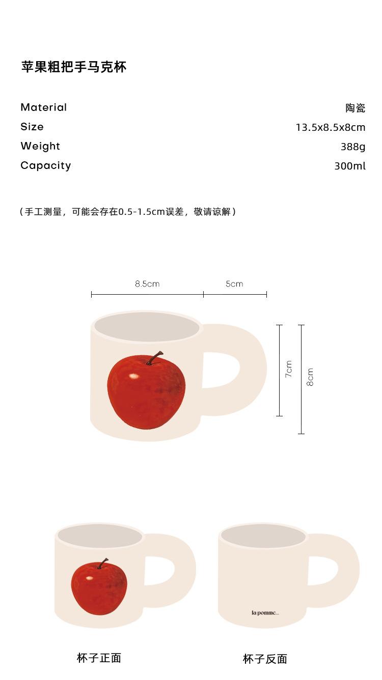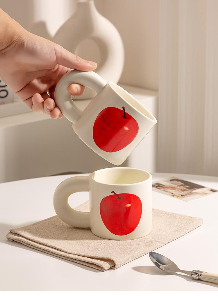 Taza de cerámica con diseño de manzana, taza de café, taza para el té de la tarde, taza para la oficina o el dormitorio, taza bonita y de alto valor de color.