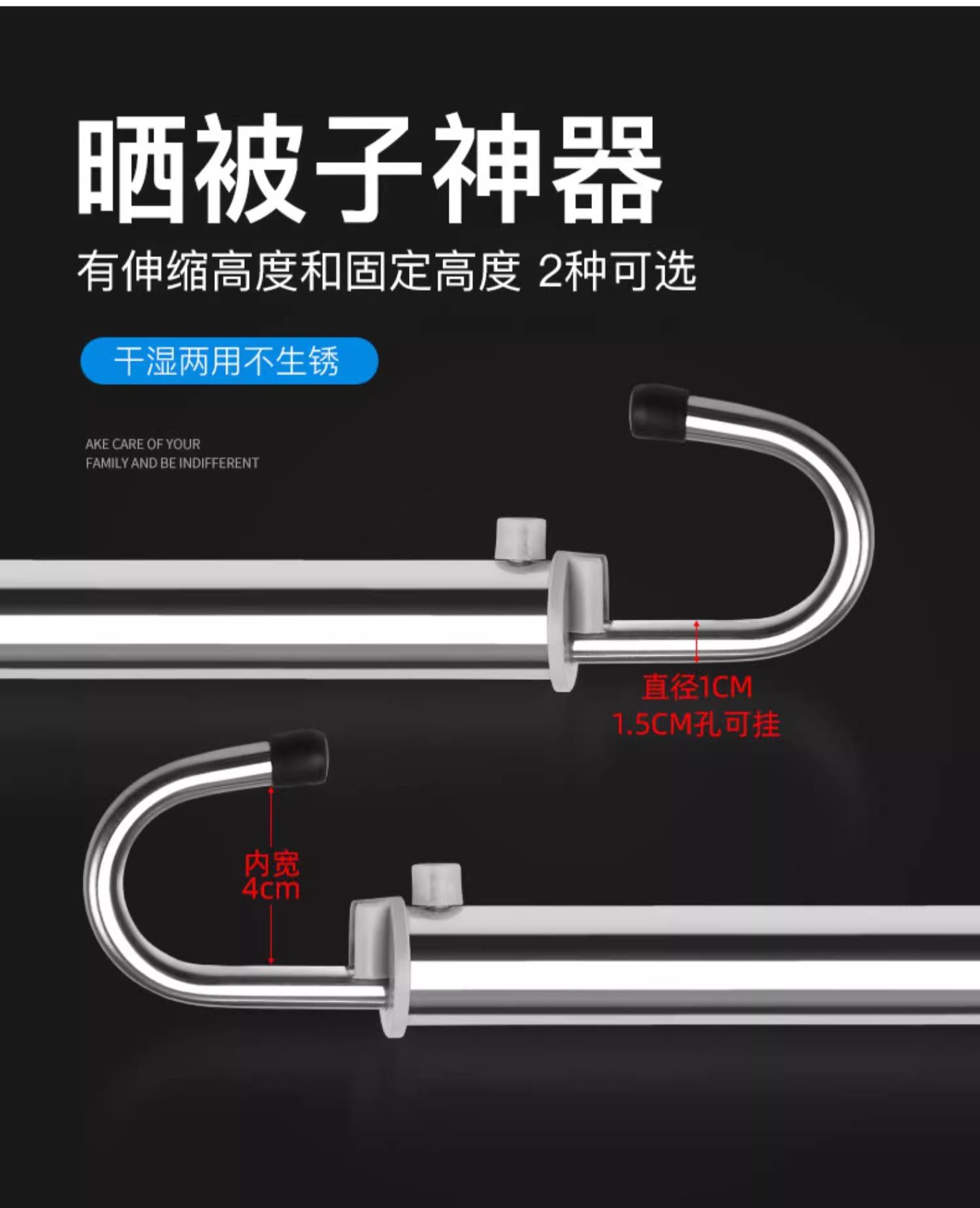 Artefacto de Acero Inoxidable para Secar Edredones, Tendedero Ajustable, Balcón Doméstico Sin Perforaciones, Barra para Secar Ropa Colgante