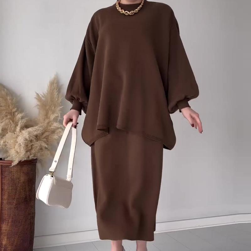 Otoño 2023 Nuevo traje de falda informal holgado de color sólido transfronterizo de comercio exterior de Europa y América de Amazon