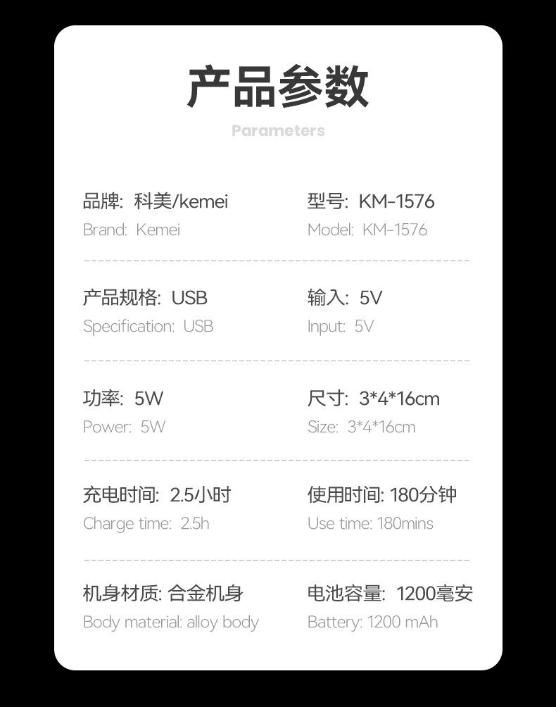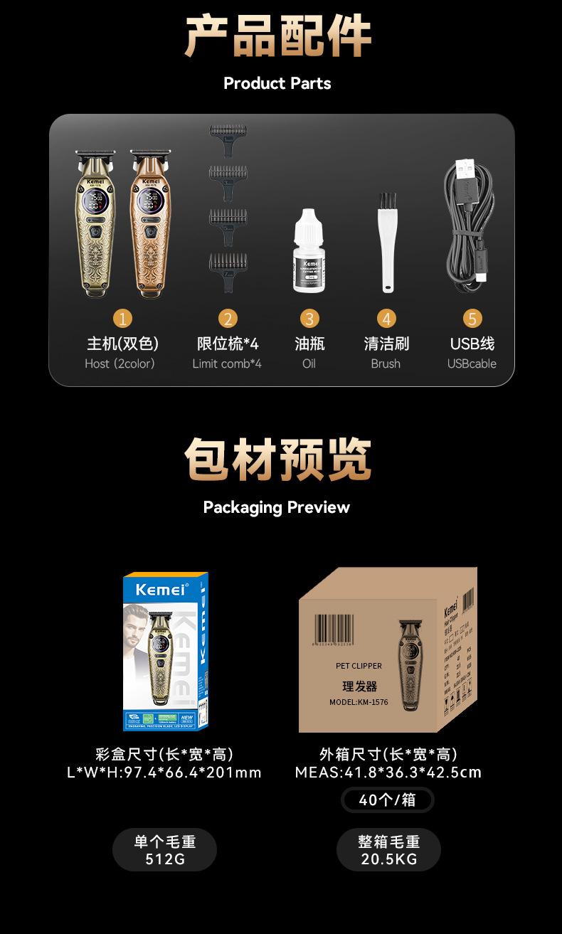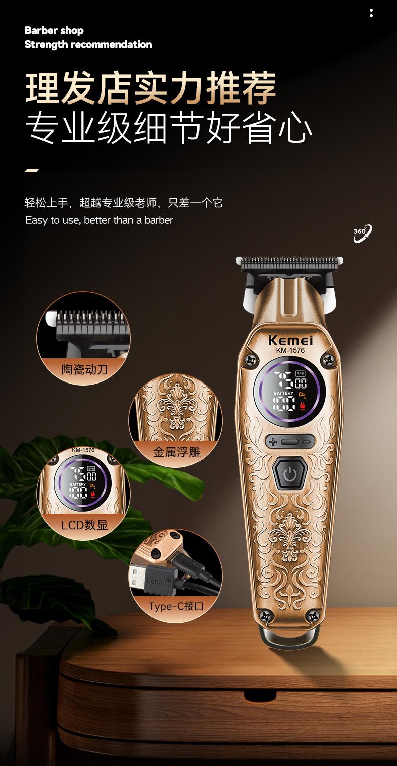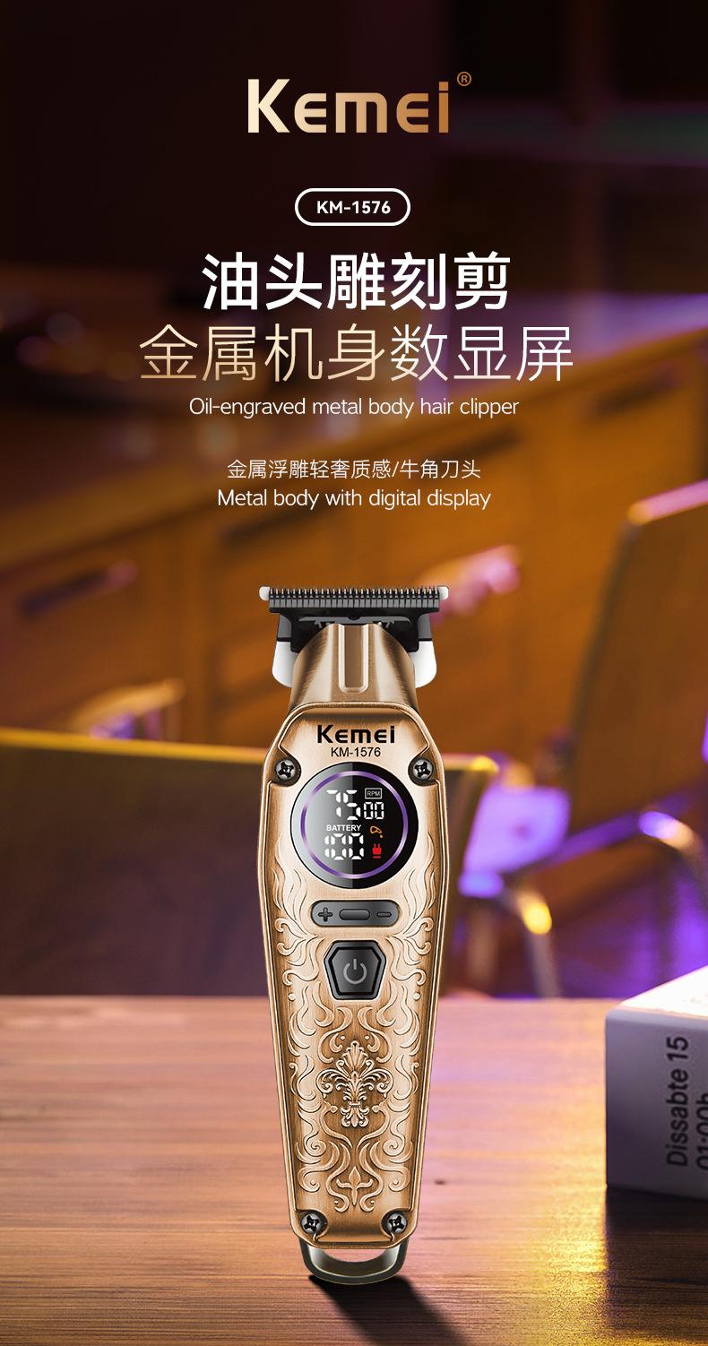 Kemei Cortadora de Cabello Profesional Eléctrica con Pantalla Digital Inteligente USB Cortadora de Metal para Cabeza al Aceite Cortadora para Tallar