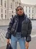 Chaqueta de algodón de imitación de cuero, oferta especial, invierno 2024, nueva chaqueta de algodón grueso de corte entallado, estilo europeo y americano, con cuello vertical y botonadura sencilla.