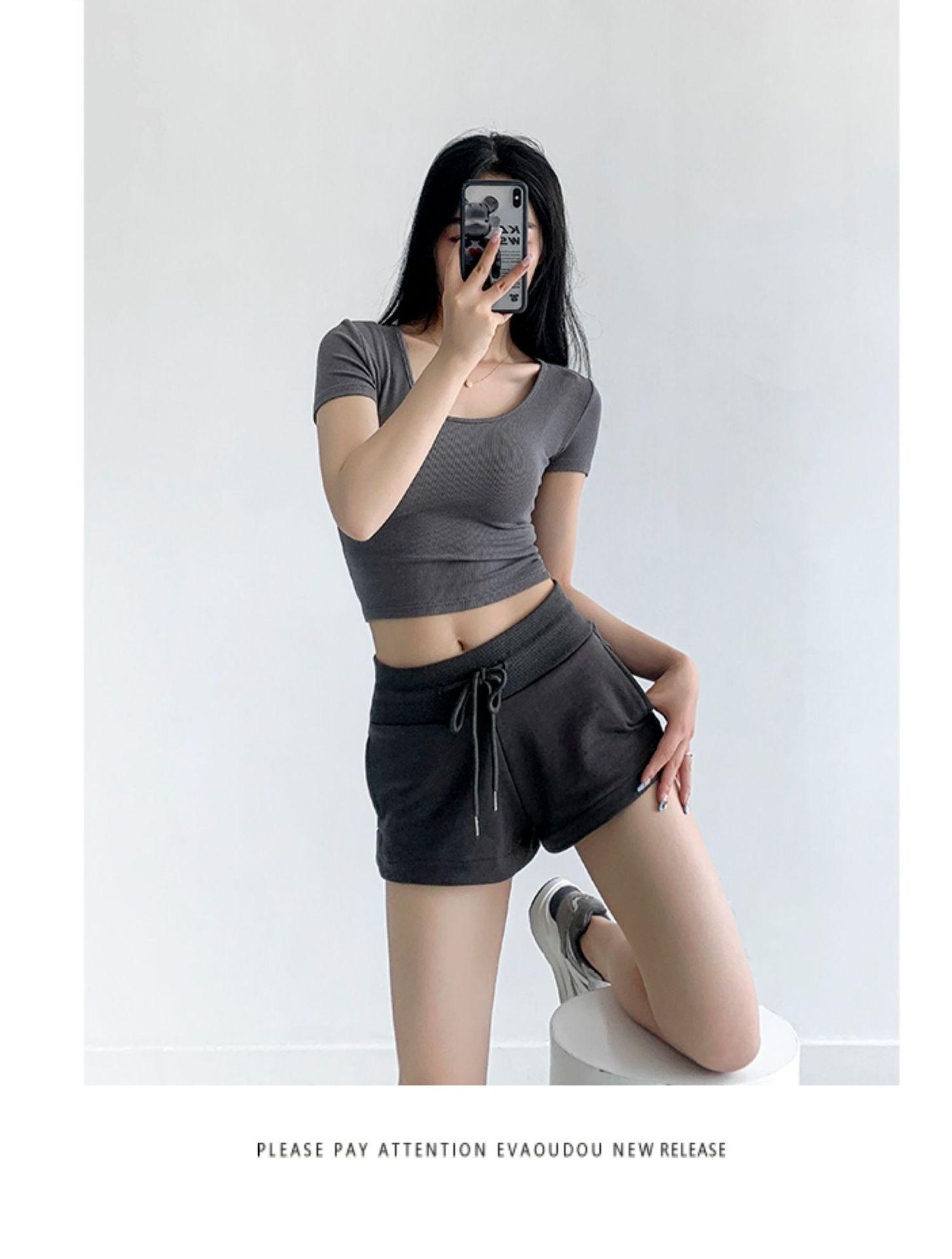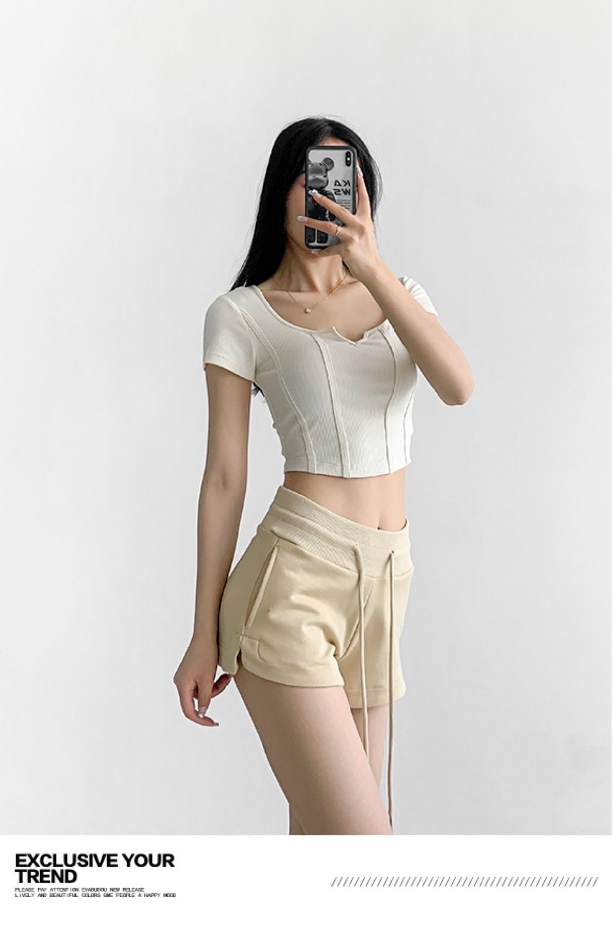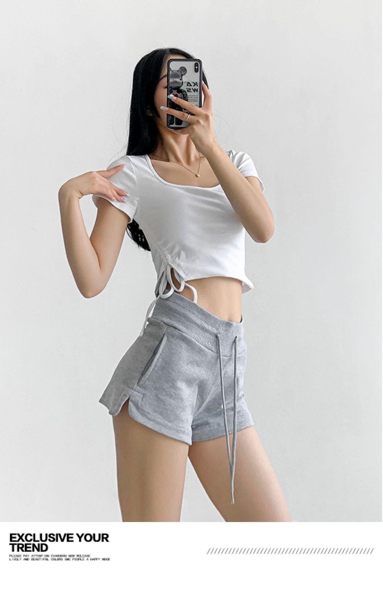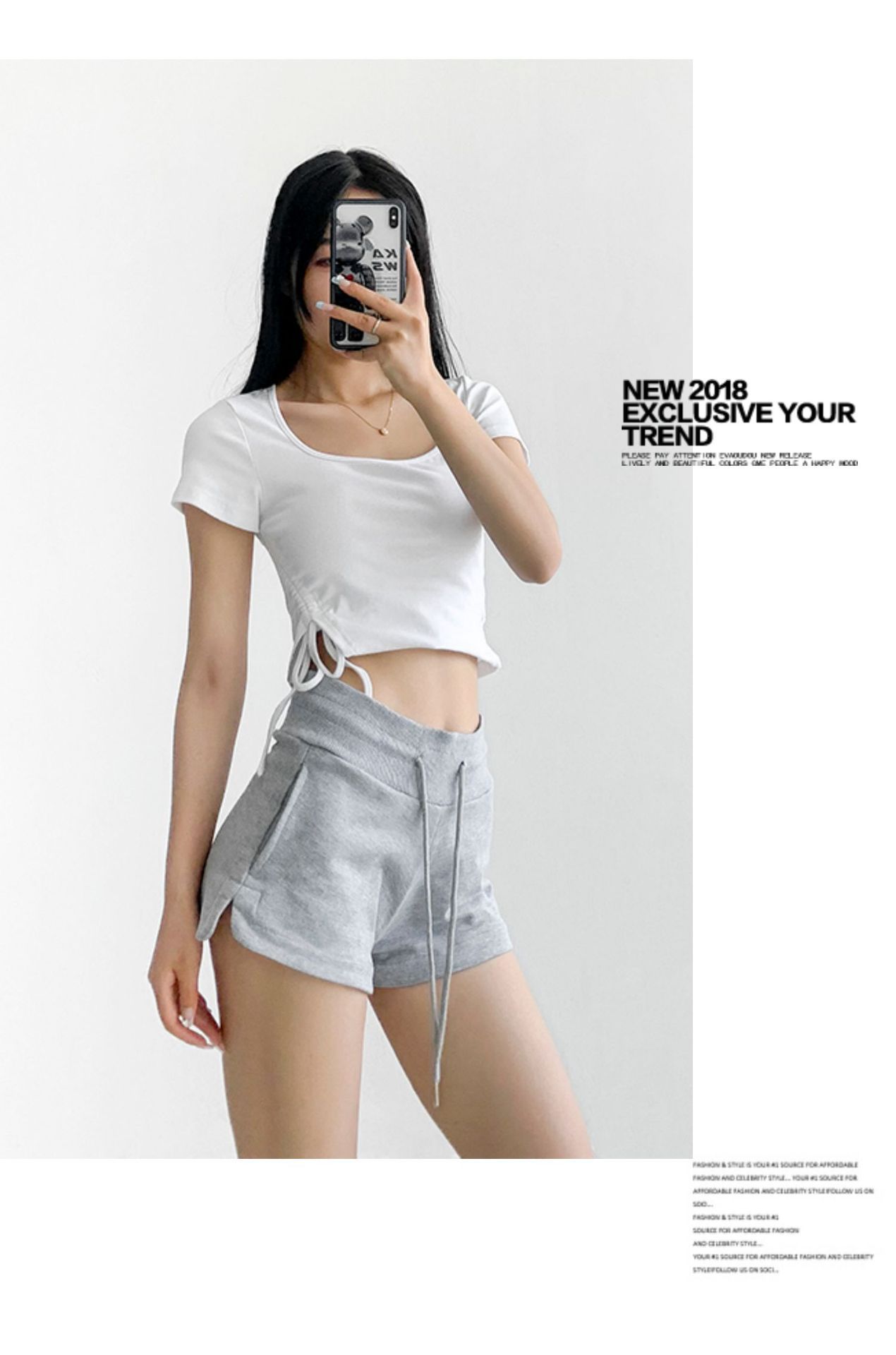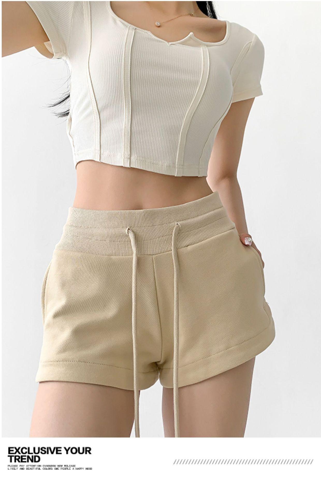 2024 Estilo Americano Callejero Hottie Shorts Deportivos con Cordón Delgados de Verano Cintura Alta Casual Rectos Hot Pants Trendy