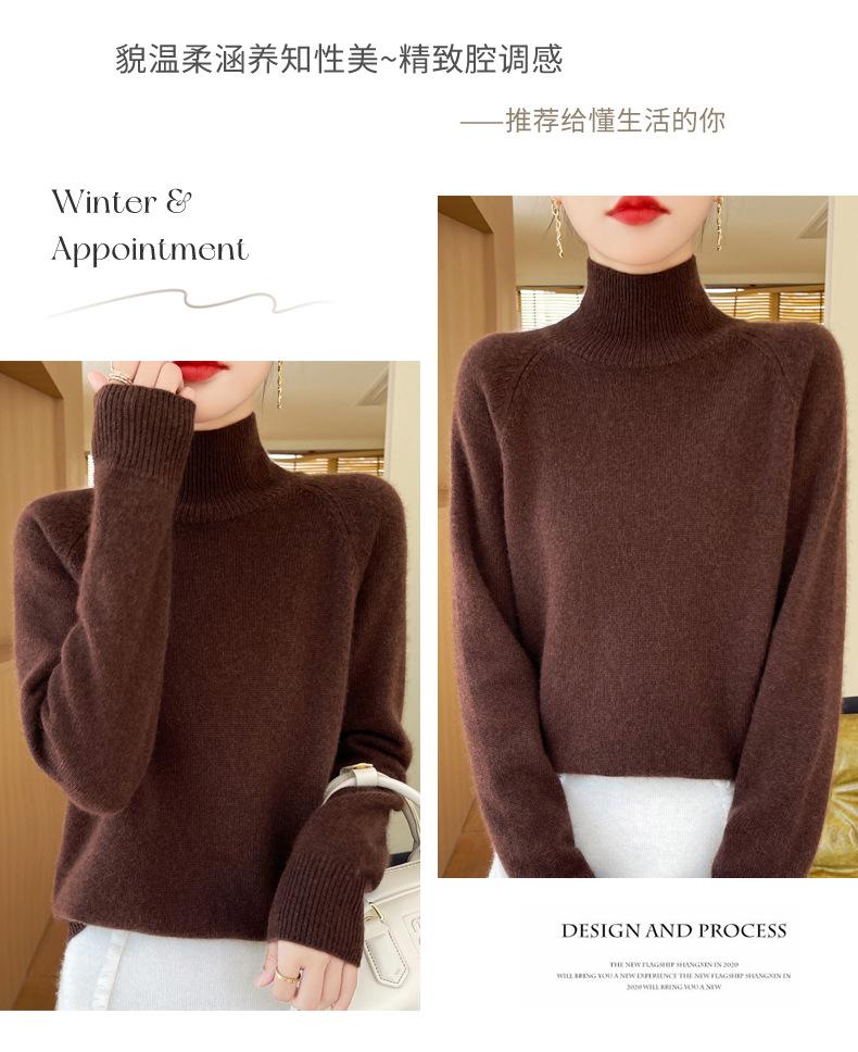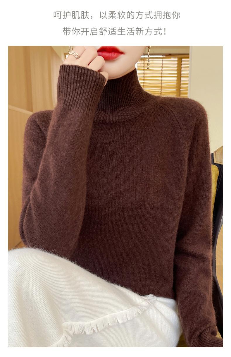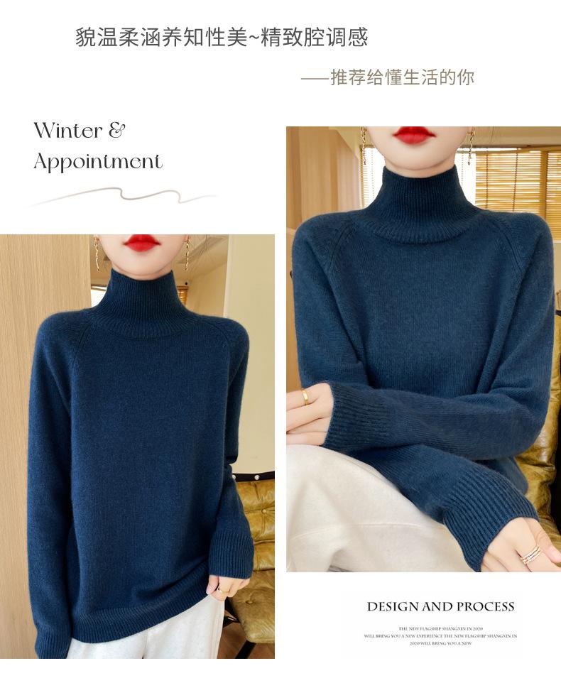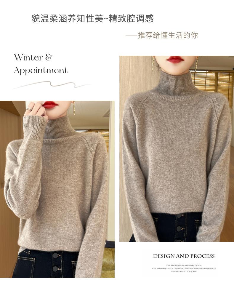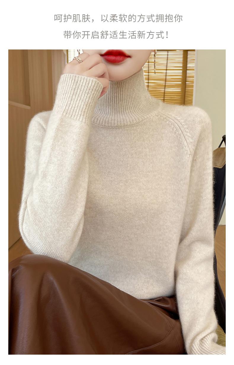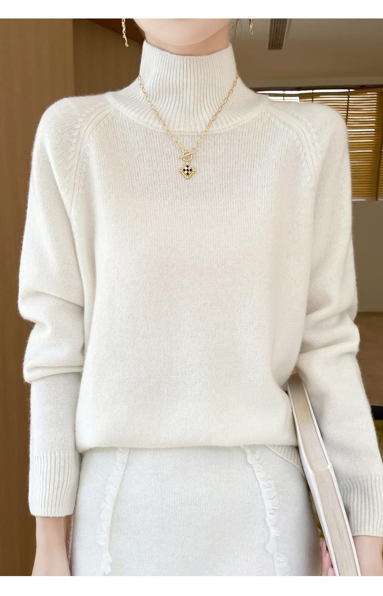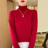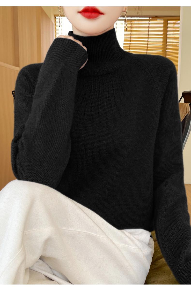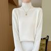 Otoño e Invierno Nuevo Suéter de Punto de Cuello Alto para Mujer Suéter Versátil de Estilo Occidental con Manga Larga Hombro con Cuello Vertical Camiseta Interior Base Top para Mujer