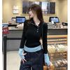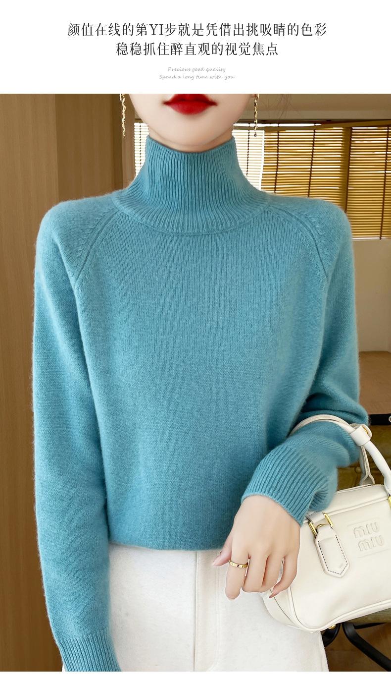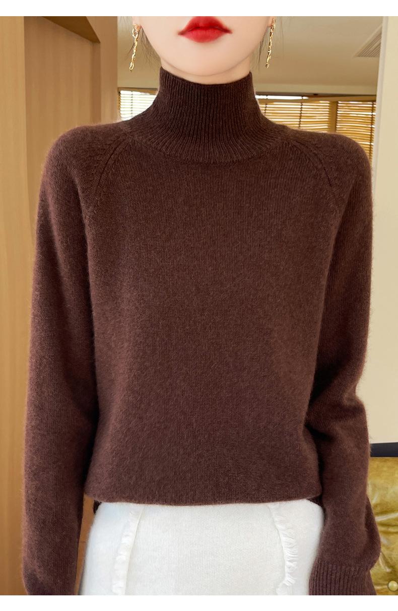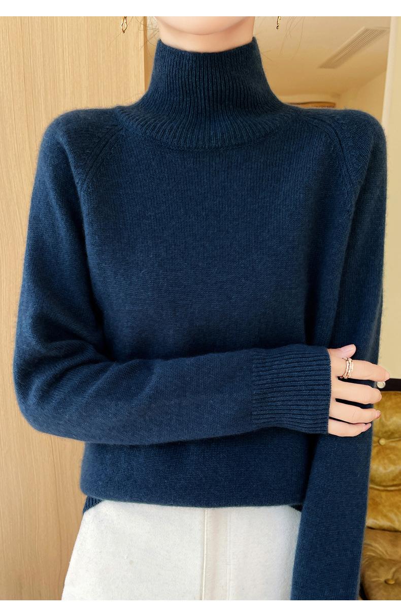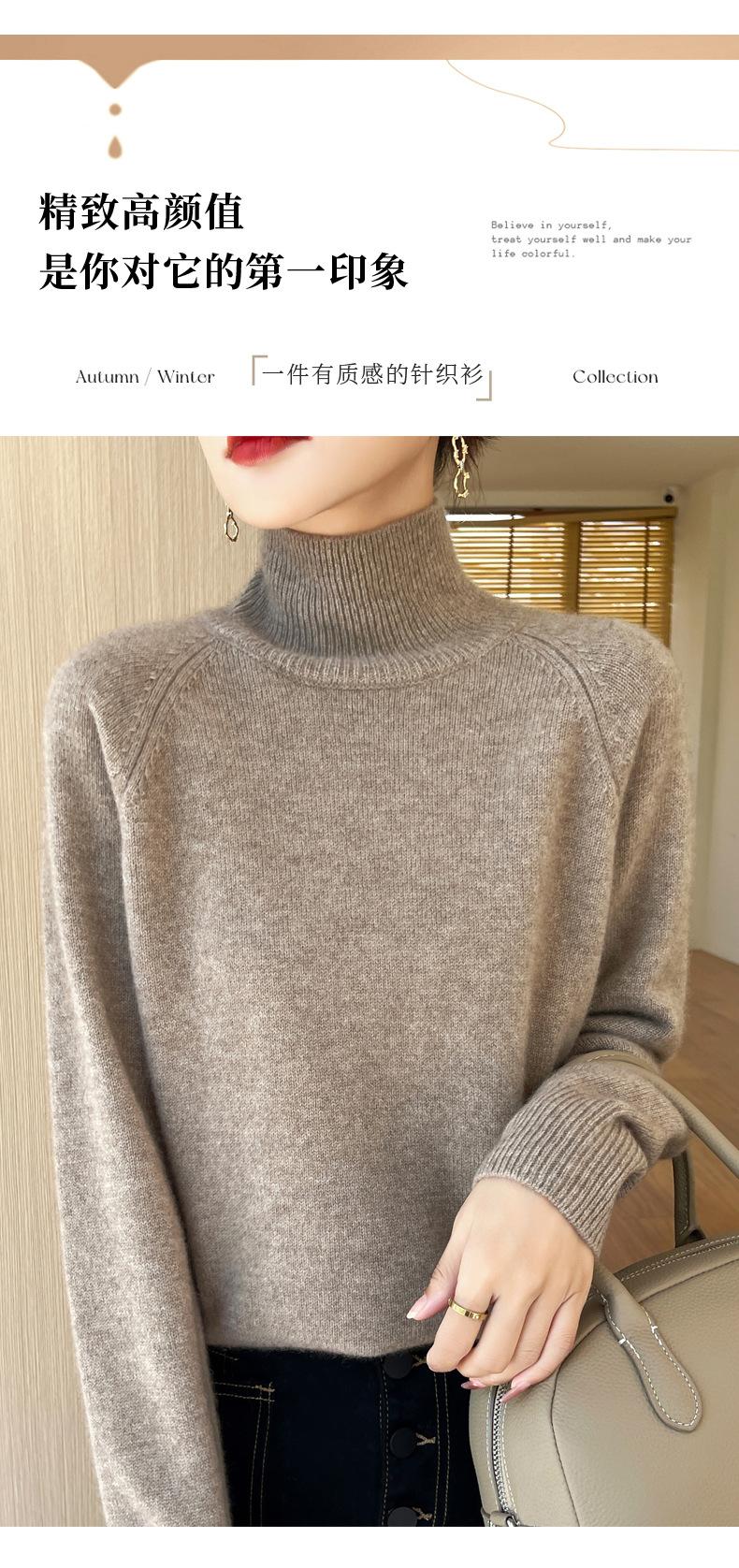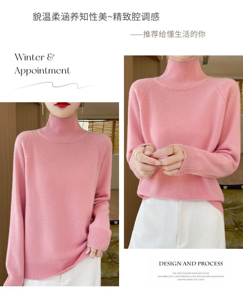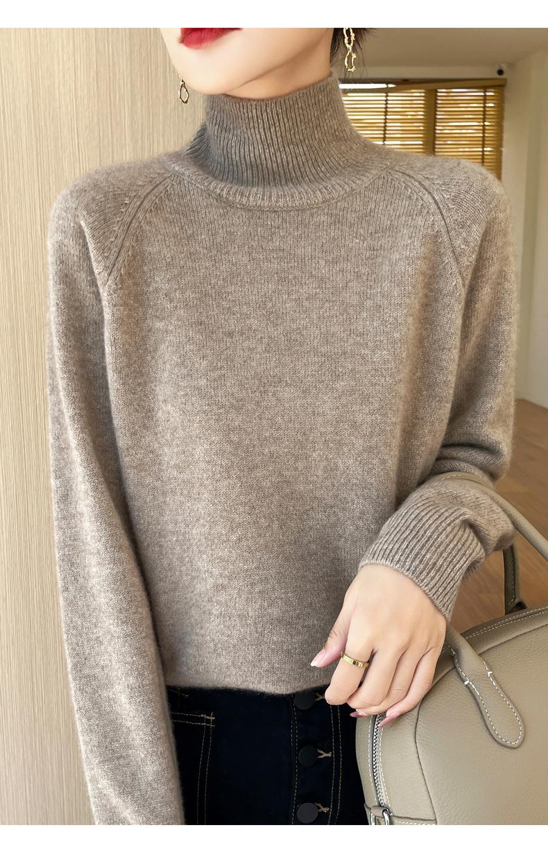 Otoño e Invierno Nuevo Suéter de Punto de Cuello Alto para Mujer Suéter Versátil de Estilo Occidental con Manga Larga Hombro con Cuello Vertical Camiseta Interior Base Top para Mujer