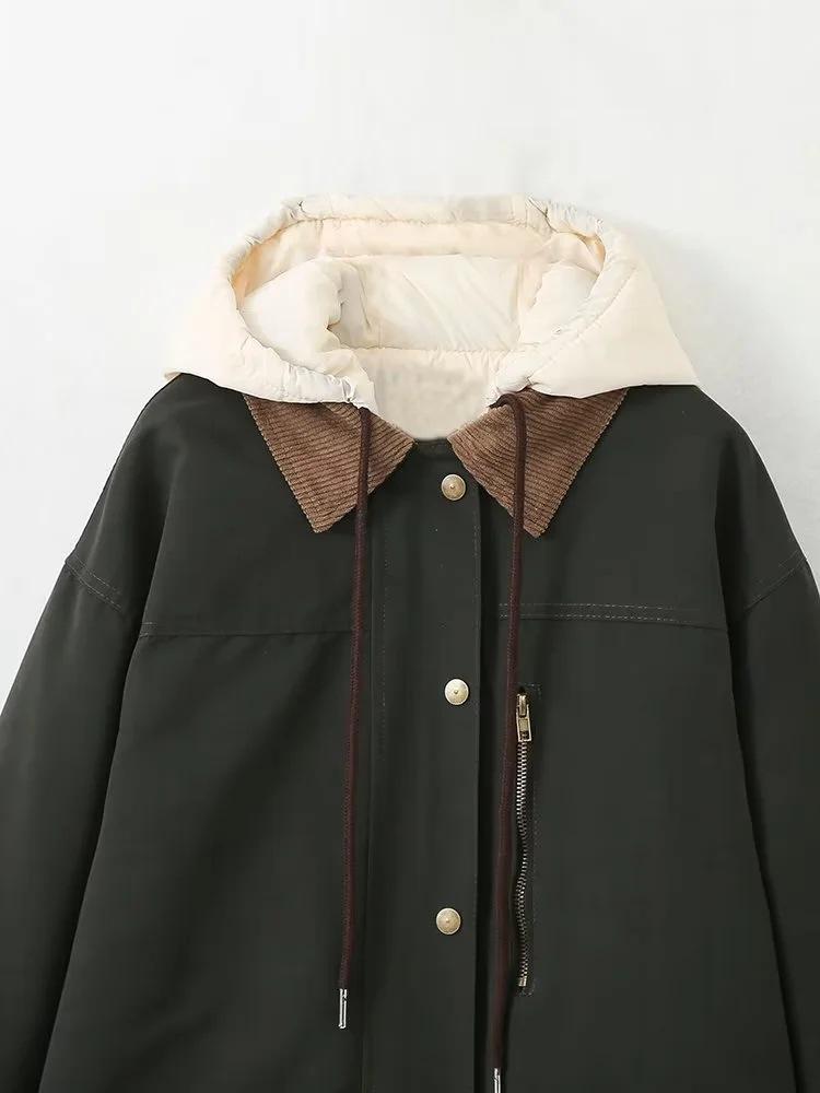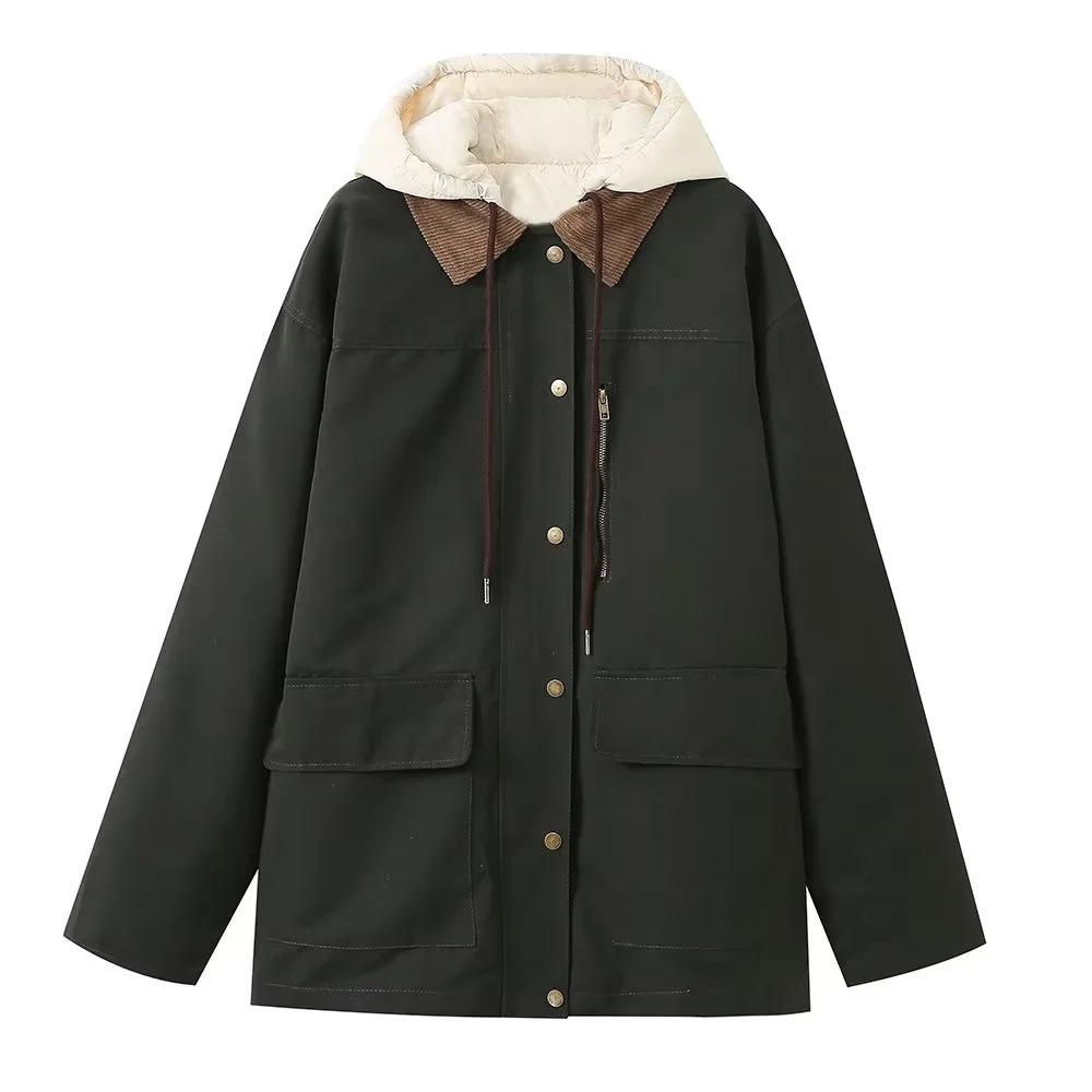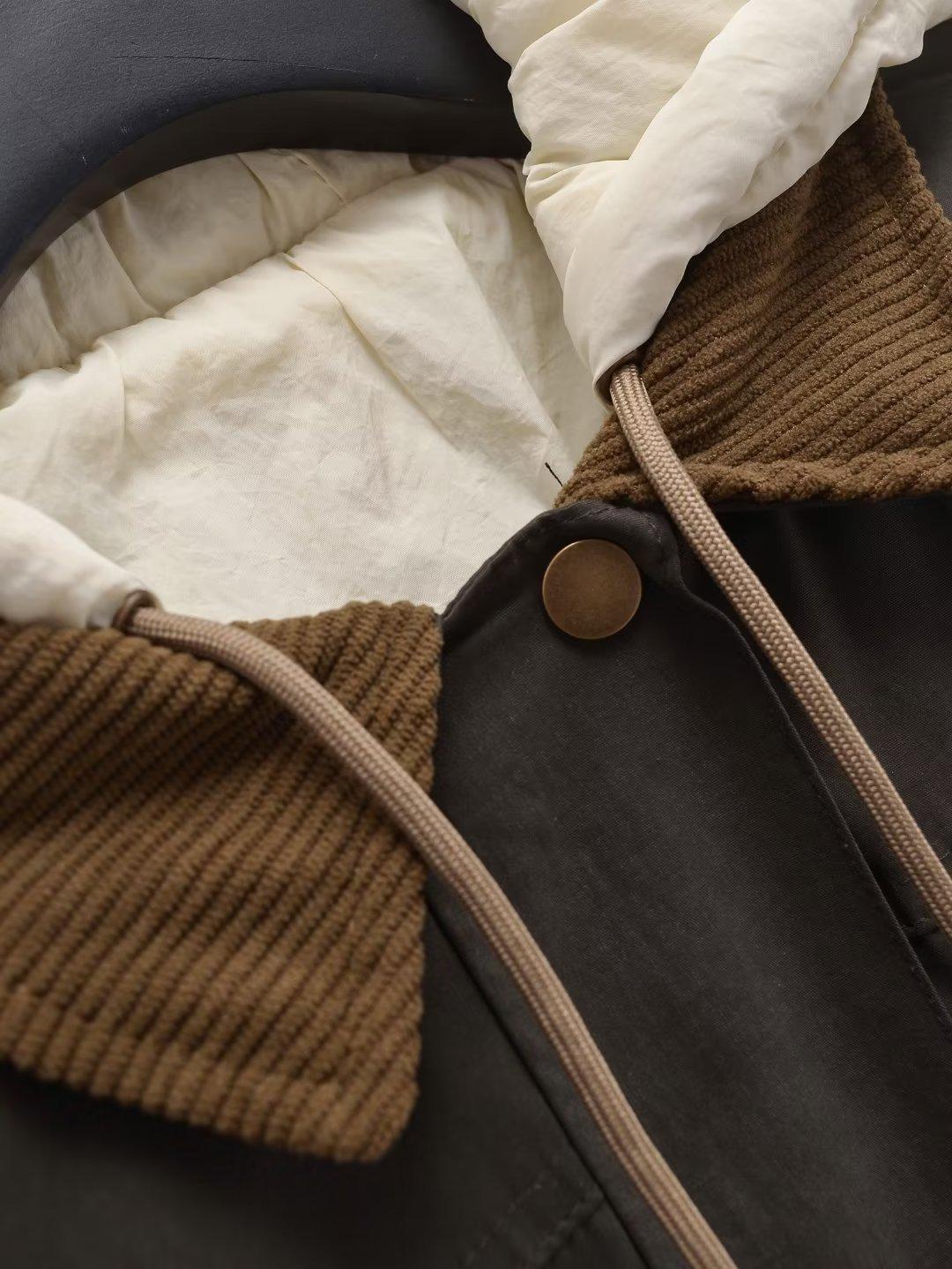 Ropa Otoño e Invierno Europea y Americana Chaqueta de Algodón de Pana Desmontable Dos en Uno