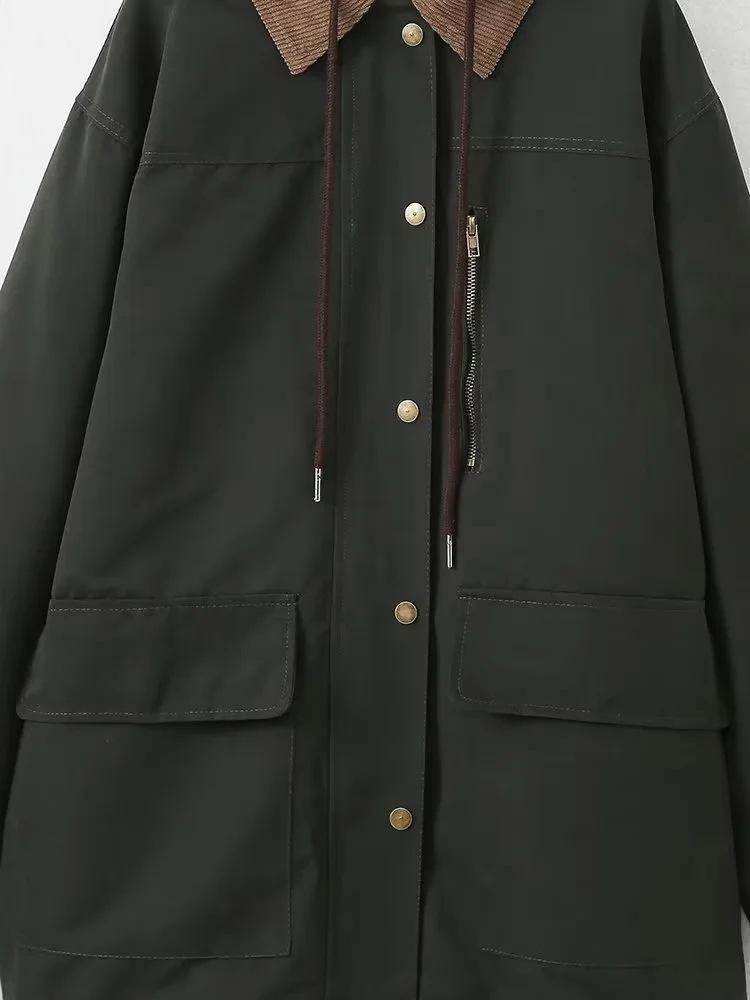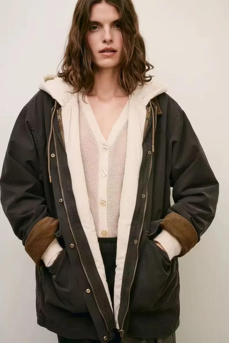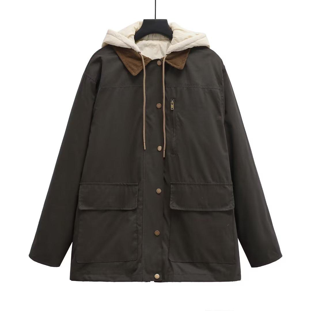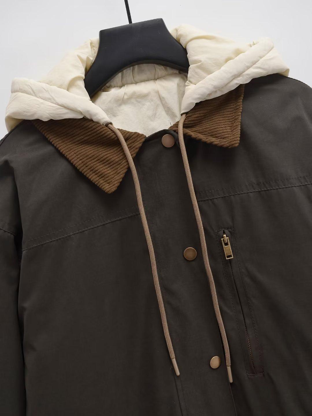 Ropa Otoño e Invierno Europea y Americana Chaqueta de Algodón de Pana Desmontable Dos en Uno