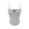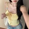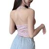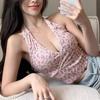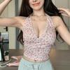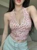 Top corto ajustado sexy de verano para mujer, estilo americano, con cuello floral, tirantes pequeños, estilo Pure Desire, con borde cruzado