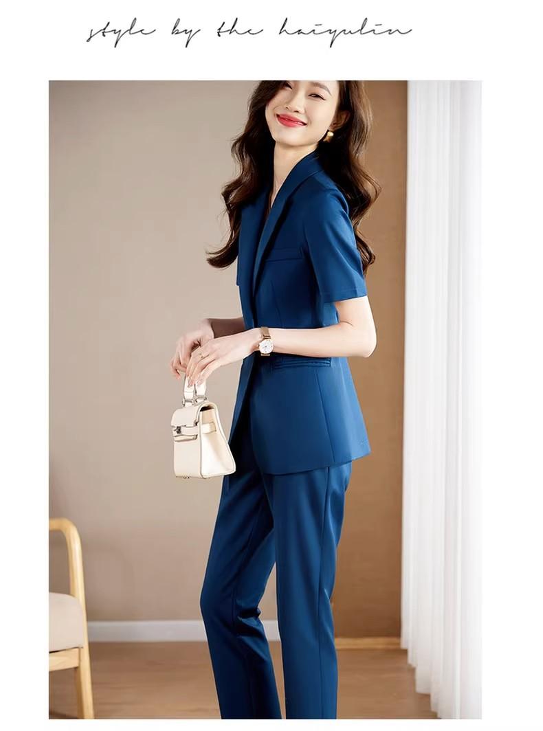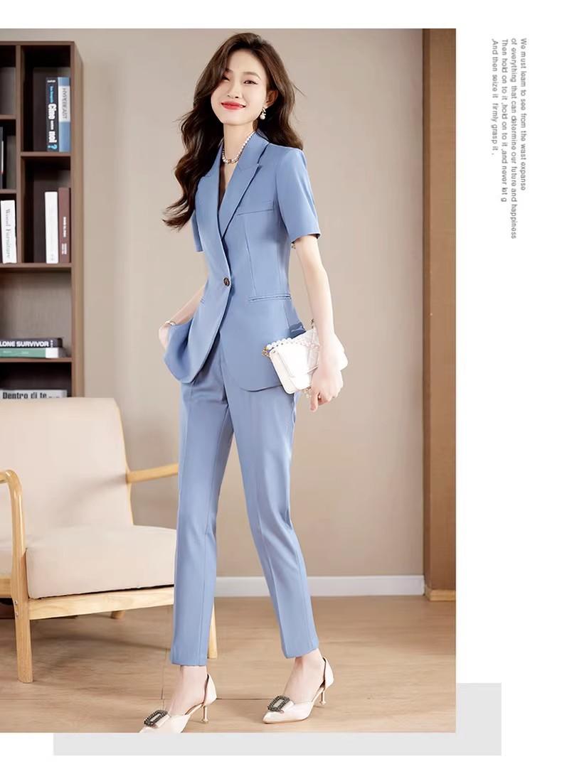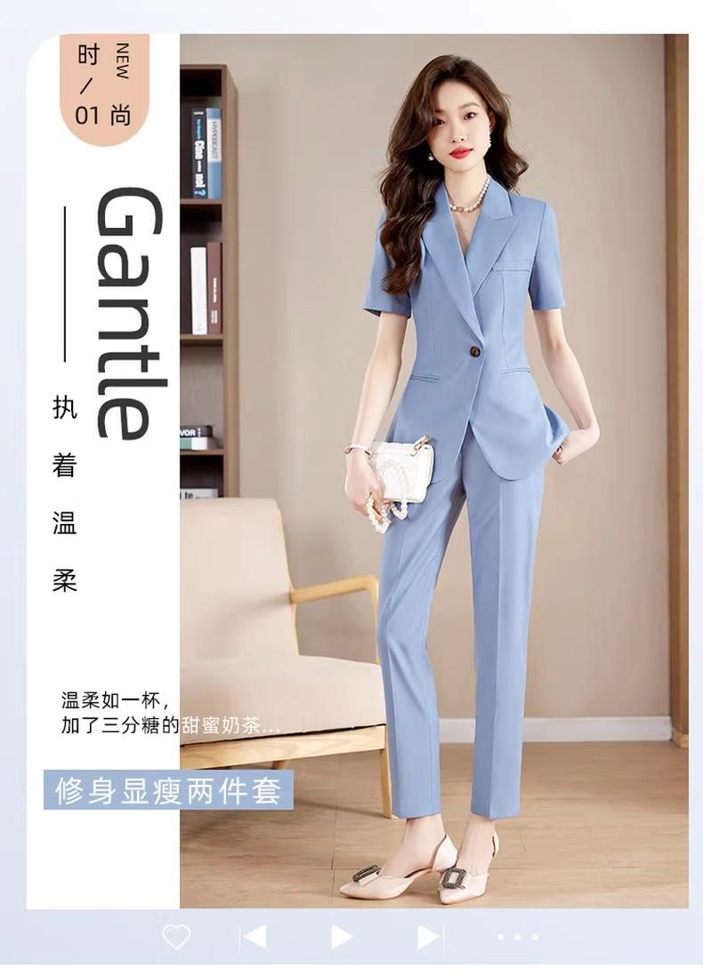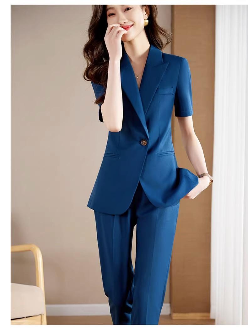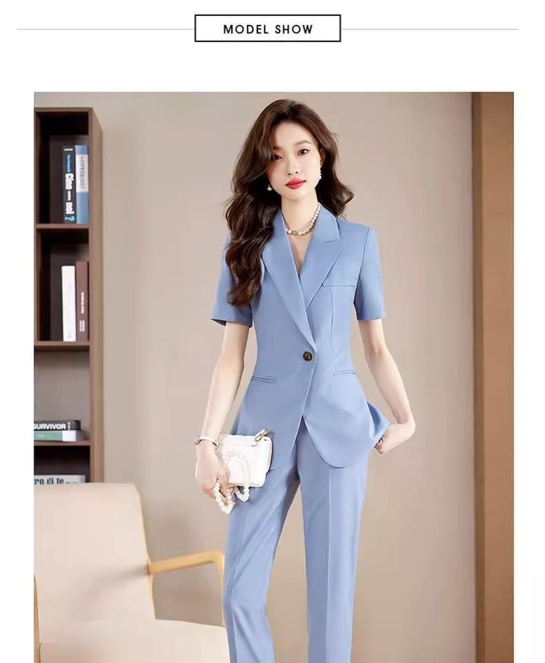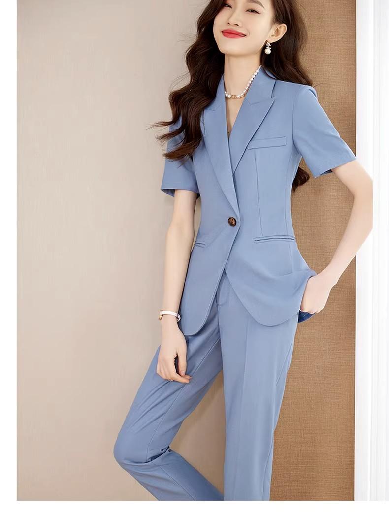 Traje de verano para mujer, nuevo, de alta gama, profesional, temperamento, estilo diosa, ropa de trabajo, traje fino de manga corta, conjunto de dos piezas