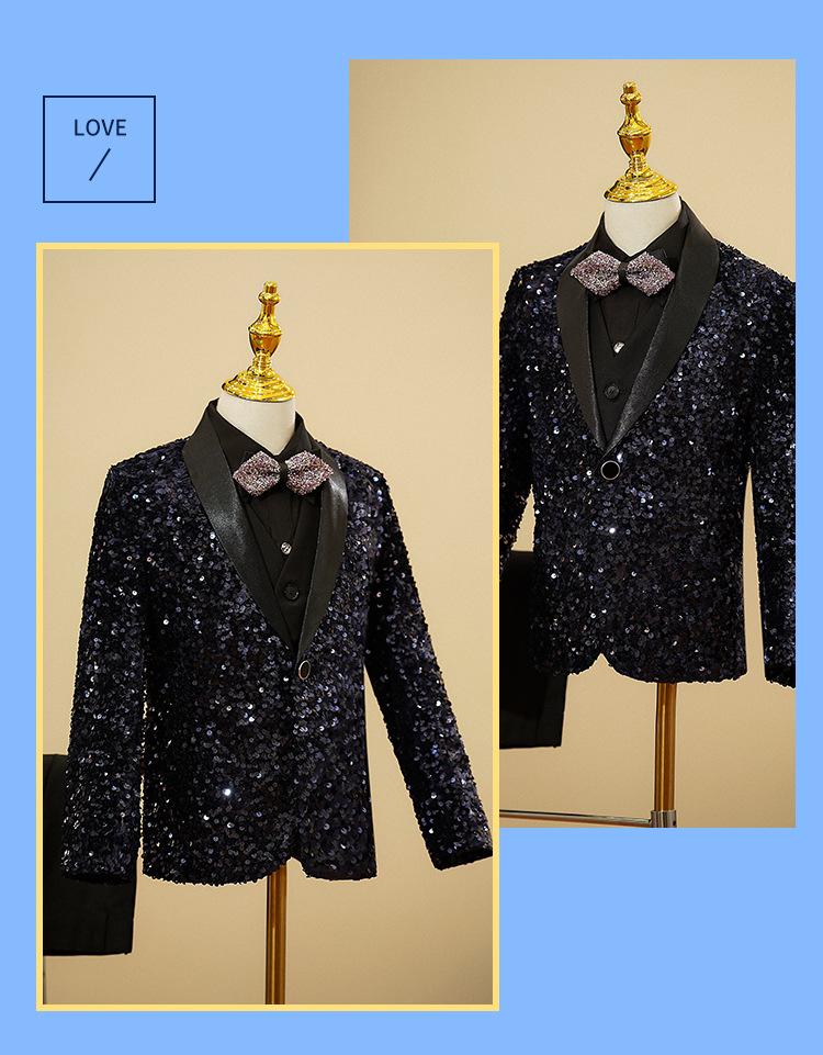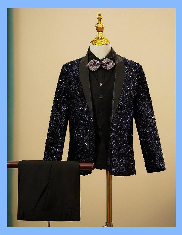 Four-piece suit + shirt + pants + bow tie (three-dimensional navy blue)