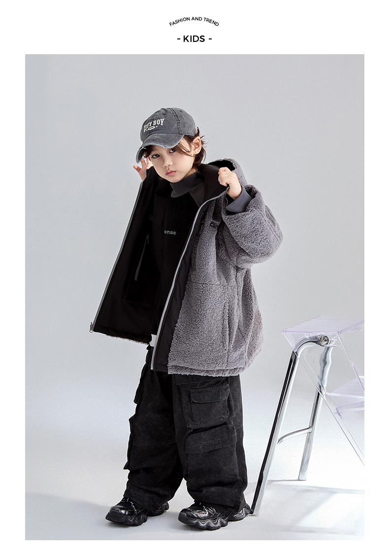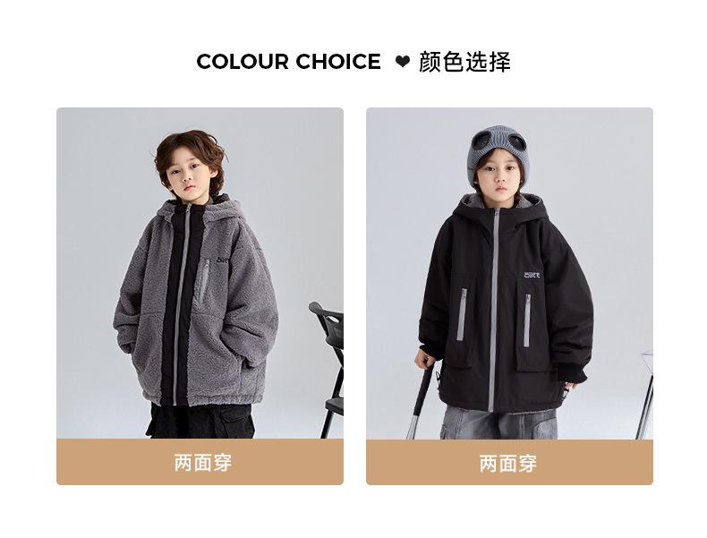 Ropa de Invierno para Padres e Hijos para Niños Mayores, Niños y Niñas, Chaquetas Engrosadas, Chaquetas Deportivas para Exterior, Ropa Reversible de Lana de Cordero