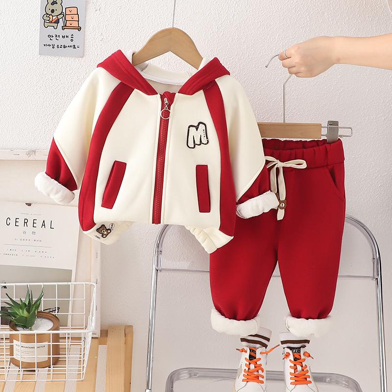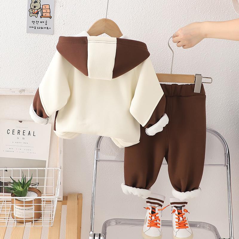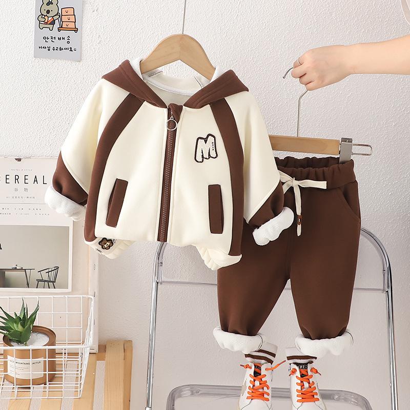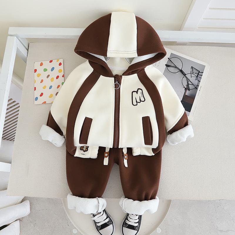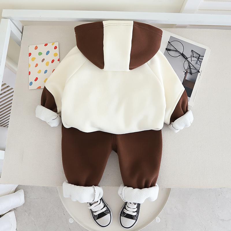 Ropa para niños para hombre invierno con forro polar coreana con capucha de dos piezas deportiva ropa para niños traje de invierno para bebé niño 1-3 años 5