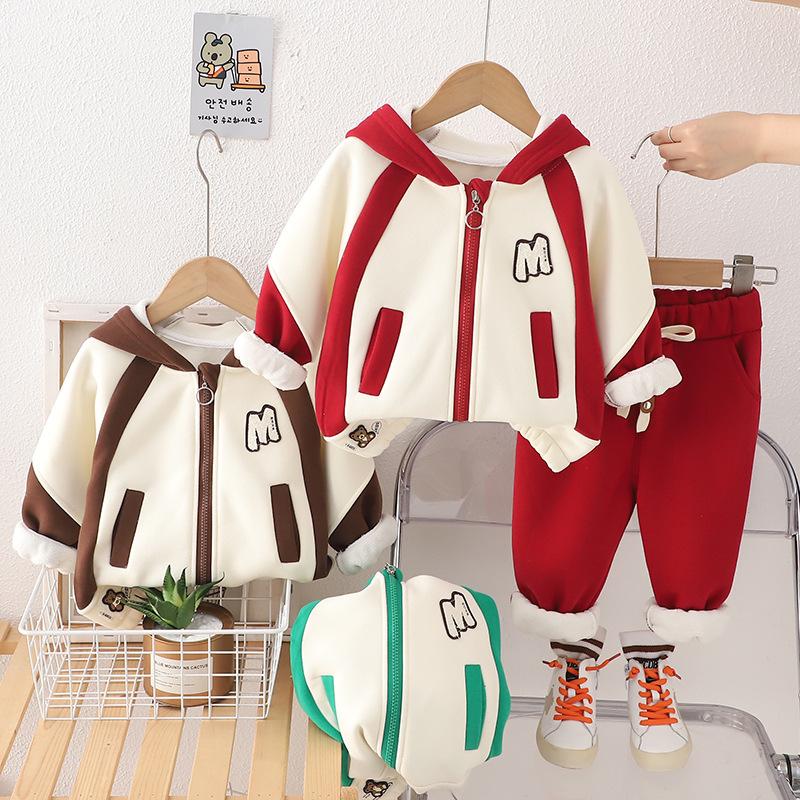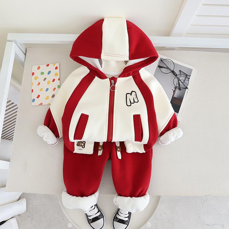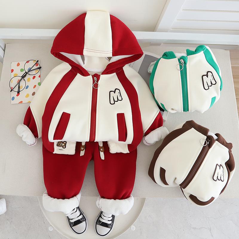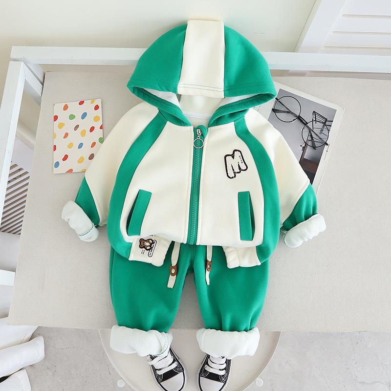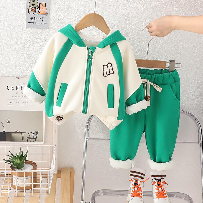 Ropa para niños para hombre invierno con forro polar coreana con capucha de dos piezas deportiva ropa para niños traje de invierno para bebé niño 1-3 años 5